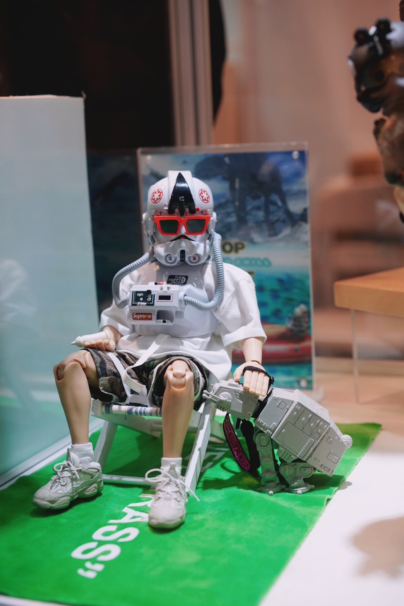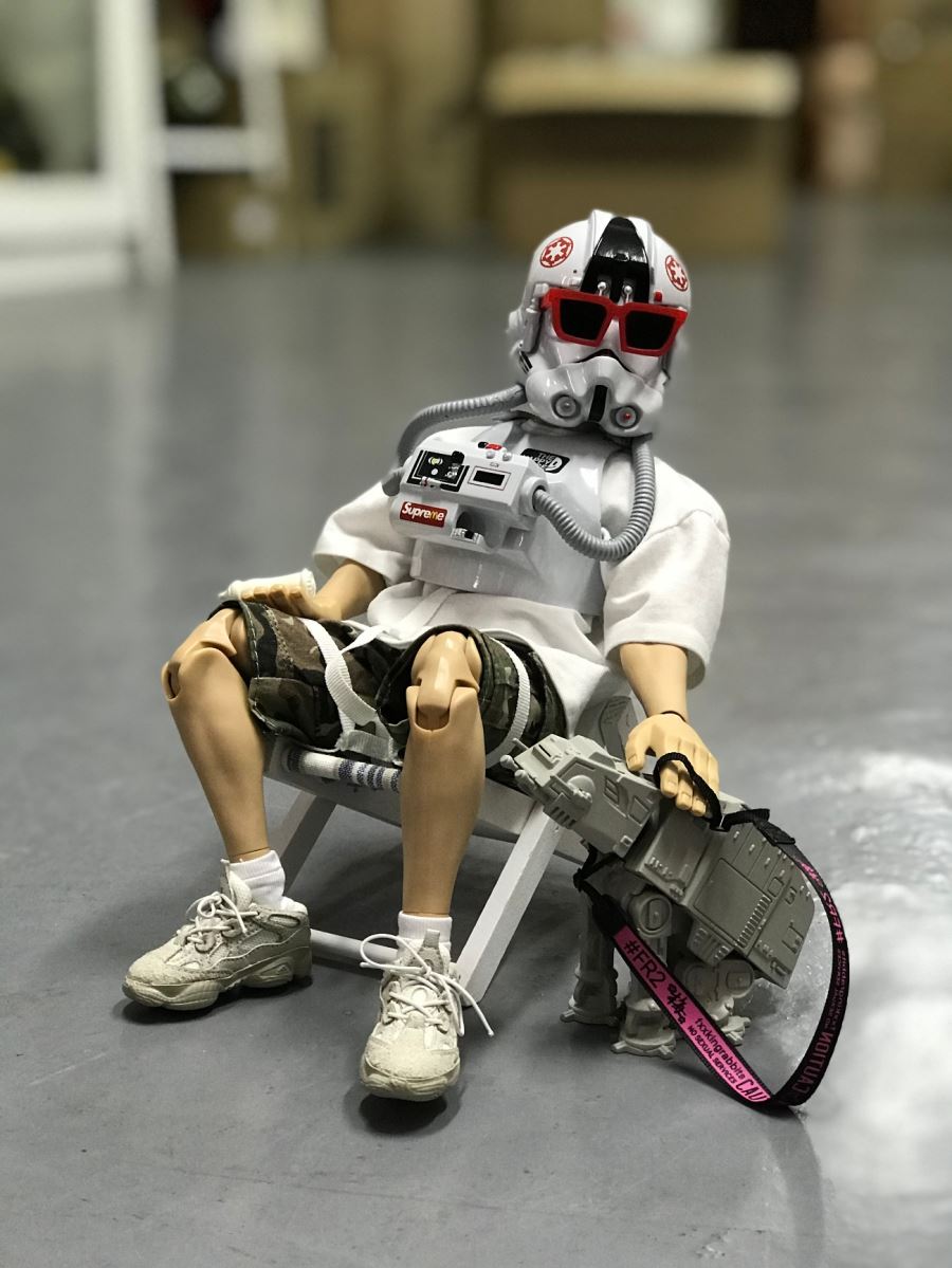 STOP WARS series PART1accessories list. Helmet + breastplate (without head sculpt). Glasses. Baby bottle.AT-AT robot dog. Beach chair.T-shirt. Shorts. Socks. Sneakers (new style). Camera strap (AT -AT for dogs)