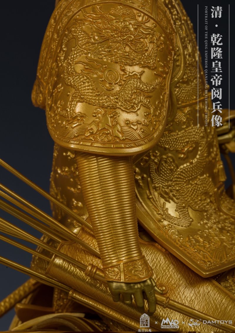 DAMTOYS โชคดีที่ได้ร่วมมือกับ MADOLOGY ในครั้งนี้เพื่อขออนุญาต "ภาพการอ่านอันยิ่งใหญ่ของจักรพรรดิเฉียนหลง" ของพระราชวังต้องห้ามในครั้งนี้ เนื่องจากชื่อเสียงของหนังสือม้วนนี้อยู่ในแวดวงการแสดงความชื่นชมและการยอมรับอย่างสูงในหมู่ผู้คน damtoys จึงให้ความสำคัญกับโครงการนี้มาก ใช้เวลาสองปีในการศึกษาทุกรายละเอียดของภาพวาดนี้และพยายามอย่างเต็มที่เพื่อเรียกคืนทุกรายละเอียดบนม้วนหนังสือ ทุกตารางนิ้วของลวดลายมังกรบนรูปสลักอย่างประณีต การนั่งบนหลังม้านั้นทำด้วยการแกะสลักด้วยโคลนและเส้นผมทุกเส้นจะถูกแกะสลักอย่างพิถีพิถัน . ในแง่ของการระบายสีสีทองเหลืองและสีทองที่ใช้กันทั่วไปในงานศิลปะแบบดั้งเดิมนั้นใช้ในการระบายสี โมโนโครมไม่เพียง แต่มีความคลาสสิกเท่านั้น แต่ยังช่วยเพิ่มความซาบซึ้งในรายละเอียดอีกด้วย