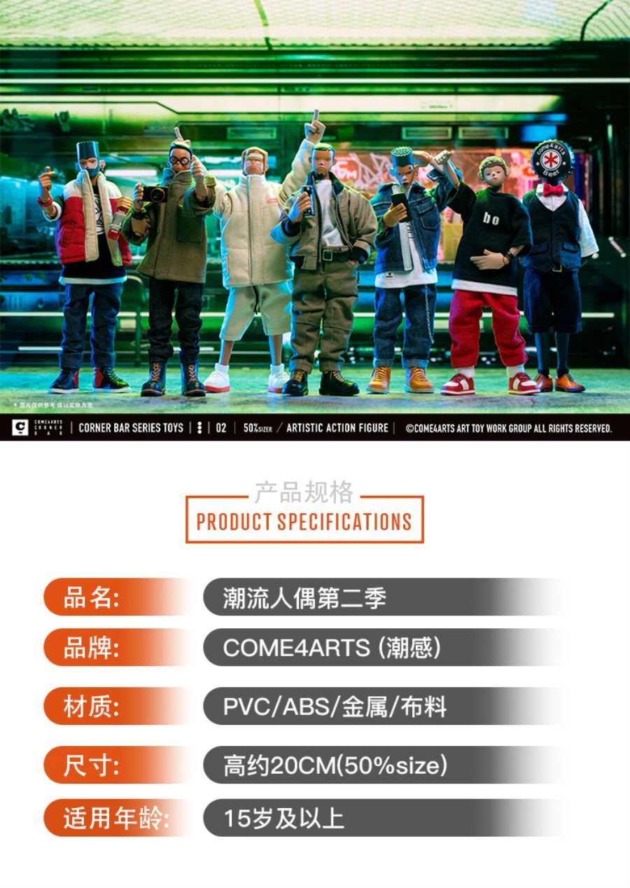 Trend Dolls Season 2Product Name: Trend Dolls Season 2 (6 regular styles + 1 hidden style: 1 regular style will be randomly replaced when hidden styles appear)Size: about 20CM (50% size)Product Code: CLRR-002Net Weight: About 80GMaterial: PVC/ABS/Metal/FabricPrice: 299 Yuan/Blind Box