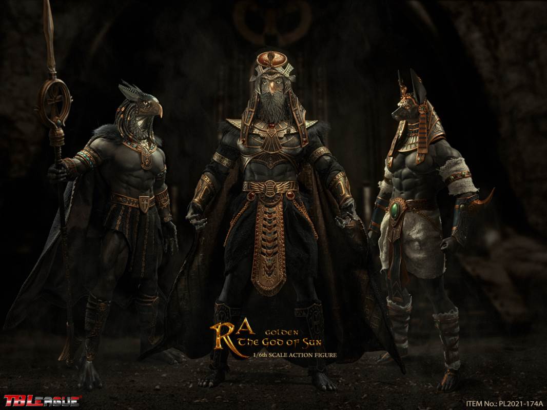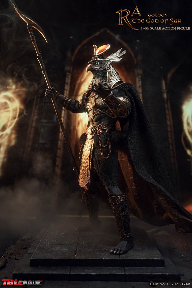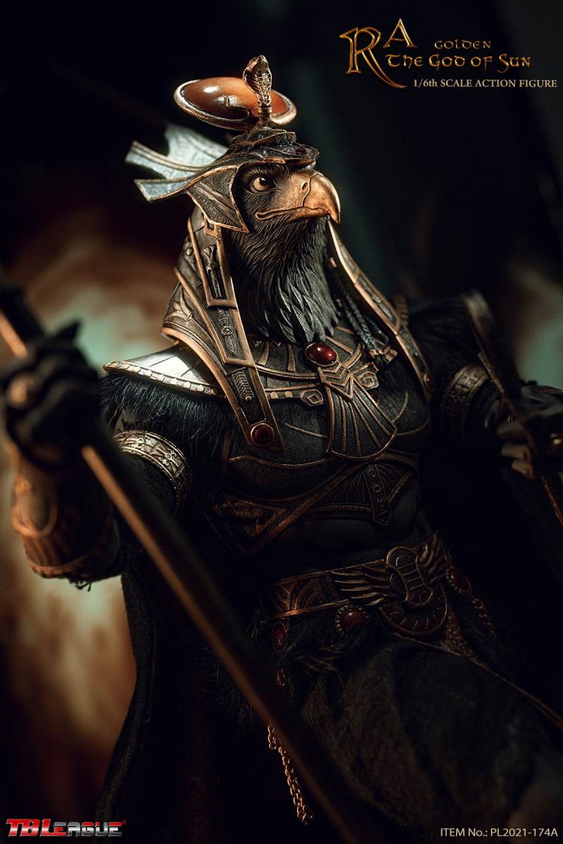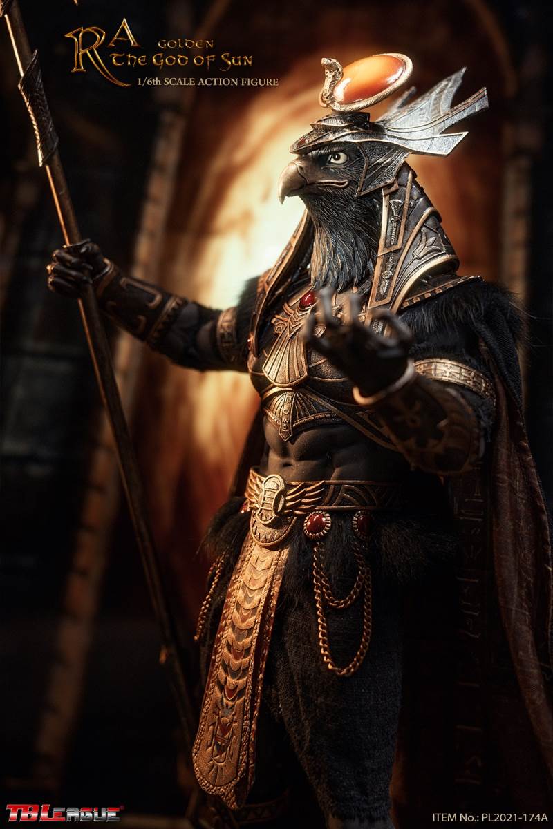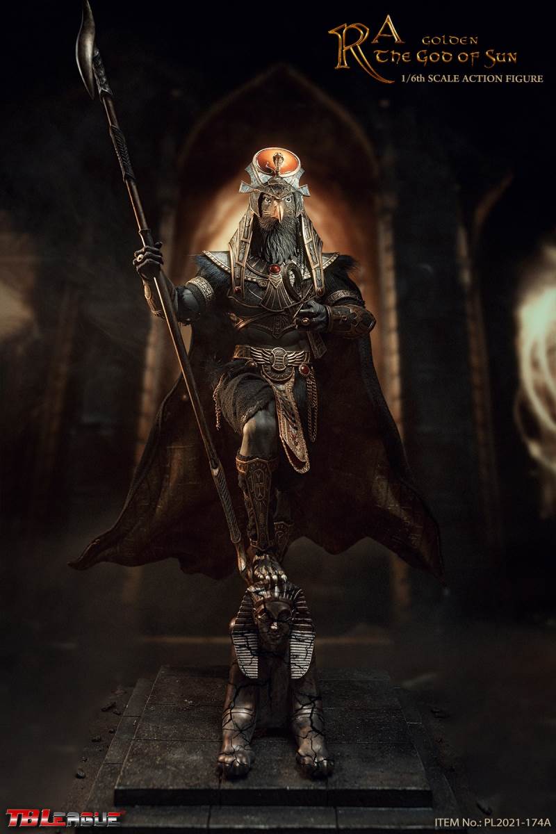 Ra the God of Sun- Golden 1/6 Scale Action FigureItem Name: Ra the God of Sun- Golden 1/6 Scale Action FigureItem No: PL2021-174ABar Code: 697 127233 084 0The Sun God of ancient Egypt was primarily known as Ra.He was often considered the king of the gods and was thus the patron god of the pharaoh and one of the main gods in the ancient Egyptian pantheon.Ra was regarded as the one who created everything and he was very powerful and popular. He was worshipped all throughout ancient Egypt.Ra was believed to rule in all parts of the created world: the sky, the Earth , and the underworld . He was the god of the sun, order, kings, and the sky.He was most commonly depicted as a sun god who wore the sun disk on his head,also represented as a man with a hawk head and shared characteristics with the sky god Horus .Packing List:1) 2 x headsculpts2) 1 x TBLeague 1/6 male seamless body with metal skeleton3)3 pairs x interchangeable hands4)1 x battle style skirt5)1 X belt6)1 pair x feet7)1 x Cross ornaments8)1 X scepter9)1 X neck armor10)1 pair X Arm rings11)1pair X arm straps12)1 pair X forearm armors13) 1 pair X leg armors14)1 pair X fabric leg sleeves15)1 x cloakPackaging:1 product/individual boxGW: 1.83 kgMeasurements: 24.3cm*11.0cm*38.0cm6 products/master cartonGW: 11.92kgMeasurements: 50cm*36.7cm*40.5cm