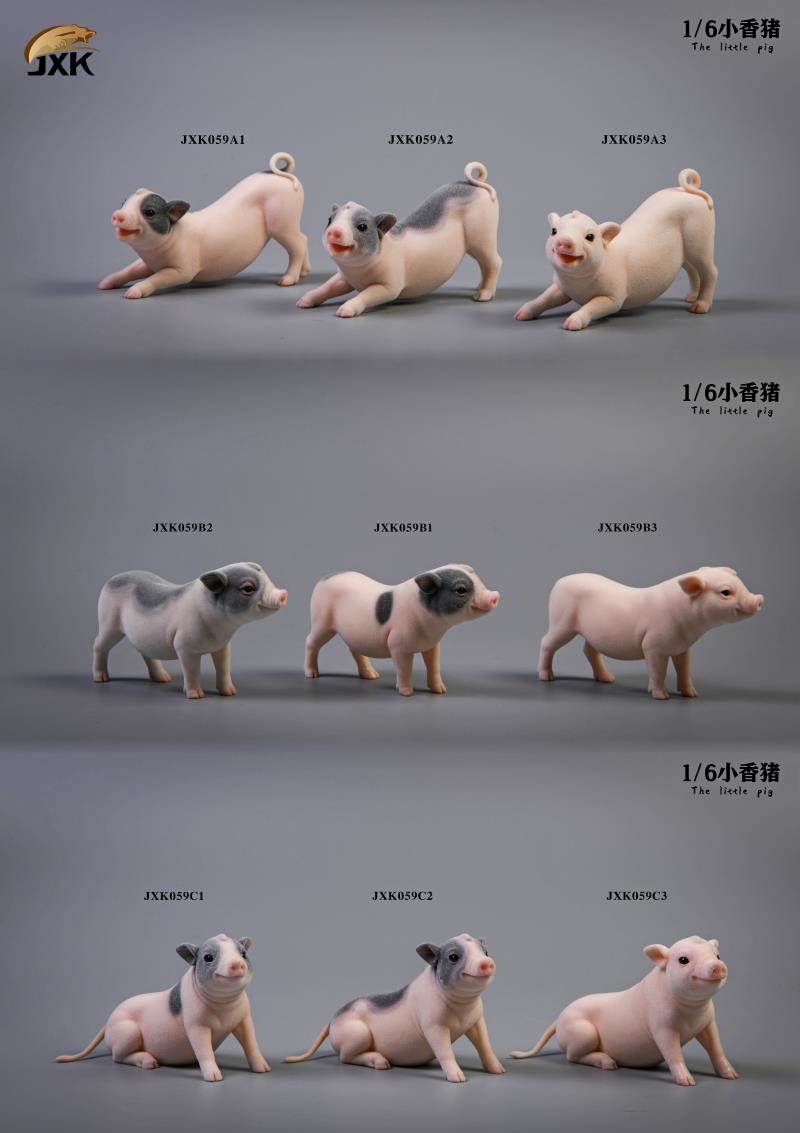 Product:JXKName:The little pigScale:1/6 No.:JXK 059 A1/A2/A3 JXK 059 B1/B2/B3 JXK 059 C1/C2/C3 Weight: A: 86.4g B: 86.4g C: 85.5gMaterial: resinsize:A: 10*3*5.5 CM B: 10*2*6 CM C: 9.5*4*6 CM Notice:Surface implanted villi