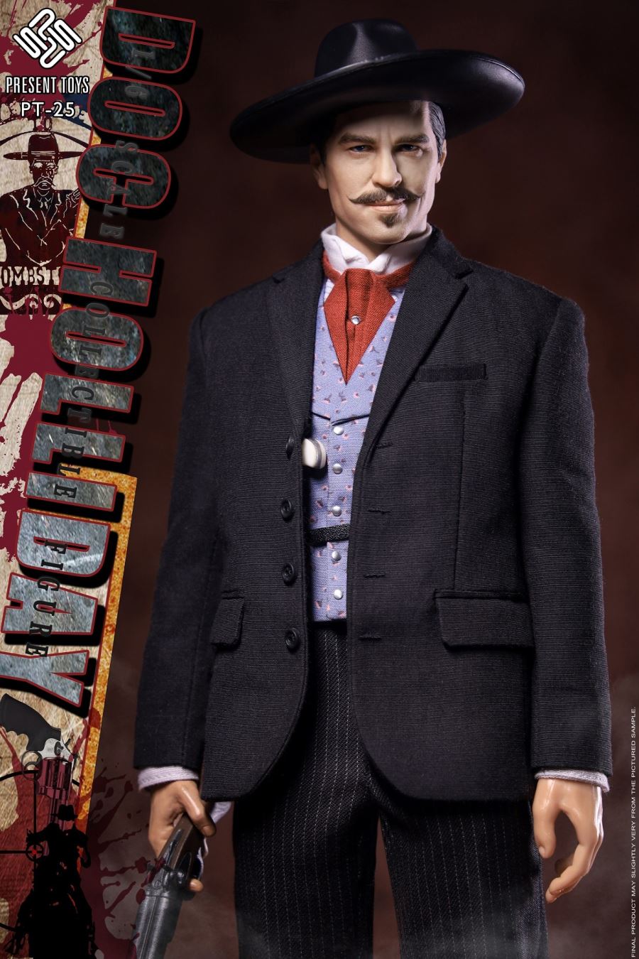 PRESENT TOYS is proud to release a new product: 1:6 collectible toy – Legendary GunnerProduct Specs:Name: Legendary GunnerProduct Number: PT-sp25Scale: 1/6Product List:Head sculpture *1Articulated body*1Real hand*6Hat*1Revolver*1Shotgun*1Exclusive platform*1Costume:Suits*1Vest*1Shirt*1Bow tie*1Holster*1Suit pants*1Shoes*1Release Date: 4th quarter 2021