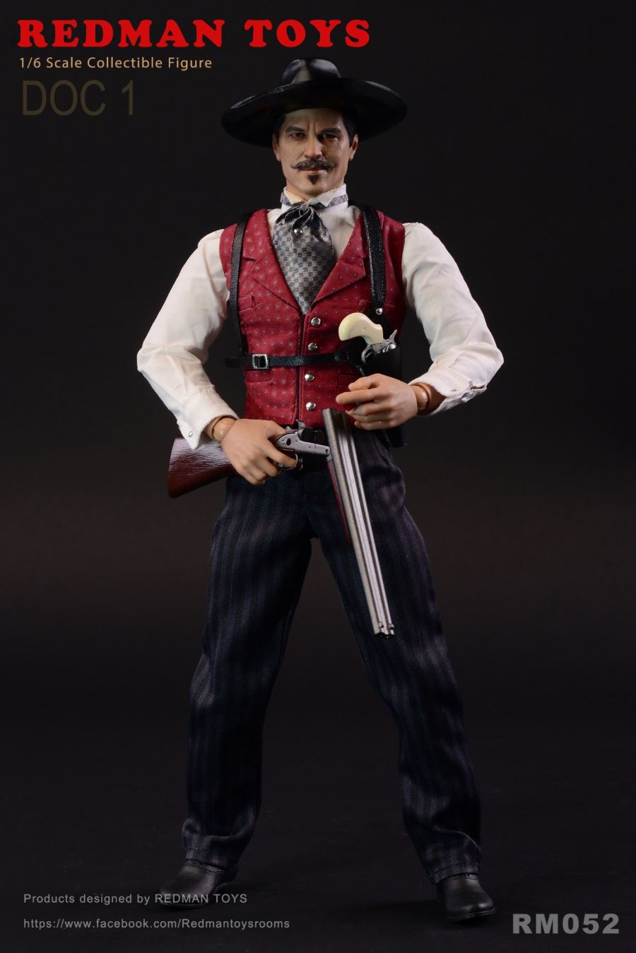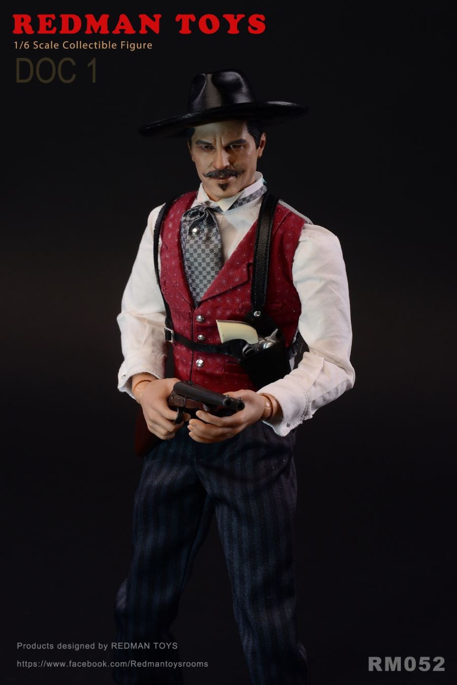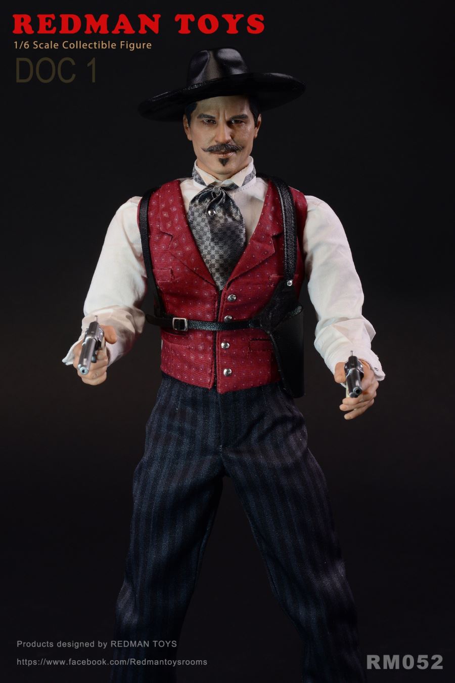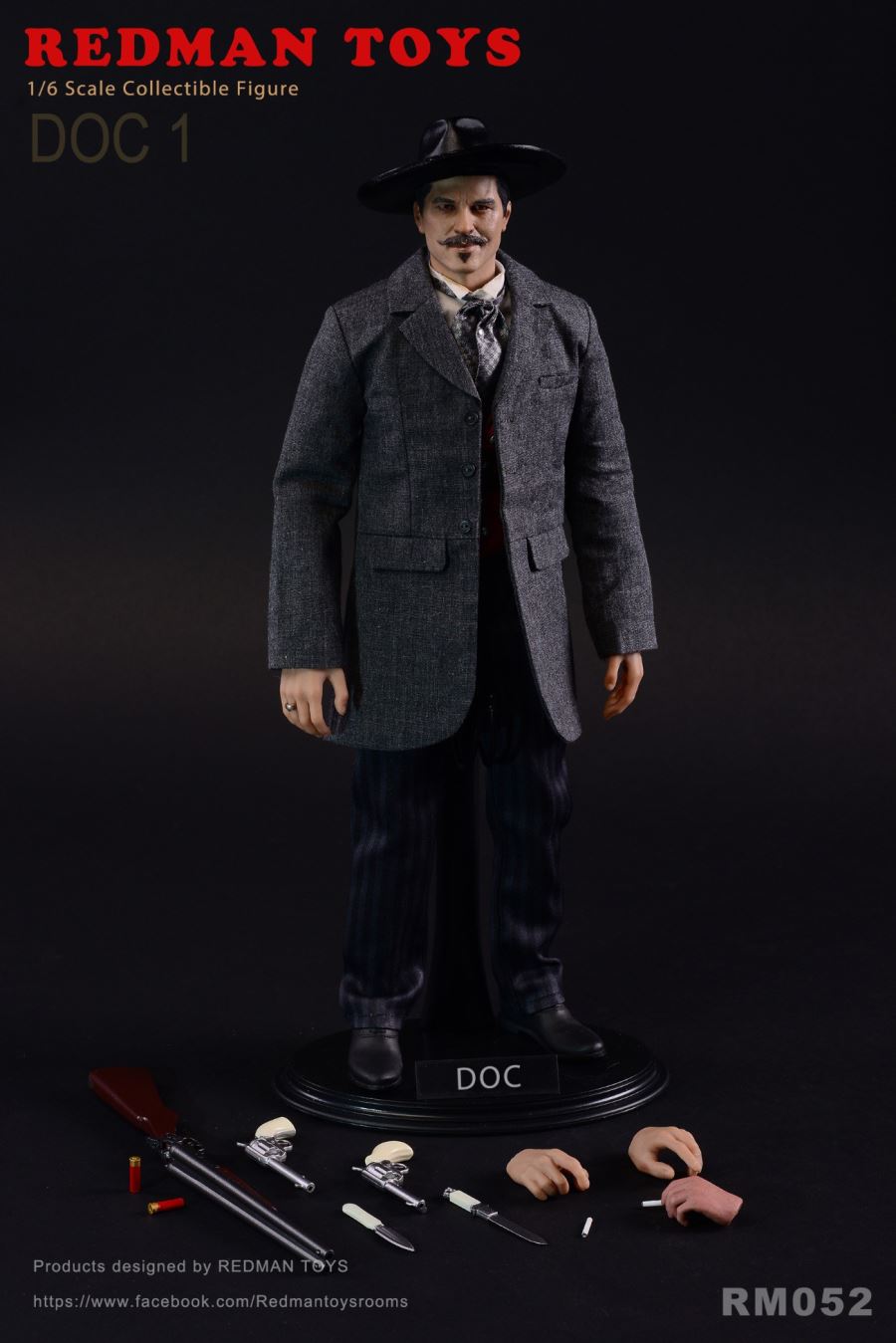 REDMAN TOYS RM052 1/6 The COWBOY DOC 1 Tombstone Town DOC 1New product: 1/6 REDMAM TOYS Tombstone Town DOC 1Item No: RM052Products include:HeadSculpt with Hat HeadSculpt with HatSilver Plaid TieGray SuitWhite Shirt White ShirtRed VestBlack PantsBlack ShoesCigaretteRing gold ringTwo DOC Pistol X2 pistolsTwo DOC Knife X 2 knivesBlack Sling Holster Tactical Gun HangerDouble-‐barreled shotgunBullets x2BodyHands X6 Hands 6Pattern Stand