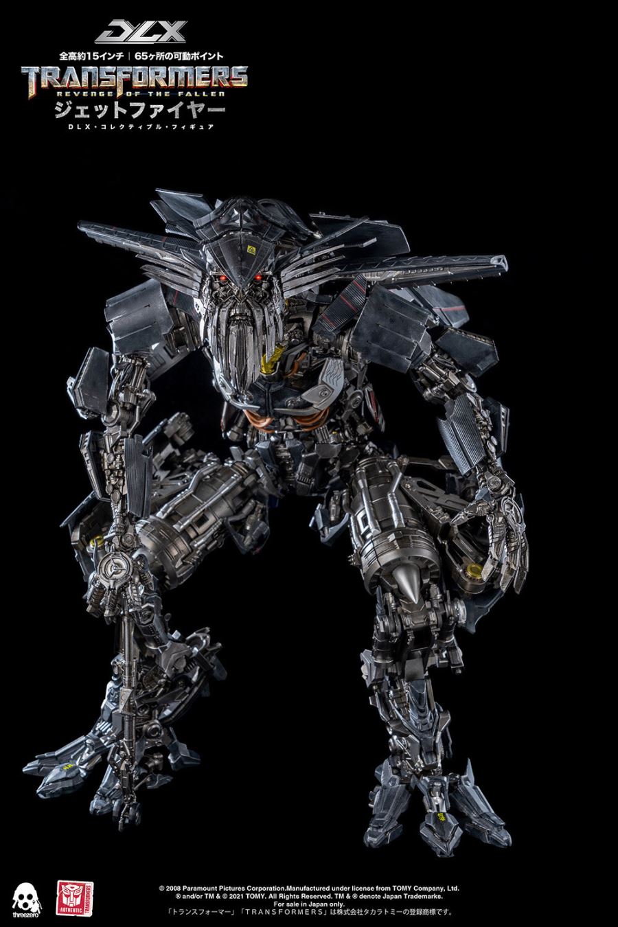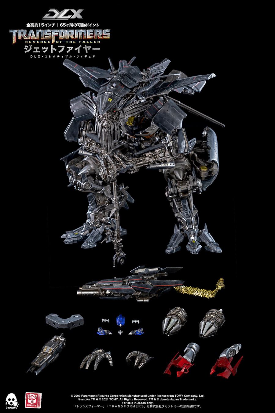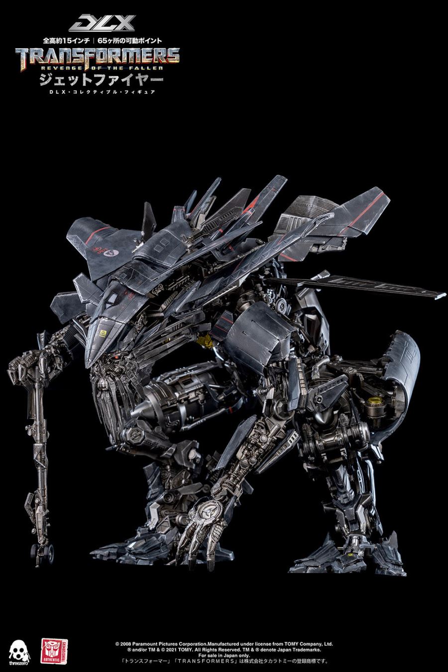 "Transformers / Revenge DLX Jet Fire" มีความสูงรวมประมาณ 38 ซม. และมีส่วนที่เคลื่อนย้ายได้ประมาณ 65 ชิ้นทั่วร่างกาย