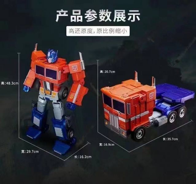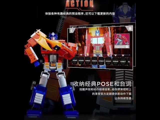 Can make flexible actions according to instructions, with 25 voiced lines Work : Hasbro officially authorized Robosen to automatically transform Optimus Prime Size : about 48CM high Estimated shipping time: 2021-2022