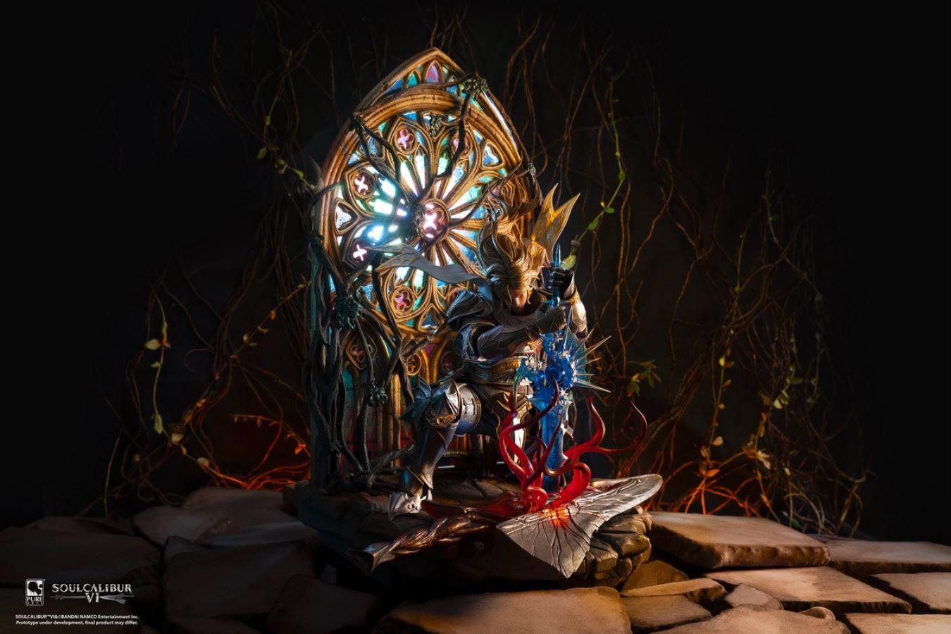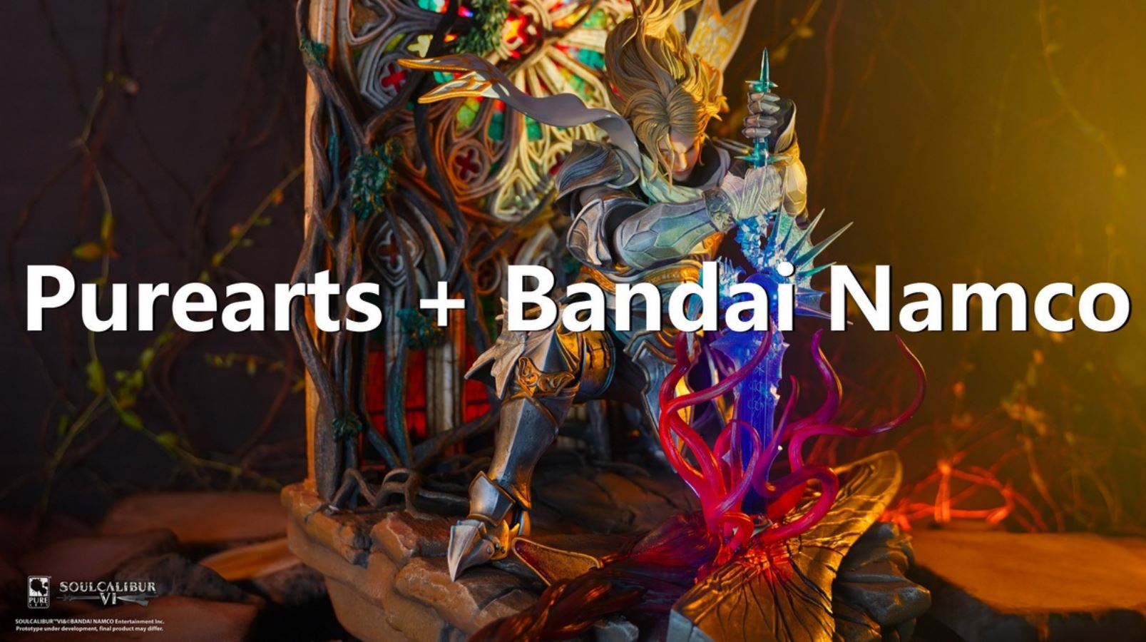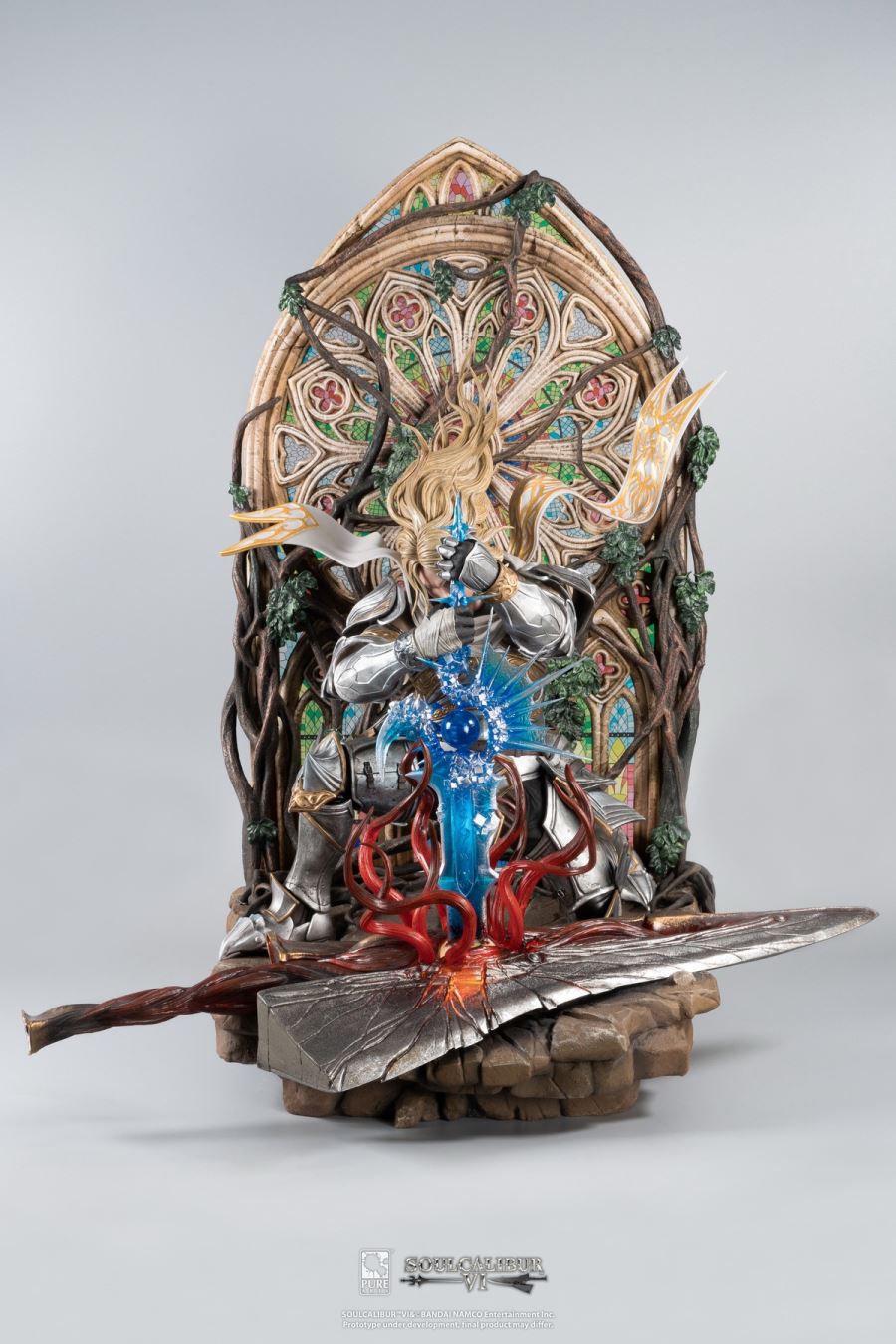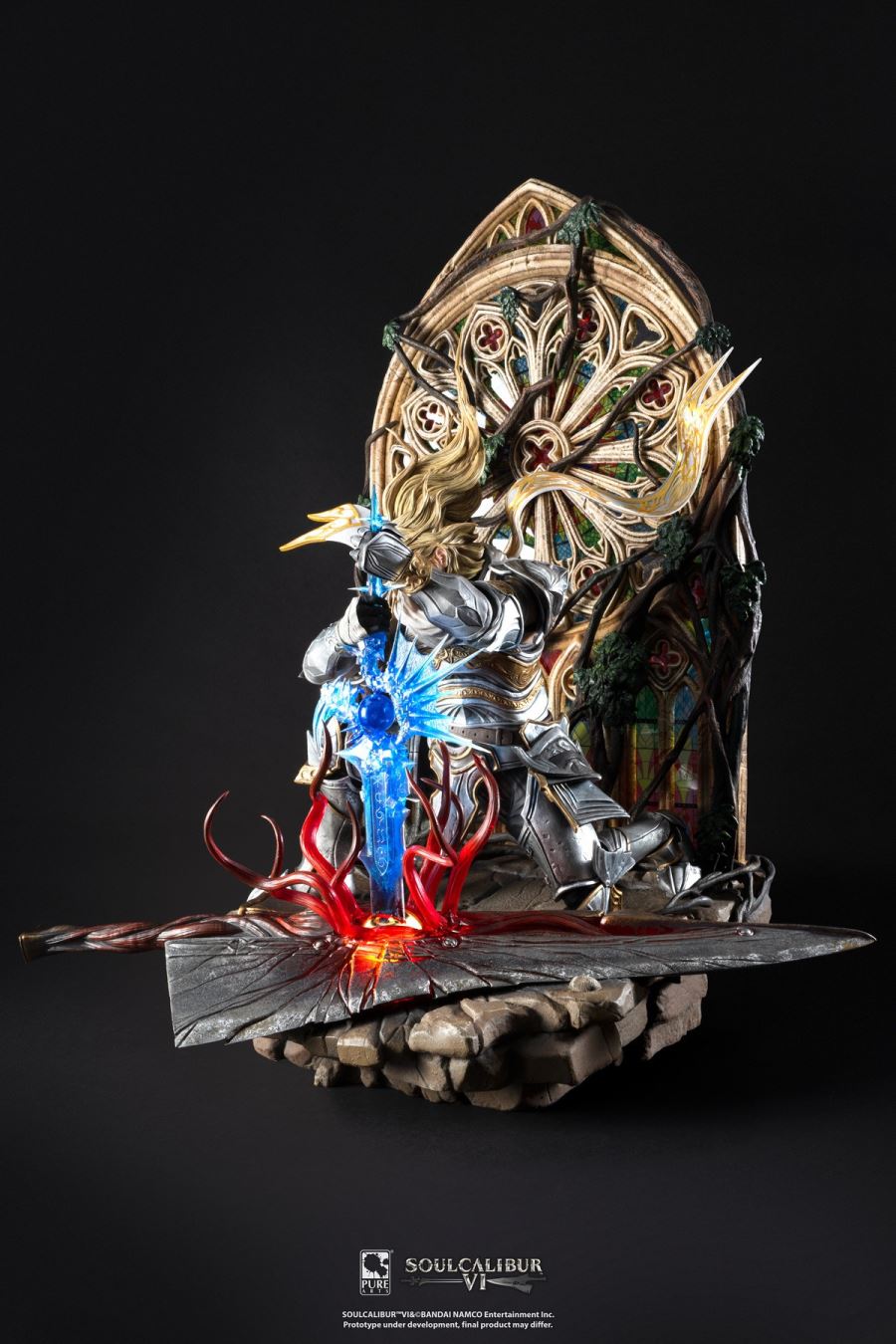 The merchandise follows the character Siegfried in the launch scene of Soul Calibur 3, where Siegfried uses Soul Calibur to destroy Soul Edge.