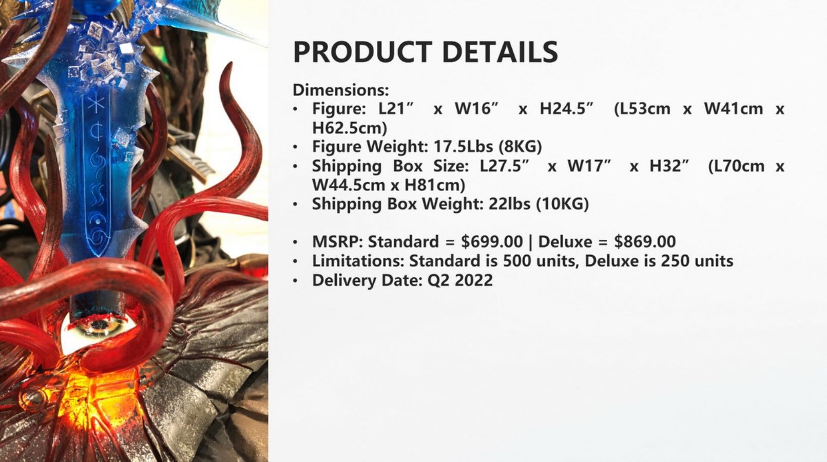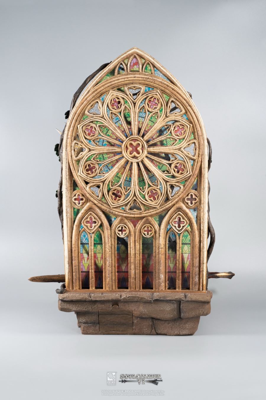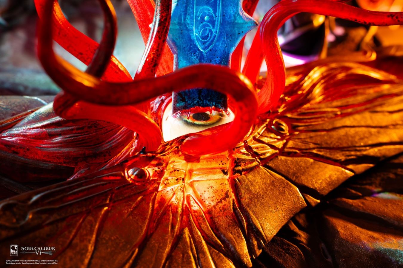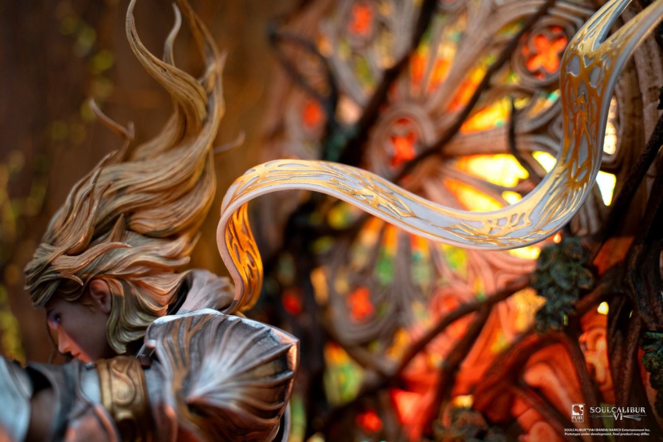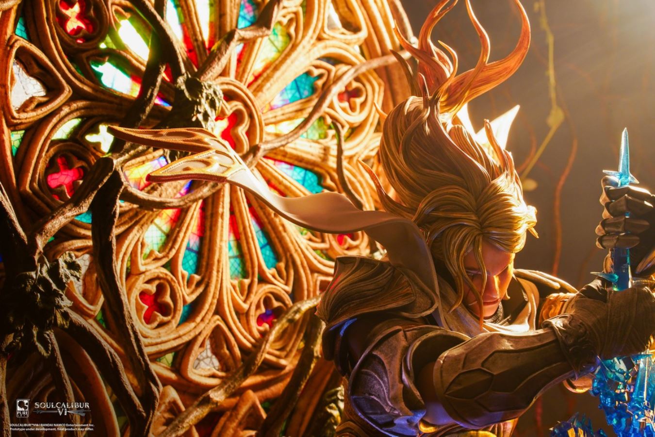 The merchandise follows the character Siegfried in the launch scene of Soul Calibur 3, where Siegfried uses Soul Calibur to destroy Soul Edge.