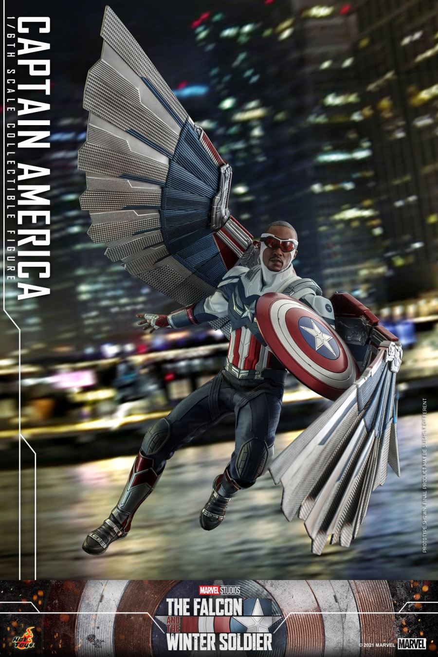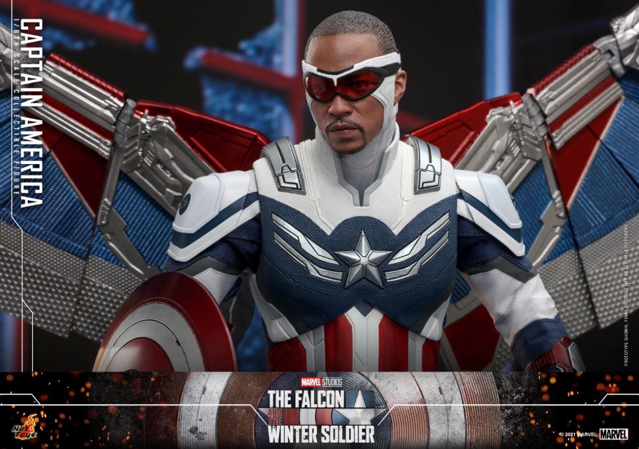 รูปปั้นหัวเหมือนจริงของตุ๊กตาตัวใหม่นี้ได้รับการแกะสลักอย่างพิถีพิถันโดยทีมช่างแกะหัว Hot Toys ของเกาหลีด้วยฝีมือที่ยอดเยี่ยม บทบาทของกัปตันอเมริการุ่นใหม่ที่รับบทโดยนักแสดงแอนโธนี่แม็คกี้คือ