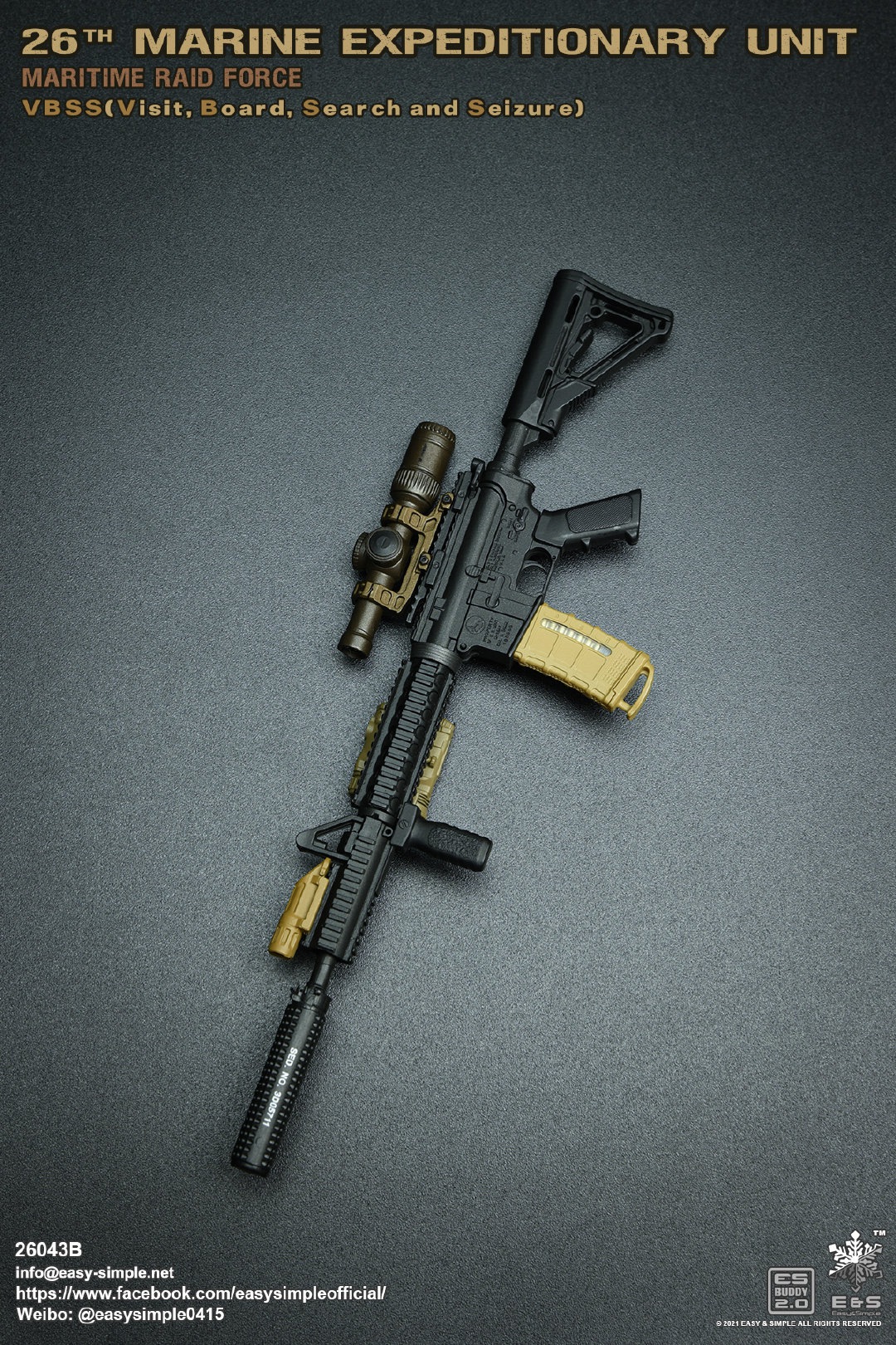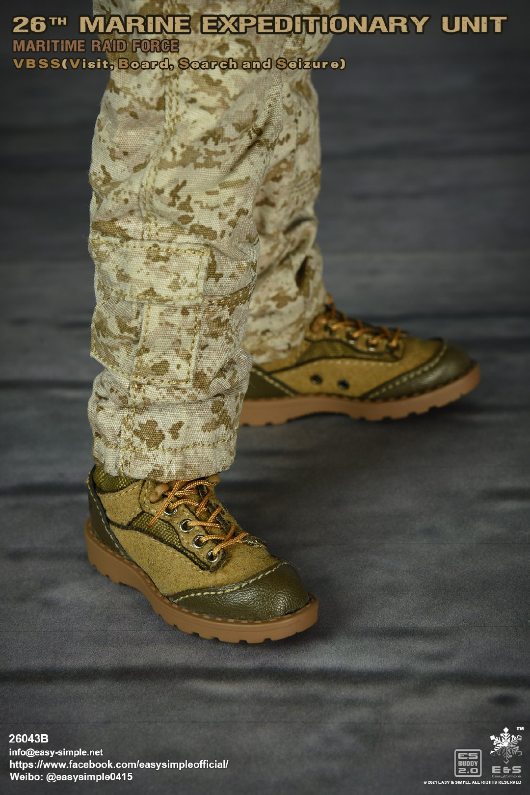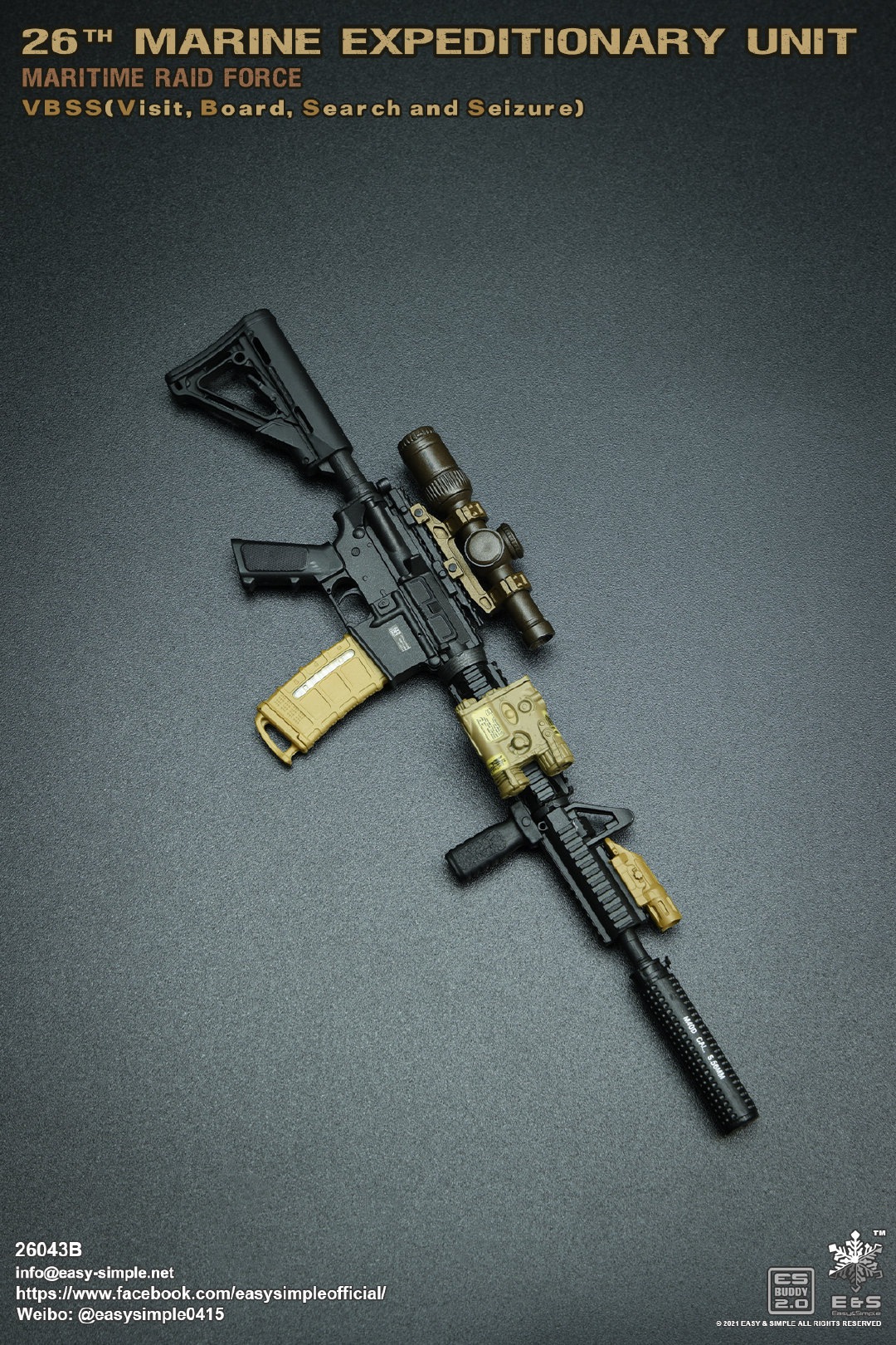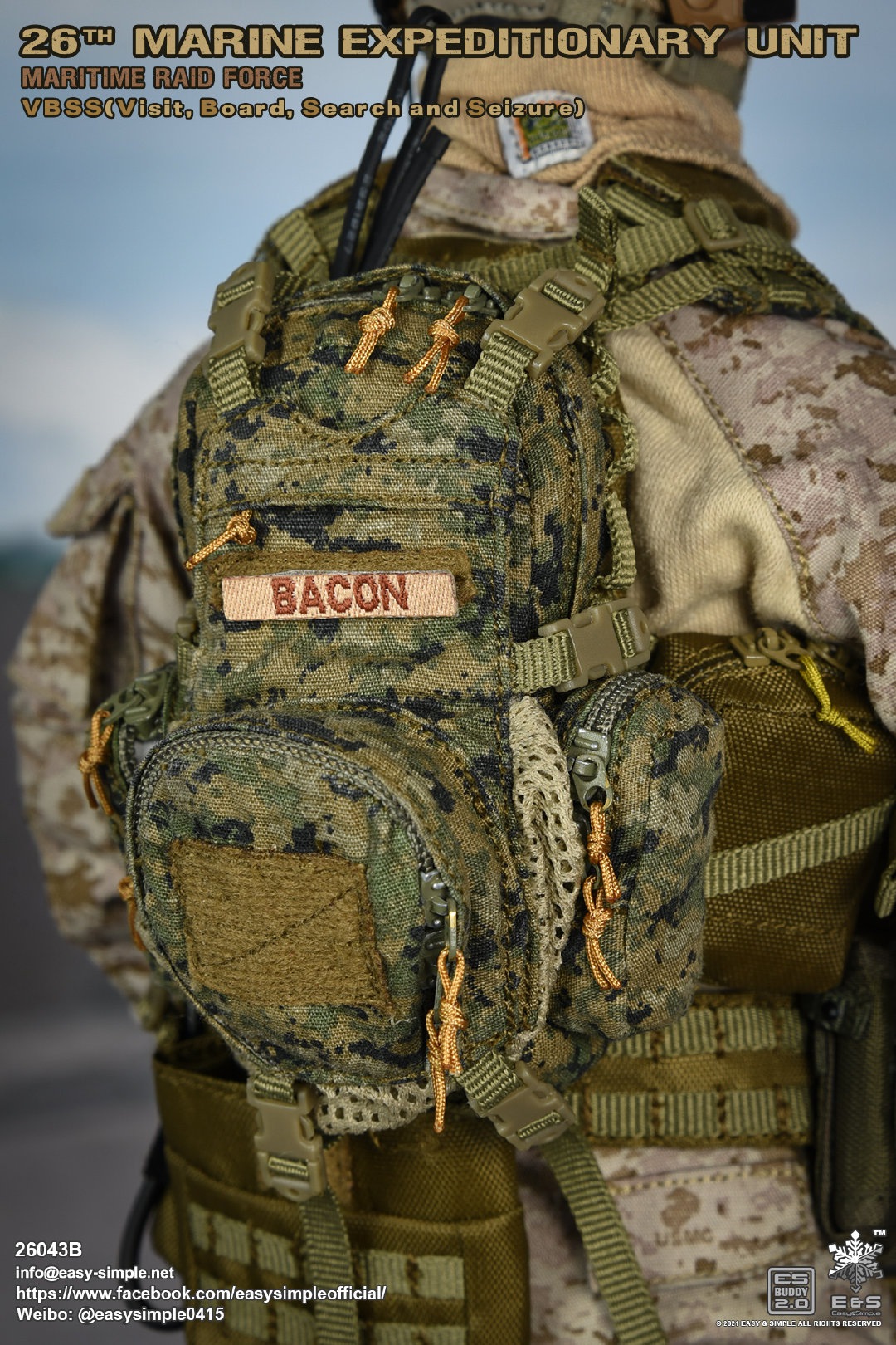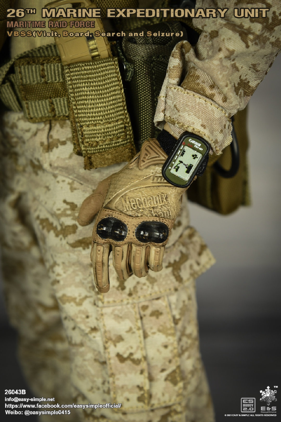 Easy&Simple 26043B26th Marine Expeditionary UnitMaritime Riad ForceVisit Board Search Seizure(VBSS)SKU: 26043BITEM: 26th Marine Expeditionary UnitMaritime Raid ForceVisit Board Search Seizure(VBSS)Breakdown ListReal like Head SculptES-Buddy 2.0 BodyFR Printed Shirt *NewMARPAT Desert FROG Combat Shirt *NewMARPAT Desert FROG Combat Pants *NewFROG Balaclava *NewInner Duty BeltPadded Heavy Duty War Belt Flex CAS Plate Carrier *NewMedium Nut Ruck *NewFSBE2 Radio PouchFSBE2 Single M4 Mag PouchFSBE2 Dump PouchFSBE2 Medic PouchFSBE2 Pistol Mag PouchFSBE2 FlashBang PouchMARPAT Woodland YOTE Assault Pack *NewM4A1 Assault Rifle with Extended Rail System *NewRazor HD 2 1-6 ScopeFlat Top Riser Rail *NewTactical Weapon Mounted Light(WML) *NewTactical Vertical Fore GripPEQ-16 Indicator5.56 SuppressorTactical SlingCQD Sling Ring30rd MagPmagM-45 CQBP .45 PistolX300 Weapon Light6004 HiolsterPistol MagEnhanced Combat Helmet *New ColorUniversal NVG MountAN/PVS-31 NVGRemote Battery PackMK3 Gen1 Counterweight *NewMPLS LightM-Pact 4.0 Gloves *NewR.A.T Boots *NewCOMTAC3 HeadsetPeltor PTTPRC-148 RadioAntenna Extension CableCarabineersForetrex 401 GPS MS2000 StrobeMK13 FlashbangC.A.T TourniquetMetal Insignia *NewFSBE2 Speed Flashlight HolsterHABD with PouchTactical Floatation SystemSI Frame SunglassLight StickPatches
