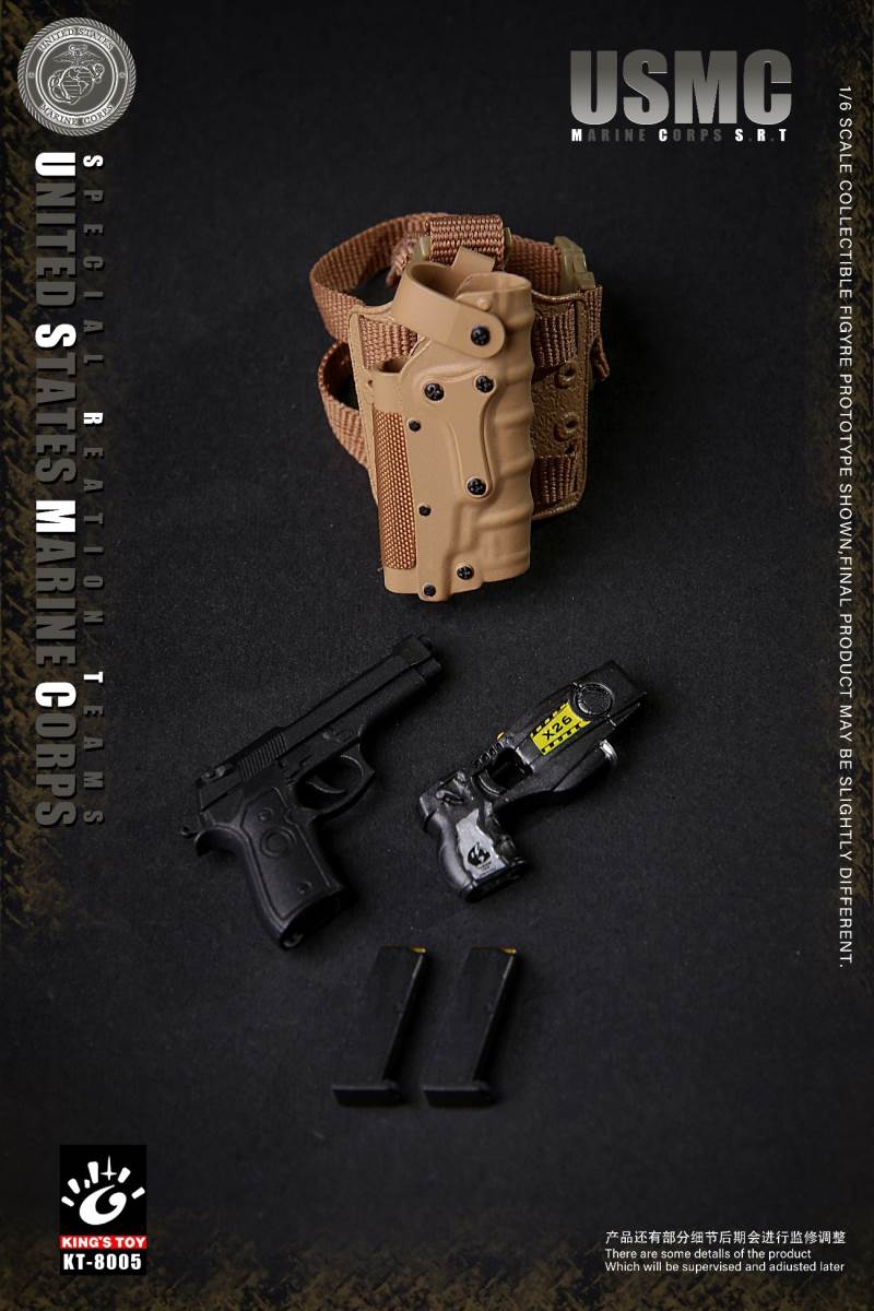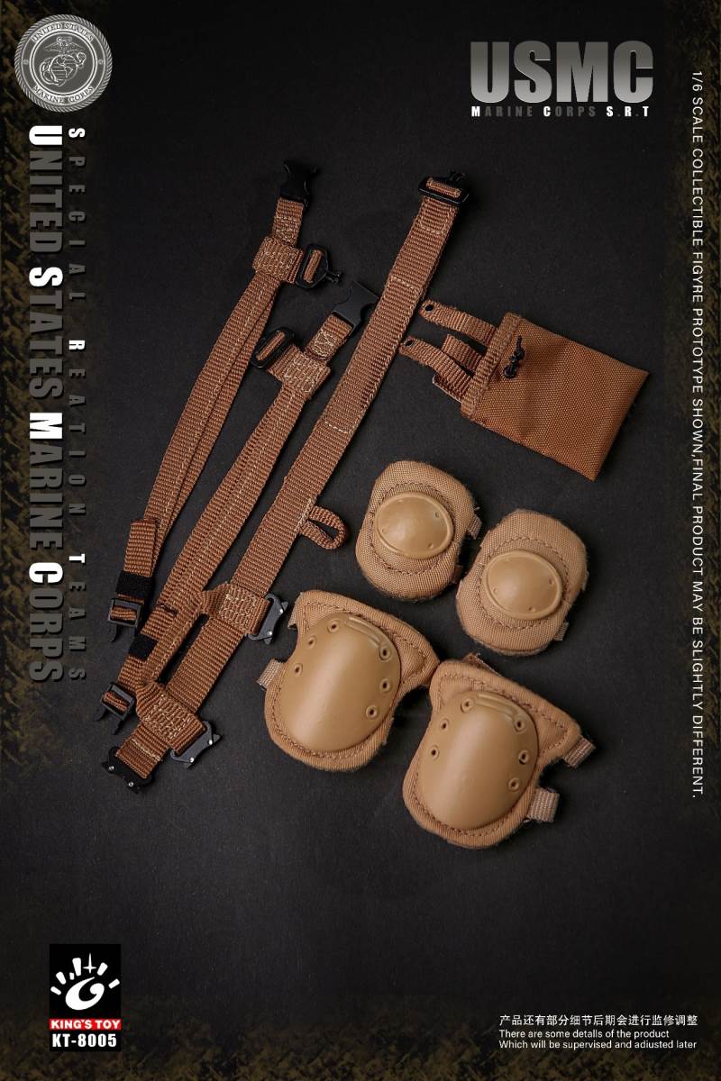 King's Toy: 1/6 USMC SRT U.S. Marine Corps Special Response Team (#KT-8005) 1.The head 2.5.0 body3. The M4 4. Glove hand *3 5. The helmet 6. Holster 7. Band 8. Intercom 9. A pistol 10. The M4 shotgun Combat boots 12. The scissors 13. Gun lamp 14. Sunglasses 15. The shotgun * 4 16. Light sticks17. Stun guns 18. Earmuffs 19. The knife The vise 21. Gas masks 22. The cutting machine 23. The sights 24. Backpack holder 25. Recycle bag Skeleton headgear 27. Velcro suits 28.M4 magazine bag *2 29. Pistol magazine bag 30 medical kits 31. Administrative package 32. Tactical drop seat belt 33. Tactical vest 34. Radio bag 35. Tactical tourniquet 36. The gun straps 37. The gun on the rope 38. The knee 39. The elbow pads 40. T-shirts41. Fattening pants42. The stents 43. The chapter on the back Chapter44. The national flag 45. The armbands A 46. The armbands B 47. The armbands C 48. The armbands D
