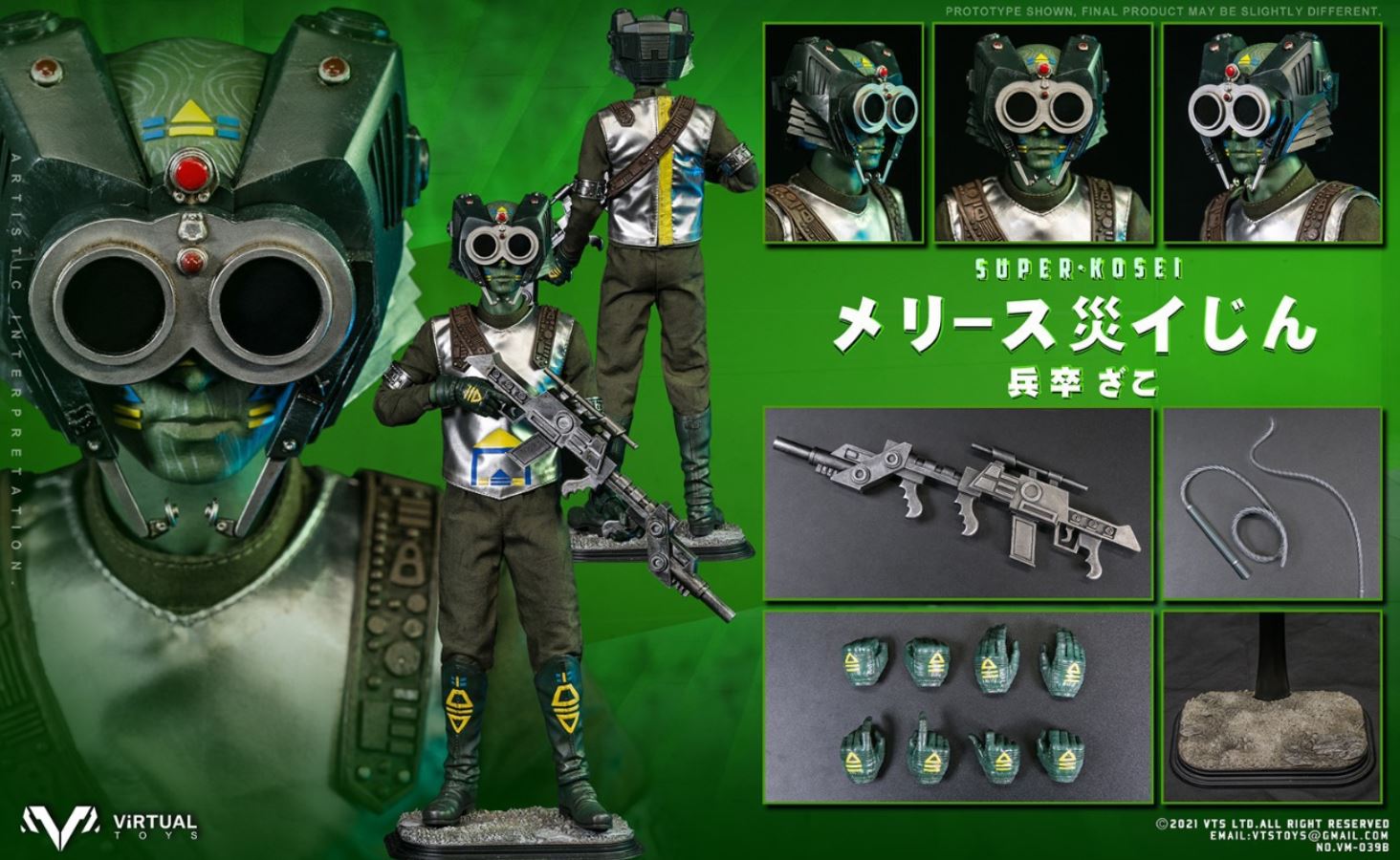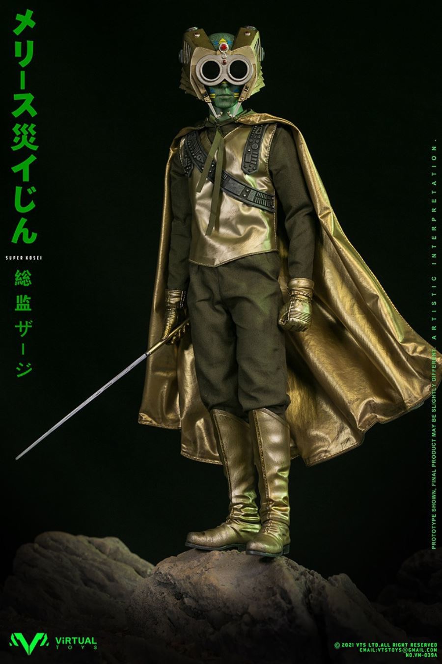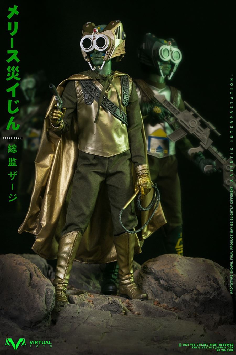 VTS TOYS:1/6 Collectible Figure-Catastrophe Planet Godmesuer CommissionerNO.VM39AThe 1/6th scale Catastrophe Planet Godmeser Commissioner Collectible Figure’s special features:- Highly detailed helmet with face- Highly posable body-Seven (7) pieces of interchangeable hands including:-One (1) right hand for shooting-One (1) right hand for holding whip-One (1) right hand for holding sword-One (1) pair of fists-One (1) pair of relaxed handsCostumes:-One (1) dark green and gold colored cape-One (1) dark green colored long sleeves shirt-One (1) pair of dark green pants-One (1) gold colored vest with dark grey colored chest belt-One (1) pair of gold colored bootsWeapons:-One (1) sword-Two (2) pieces of interchangeable whips-One (1) gunAccessories:-One (1) figure stand with character nameplate