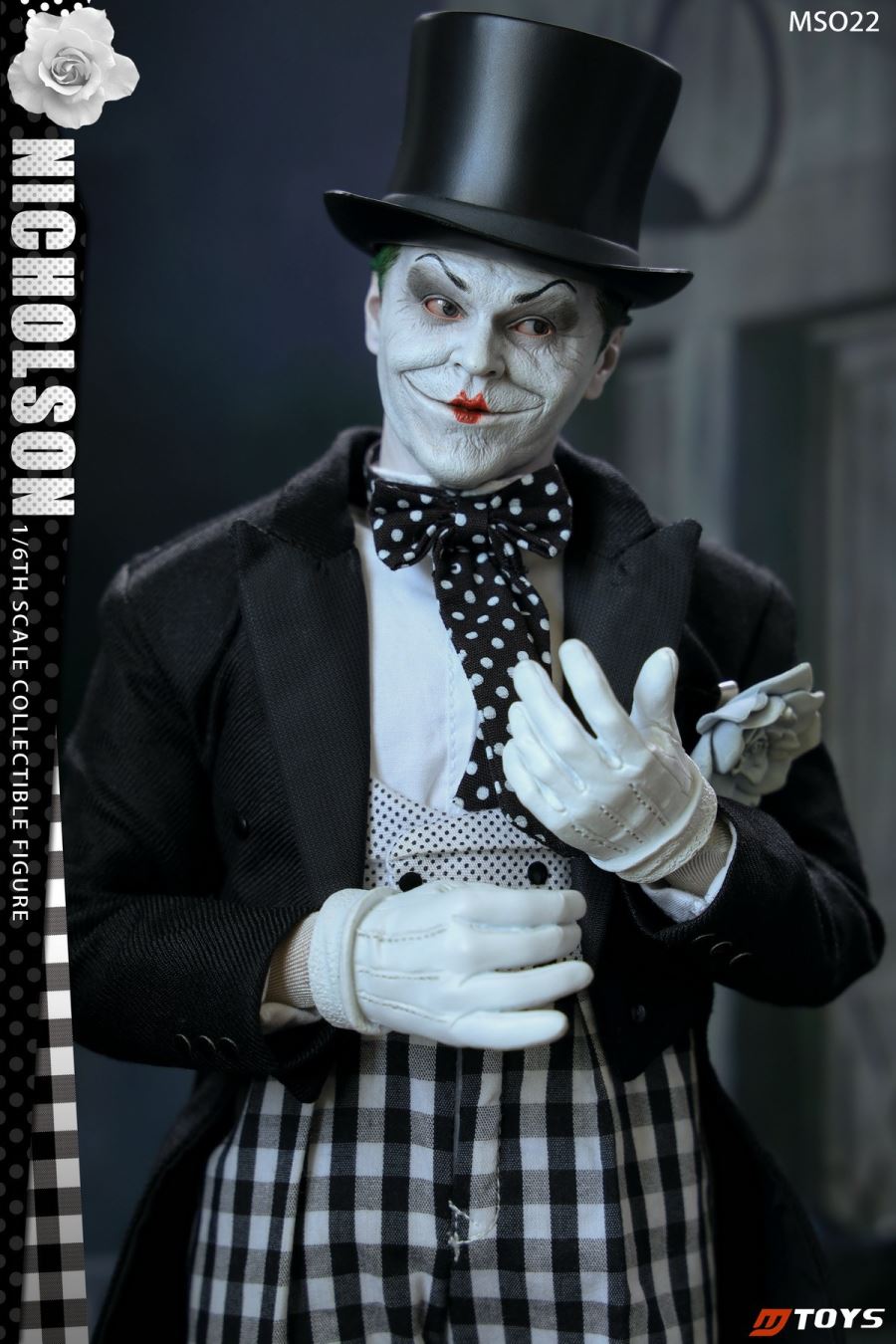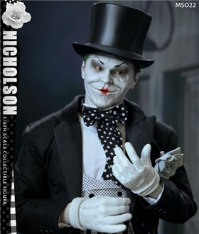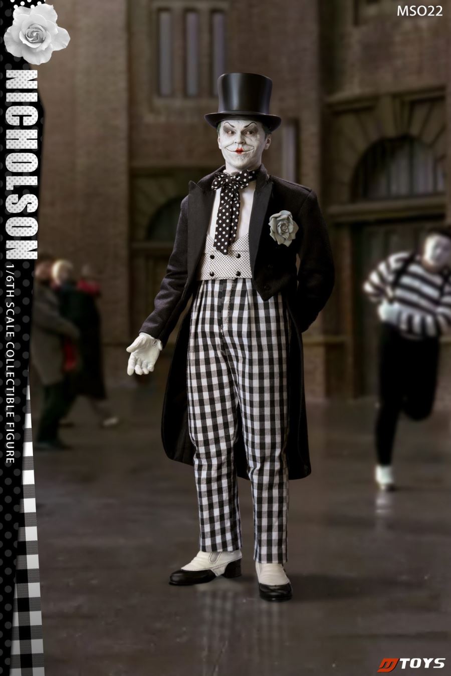 MTOYS 1/6 MS022 pantomime joker NicholsonFeatures:1、head*12、body*13、hand*64. Fattening clothes * 15. White shirt * 16. Wave point vest * 17. Plaid pants * 18. Tuxedo * 19. Bow tie * 110. Strap * 111. hat * 112. Corsage * 113. Black and white shoes x114. Feather pen * 115. Bracket * 1