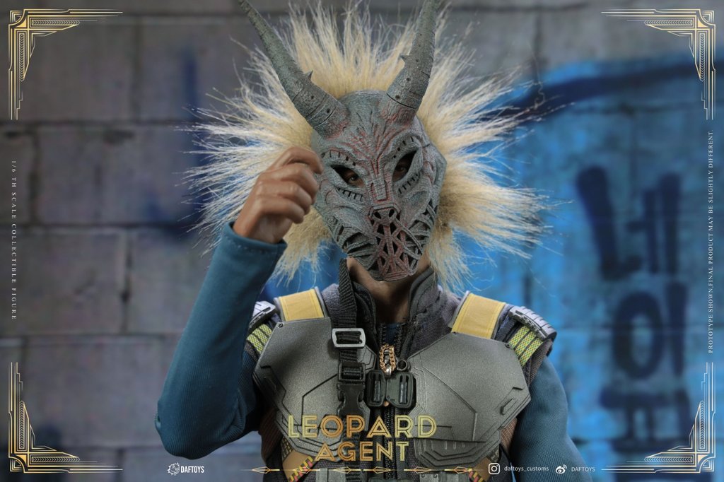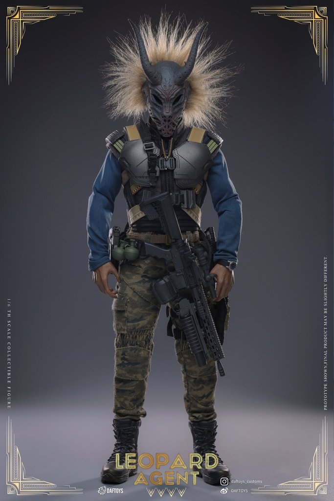 The 1/6th Scale Leopard Agent Collectible Figure features:One (1) head sculptOne (1) articulated bodySix (6) pieces of interchangeable handsOne (1) tactical vestOne (1) pair of tactical pants (including belt)One (1) pair of tactical bootsOne (1) shirtOne (1) tactical watchOne (1) necklaceTwo (2) grenadesOne (1) Pistol (including quick handle)Eight (8) sets of tactical magazinesOne (1) main weapon (including grenade launcher)One (1) daggerOne (1) equipment bagOne (1) totem mask (wearable)One (1) tactical belt (including accessories)One (1) tactical leg holster