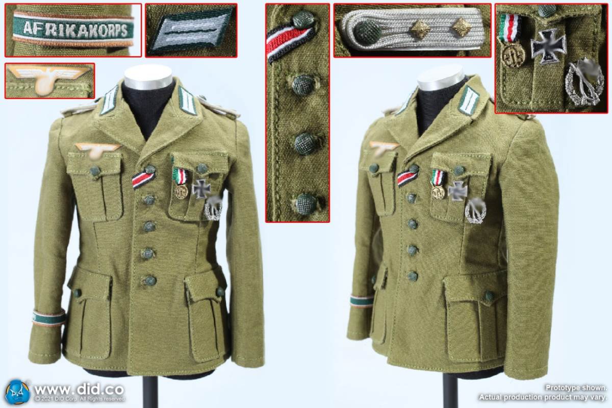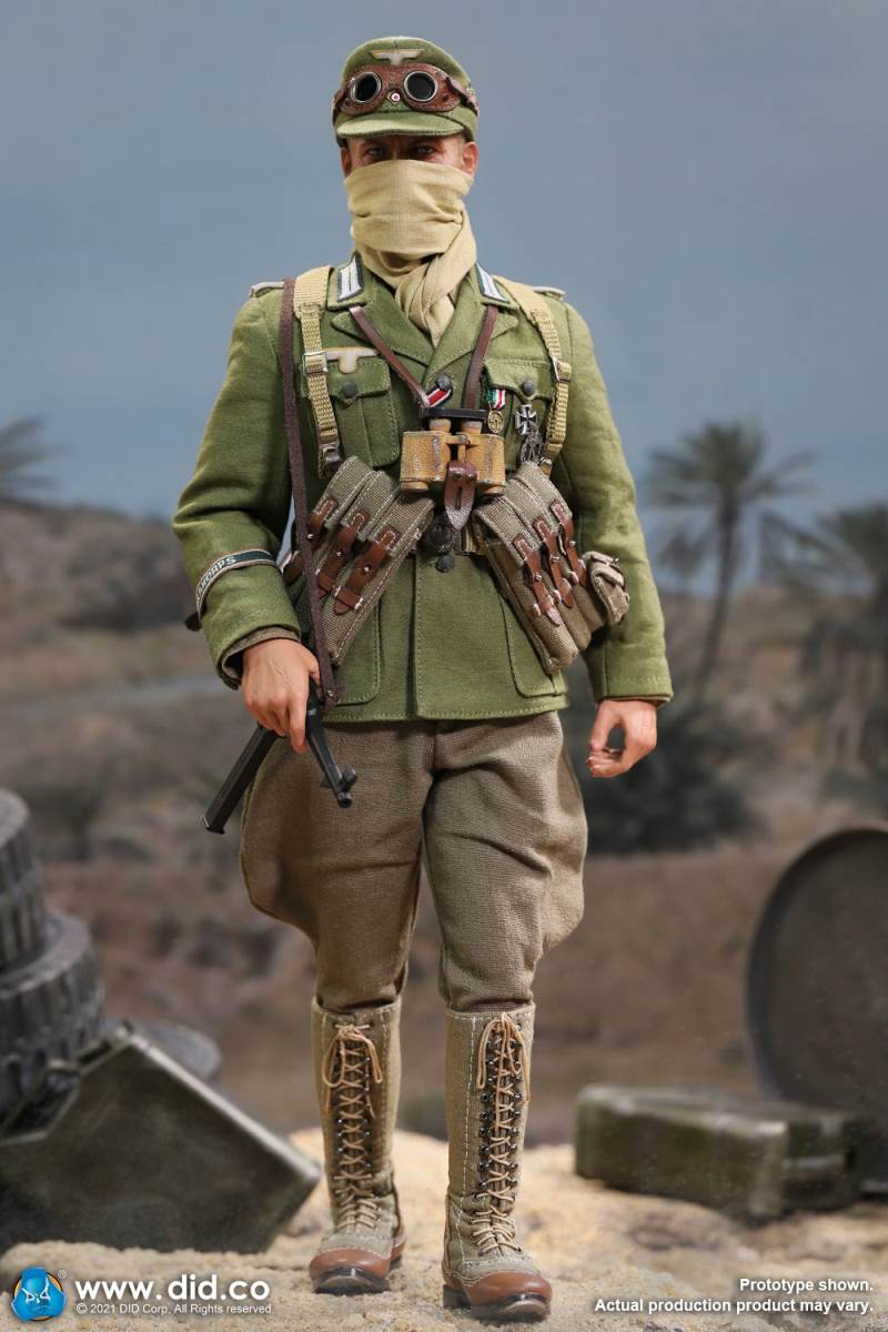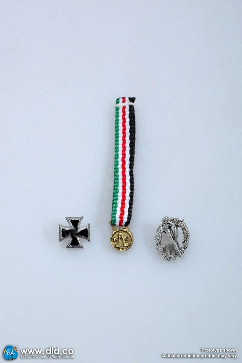 D80151 Accessories ListBasic1 Head sculpt 2 Body3 Palm X2 Pairs of clothing4 Officer combat cap5 M40 tropical uniform6 Breeches7 Green shirt8 Tie9 Cuff belt10 Windproof jacket coat11 Scarf12 Y belt13 Officer belt14 Gray gloves15 Tropical Canvas boots accessories16 Windproof goggles17 Canvas magazine bag X218 Telescope19 Brown leather map case20 Compass21 Pencil22 Map23 Watch24 Silver ring25 Tropical beak water bottle26 Cigarette27 Brown leather pistol bag Weapon28 P38 Pistol29 MP40 Submachine Gun Badge30 Eagle Mark X131 Lapel X1 to32 Epaulettes X3 to33 First Class Iron Cross X134 Infantry Assault Medal X135 World War II German-Italian African Army Battle Medal X1