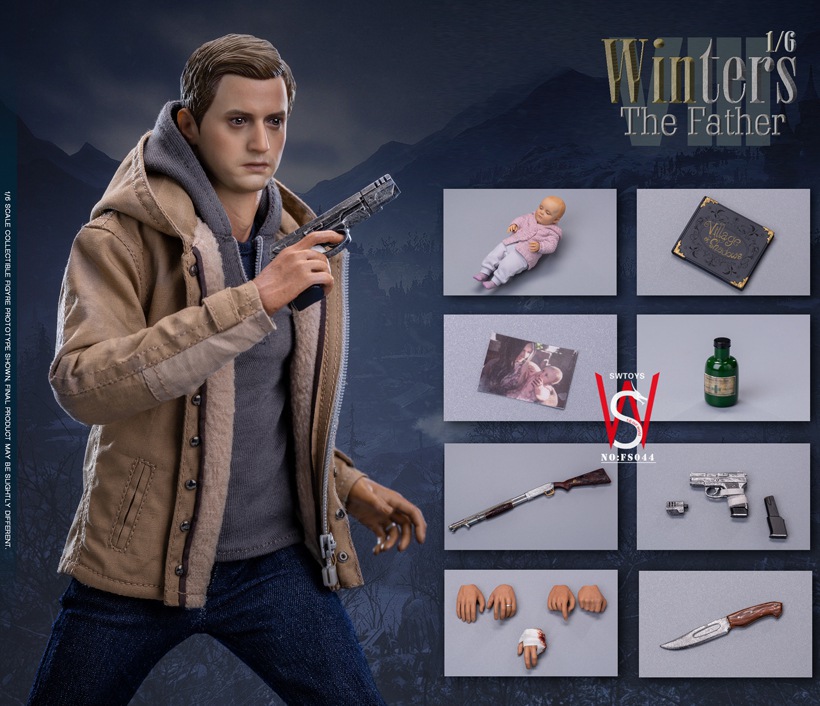 SWTOYS 1/6 NO: FS044 WINTERS Winters FatherList:Head Sculpture: 1Jacket: 1Hooded Sweater: 1T-shirt: 1Leather Belt: 1Jeans: 1Normal Hand Shape Left and Right: 1 PairRight wrist gun hand type: 1right wrist knife hand type: 1left wrist bandaging hand type: 1shoe: 1 pairBody: 1sleeping baby: 1fairy book: 1family photo: 1potion: 1 BottleGlyph shotgun: 1Pistol: 1Pistol long magazine: 1 pairPistol magazine: 1pair Pistol modifier: 1 pairPocket knife: 1 pair