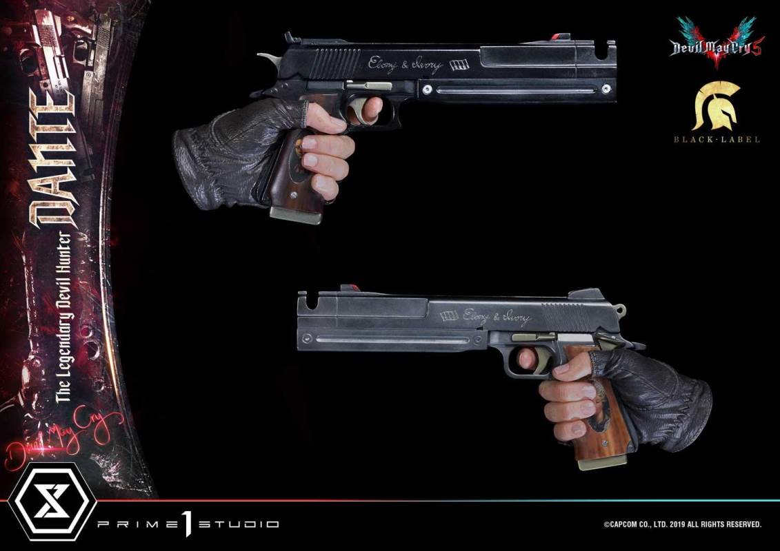 Descriptions“Can't let a boy do a man's job.”Prime 1 Studio is proud to present a breathtaking addition to our High Definition Museum Masterline Black Label Series: The 1/2 Scale DANTE, The Legendary Devil Hunter from Devil May Cry 5!Aptly named for the titular character in The Divine Comedy, Dante, The Legendary Devil Hunter, clears level upon level of demonic infestation with style and sheer badassery! Hired by V to battle the demon Urizen, Dante takes aim in this iconic museum-quality statue surely bound for your collection!Prime 1 Studio’s artists have spared no effort to reproduce Dante’s iconic pose from Devil May Cry 5 in glorious 1/2 Scale. Dante stands tall at 43 inches, garbed in his quintessential long, red coat and equipped with his faithful sidearms, Ebony & Ivory and his trusty sword, Rebellion!Prime 1 Studio’s tailors have been able to painstakingly recreate Dante’s long coat in exacting detail due to this statue’s immense scale. Inspect each and every stitch, and you won’t be disappointed. Marvel at the threadbare qualities of his Henley shirt, created to call back to his signature look from the game. We’ve employed real, metal hardware in his clothes: from the rivets on his shoulders to the zippers on his sleeves. Even his finely-tailored pants have a belt with a gleaming buckle and functional riveting. Not to be outdone by the fine craftsmanship of the clothing, Dante’s paints have taken advantage of his grand scale as well. We’ve been able to tone his skin to a lifelike degree like never before, rendeing his face and arms as realistically as we could to match the realism of his clothes. And by painting his weapons with a realistic quality, we’ve made sure to bring out the visual weight of not only Rebellion, but also of Ebony and Ivory.This Black Label version includes an unbelievable treat! We have equipped Dante Black Label with two swappable head parts. The first head part in Polystone captures his trademark smirk with a whole lot of confidence and attitude. The second head part is in full silicone and synthetic hair! His hair, eyebrows and beard hairs are all punched into the silicone rubber with arduous precision! Let the silicone head part imbue your Dante statue with unheard-of levels of realism! You have to see it to believe it!Finally, enjoy this high-quality statue on a Devil May Cry 5-themed base, adorned with Rebellion’s skeletal guard detail, Ebony & Ivory, and finished off with demonic design-elements from the game.If you love the Devil May Cry franchise, this is one statue that will fit right into your home and collection! Get it today!Specifications:Two (2) Swappable Heads (Polystone Head, Silicone Head)Fabric Clothing (Real Leather, Stitching, Metal Hardware, others)Devil May Cry 5-themed baseNotice:Prototype samples shown.Product details could be subjected to change without further notice.Please note the final product specifications may differ because each product is Handmade.Since the product is still in the development stage, the Size (up to 10%) & Weight (up to 10kg) may be changed during the production stage.ⒸCAPCOM CO., LTD. 2021 ALL RIGHTS RESERVED.
