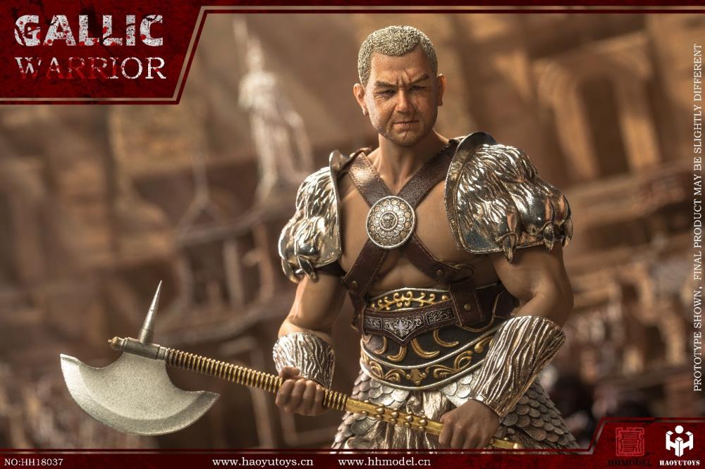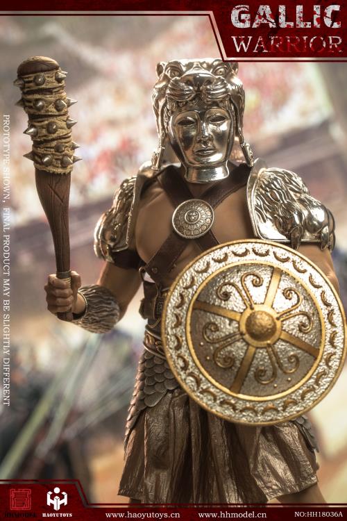 HHMODEL & HAOYUTOYS 1/6 Imperial Army Hunting Ground Fighter-Gaul Warrior (Silver version)(Product Code: HH18036A)Barcode:6974202930103configuration list: -1/6 simulation head sculpt -Movable encapsulated body (TBLM34) -6 replacement handsclothing: -Helmet (metal) -Armor (metal) -Belt - skirt -Group A (more than two hundred copper sheets stamped and hand-stitched) -Leg armor (metal) - shoeAccessories: -Round shield (metal) -Sword (metal) -Mace -Axe (metal) -Shield -Scene platform
