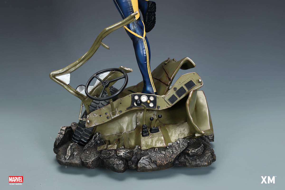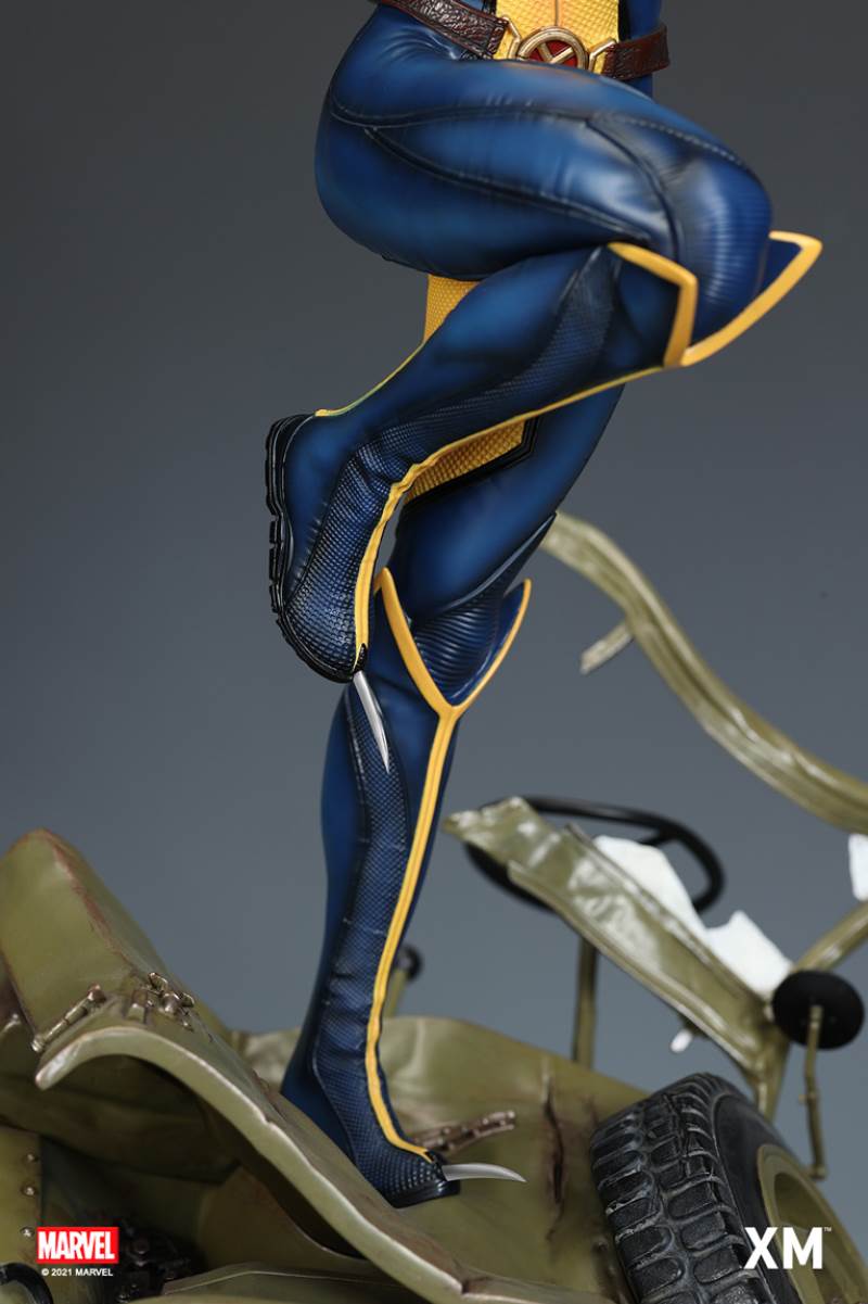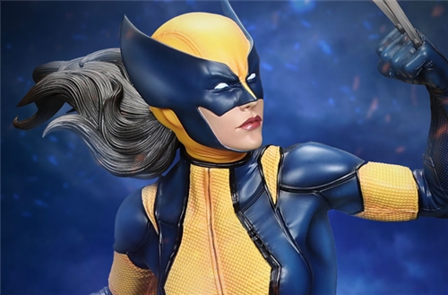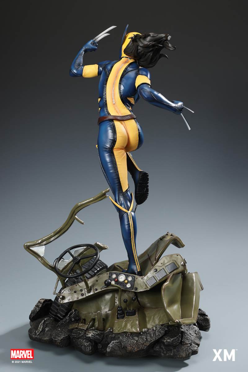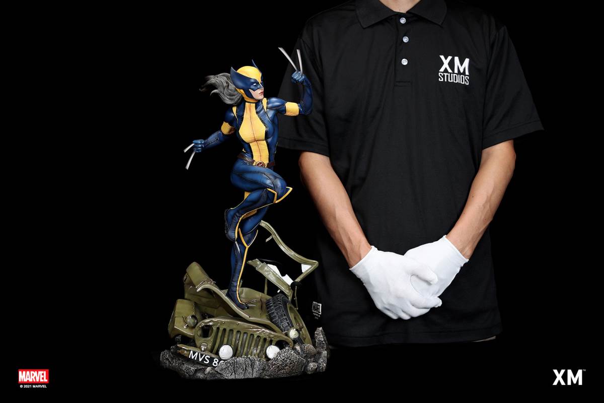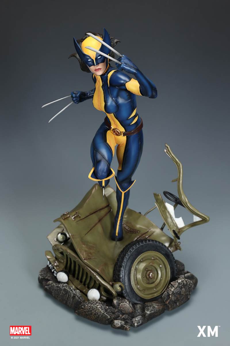 หนึ่งในตัวละคร X-Men ที่ได้รับความนิยมมากที่สุดในช่วงไม่กี่ปีที่ผ่านมา Laura Kinney หรือที่รู้จักในชื่อ X-23 หรือ Wolverine เป็นที่ชื่นชอบในหมู่แฟน X-Men เดิมทีคิดว่าเป็นโคลนที่สร้างขึ้นจาก DNA ของ Wolverine เธอถูกเปิดเผยในภายหลังว่าเป็นลูกสาวผู้ให้กำเนิดของ Wolverine ลอร่าได้รับการฝึกฝนมาอย่างดีและอันตรายถึงตายได้ สวมเสื้อคลุมของวูล์ฟเวอรีนได้สำเร็จ ของสะสมระดับพรีเมียมนี้ X-23 มองเห็นได้ด้วยกรงเล็บที่ยังไม่ได้ปลอก มั่นคง และแน่วแน่ พร้อมที่จะกระโดดจากรถจี๊ปที่บดแล้วเพื่อโค่นล้มใครก็ตามที่ขวางทางเธอ