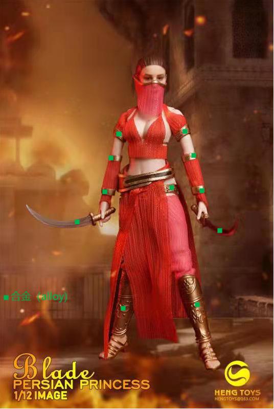 HENG TOYS 1/12 Persian PrincessNO: HG003accessoriesSemi-coated steel osteophyte X1head X1Alloy curved knife X2machetes X2The shape of the hand X4Alloy arm guard ring X6Alloy cuisse X2Alloy hip nail X1The belt X1The veil X1scarf X1coat X1The trousers X1Waist sealing X1stent X1