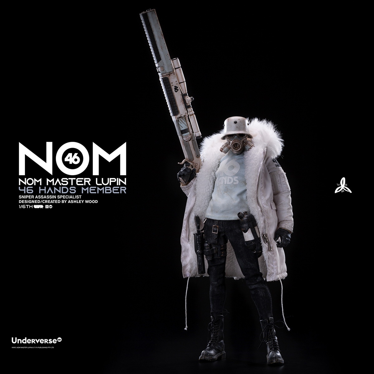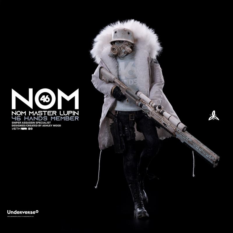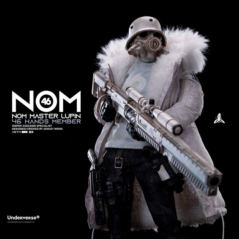WORLD WAR ROBOT 2 (World War Robot 2) Series1/6 Collectible Action Figure NOM Luping Jun MASTER LUPINPrice: RMB 1375Delivery Time: First Quarter of 2022Attributes:28 movable joints, avariety of replaceable hand typesZipper pull-style fur collar parka Lace-up faux leather bootsStylized distressed painting detailsUV patented bodyincluding:NOM head carving*112 joint movable UV body*1 bodyOZWALDS BRAIN SURGEON MK3 sniper rifle *1NEMIZA revolver with scope *1grenade*1pistol + grenade carrying case (including brown artificial leather buckle)*1 setGas tank*2gas tank carrying case (including brown artificial leather buckle)* 2 sets ofhand type (fist hand type, weapon hand type, natural hand type) *3 pairs ofartificial leather boots *1 pairOutdoor parka (lamb velvet lining + fur collar) *1jeans *1long-sleeved NOM shirt* 1 pieceMaterial:PVC, POM, ABS, fabricproduced by UnderverseDesign: Ashley Wood(C) 2021 UNDERVERSE LTD(C) 2021 7174 PTY LTD