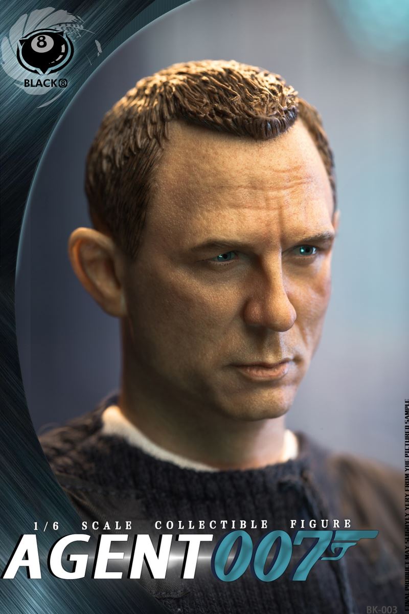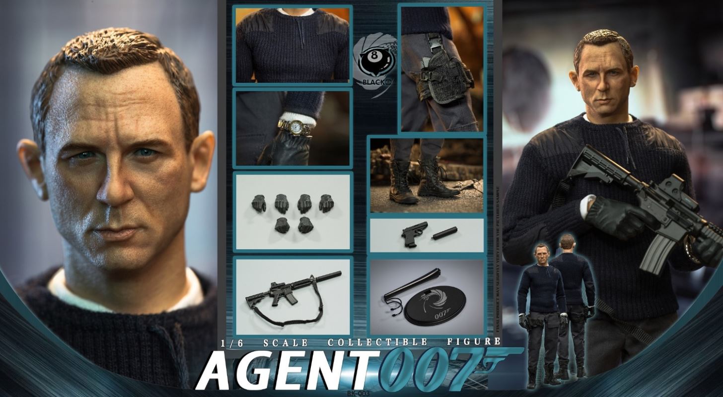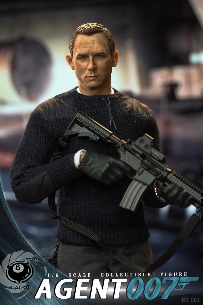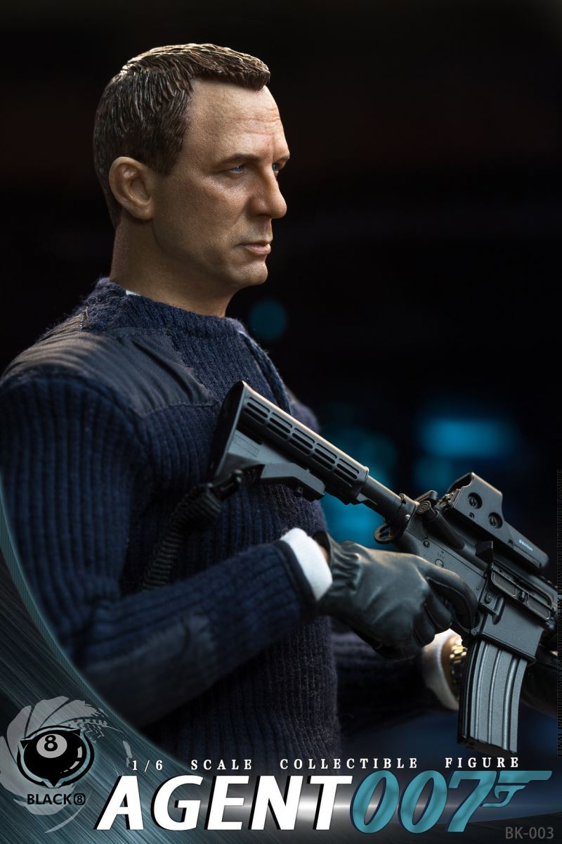 BLACK 8 STUDIO New Product: 1:6 collectible toy –Agent 007BLACK 8 STUDIO is proud to release a new product: 1:6 collectible toy – Agent 007.Product Specs:Name: Agent 007Product Number:BK-003Scale: 1/6Official price:780 RMBProduct List:Head sculpture *1Articulated body*1Glove hand type*6PPK * 1Muffler * 1Watch * 1M4A16*1Muffler * 1Exclusive platform*1Costume:White underwear *1Sweater coat *1Pants * 1Boots * 2Estimate release date 20222nd-3rd quarter(subject to the actual delivery time of the manufacturer.)