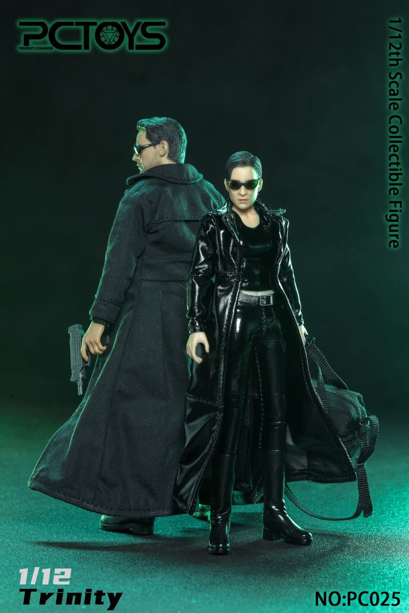 Product:PCTOYSName:Trinity Scale:1/12 No:PC025 Material:PVC/ABS/cloth Perorder is available before:November 25, 2021 Release date:Q1 2022 List:1. Head sculpture *12. Semi-seamless female body (CFTOYS) *13. Hand type *84. Uzi submachine gun *25. Pistol *26. Pistol case *27. Brown sunglasses *18. Black long leather jacket *19. Black short leather jacket *110. Black leather pants *111. Black vest *112. Belt *113. High leather boots *214. Weapon Pack *115. Bracket base (accessories can be stored) *1