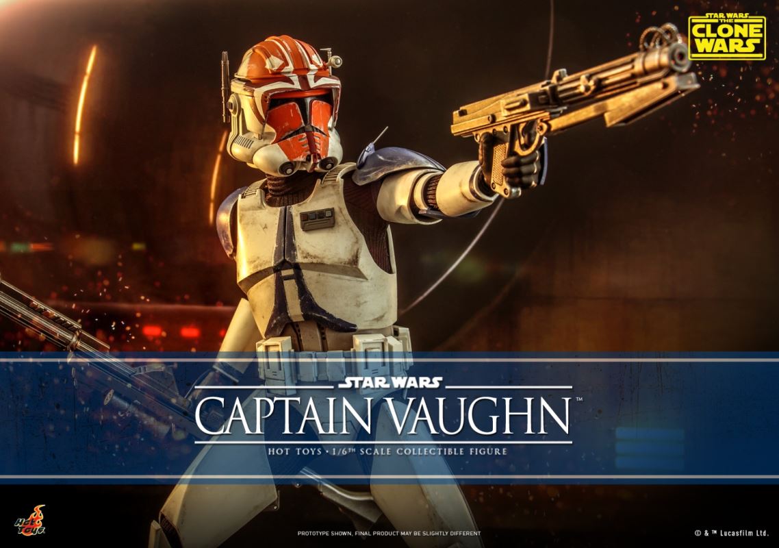 กัปตันวอห์น กัปตันร่างโคลนหมายเลข CT-0292 ช่วย Ahsoka Tano ในการจับกุมดาร์ธ มอล และปล่อยชาวแมนดาโลเรียนในฤดูกาลที่เจ็ดของ "Star Wars: The Clone Wars" ตามแบบจำลองแอนิเมชั่นของกัปตันวอห์น Hot Toys ได้ผลิตตัวสะสม Captain Vaughn 1:6 อย่างระมัดระวังด้วยความสูงประมาณ 30 ซม. และตัวข้อต่อมากกว่า 30 ตัว ด้วยเทคโนโลยีการผลิตระดับแนวหน้าของทีมและวัสดุที่ลดทอนประสิทธิภาพที่สุด I. กัปตันวอห์นสวมหมวกสีขาวและสีน้ำเงินและชุดเกราะต่อสู้ และสีเก่าที่แข็งแกร่งก็ถูกสแกนอย่างประณีต ในเวลาเดียวกันตามรูปร่างของตัวละครรายละเอียดของเกราะทั้งหมดได้รับการฟื้นฟู ได้แก่ : ตกแต่งด้วย Ahsoka Tano หมวกกันน็อคลายหน้าสีส้มคล้าย ๆ กัน, เจ็ตแพ็คที่มีแม่เหล็กอยู่ด้านหลัง, เสาอากาศสื่อสารที่ไหล่, และอุปกรณ์คาดเอว เป็นต้น นอกจากตุ๊กตาแล้ว ยังมาพร้อมกับเครื่องฉายภาพโฮโลแกรมเลียนแบบ รูปปั้นภาพโฮโลแกรมของกัปตันเร็กซ์และอาโซกา ทาโน ปืนไรเฟิลเลเซอร์ หอกเลเซอร์ ฝ่ามือรูปทรงหลายคู่และ แพลตฟอร์มตุ๊กตา