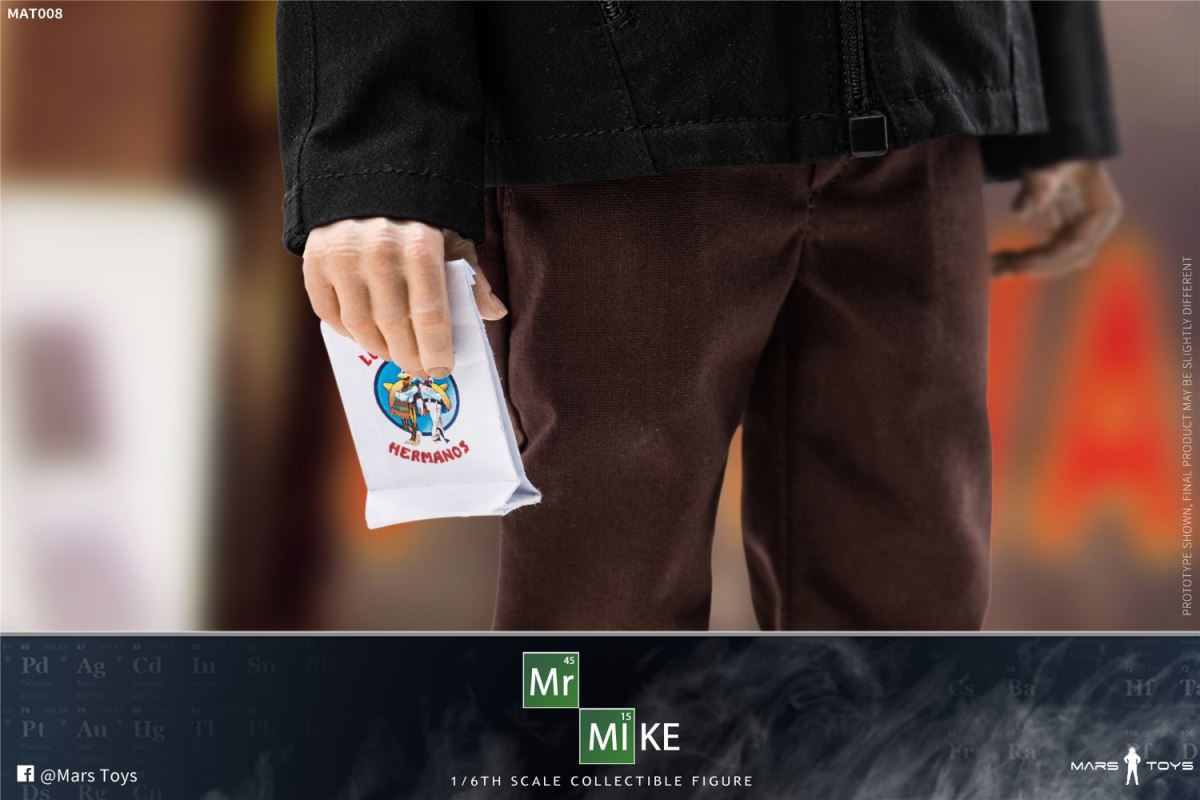 เครื่องประดับที่ยังคงสะสมในสเกล 1/6 ของซีรีส์ "Beyond Sin" ได้แก่ อันหนึ่งมีพลั่วเอฟเฟกต์ล้าสมัย ปืนพกลูกโม่และกระสุนลูกโม่ 6 นัด ปืนพกพร้อมเครื่องเก็บเสียง มีข้อความว่า "อย่า" มัน ถุงกระดาษพิมพ์ "LOS POLLOS HERMANOS" ผงสีน้ำเงินห้าซอง เงินห้ากอง มัน