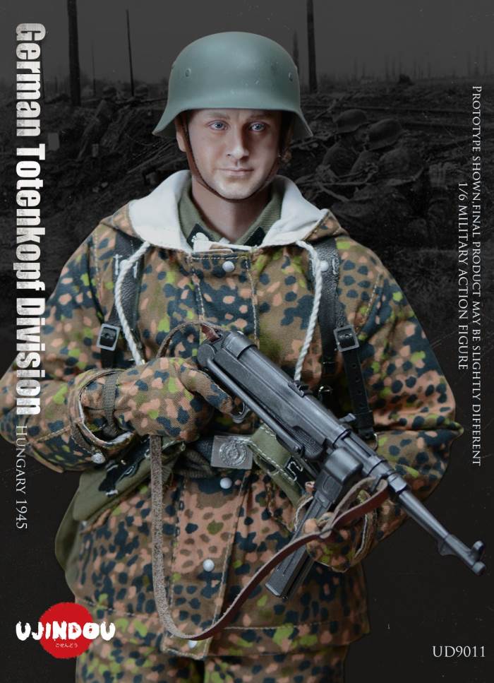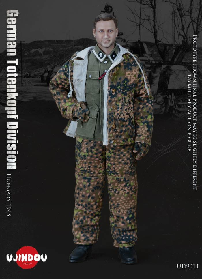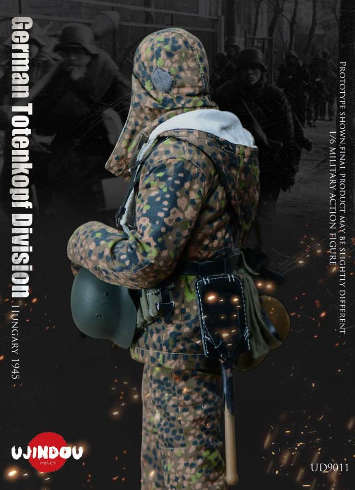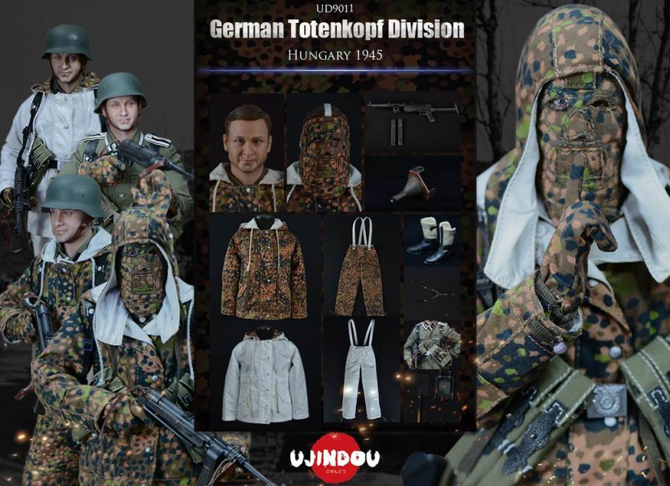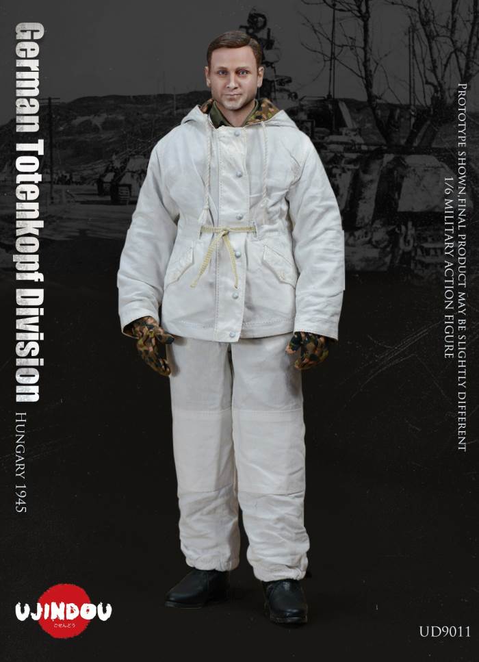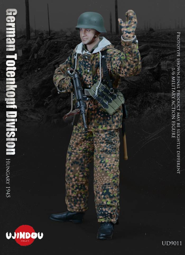 Imperial Germany in World War II Battle Road UJINDOU 1/6 Totenkopf Hungary 1945 action figureUJINDOU 1/6 WW2 German Totenkopf Division Hungary 1945 Action FigurePRODUCT ITEM NO.:UD9011the SET INCLUDES:clothing COSTUME:1. 1X helmet Helmet2. 1X peas camouflage Pea dot camouflage Winter Hood3. 1X Pea dot camouflage reversible parka4. 1X Pea dot camouflage reversible overtrousers5. 1X Non-commissioned officer M43 field uniform NCO M43 field blouse6. 1X Pea camouflage Pea dot camouflage face shield7. 1 PAIR pea camouflage gloves Pea dot camouflage tiger mittens8. 1 PAIR winter felt hat boots (leather) Felt winter marching bootssimulation head sculpture NEW BOND HEAD SCULPTURE Finebody with palm/foot BODY W/ RELAXED HANDSpalm PALMS:1. 1PAIR GUN HOLDING HANDSequipment ACCESSORIES:1. Y-belt (leather) Y-straps2. Belt (leather) Equipment Belt3. Bread Bag4. M31 Water Bottle5. MP40 Ammunition Pouch6. Straight-handled engineer shovel (leather) Straight- Handle Entrenching ToolWEAPONS:1. MP40/I: Dual-magazine MP40 submachine gun MP40/I: The Dual-Magazine Experimental MP402. Magnetic hollow charge anti-tank bomb HHL AT Grenade