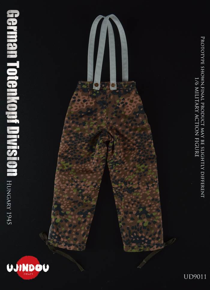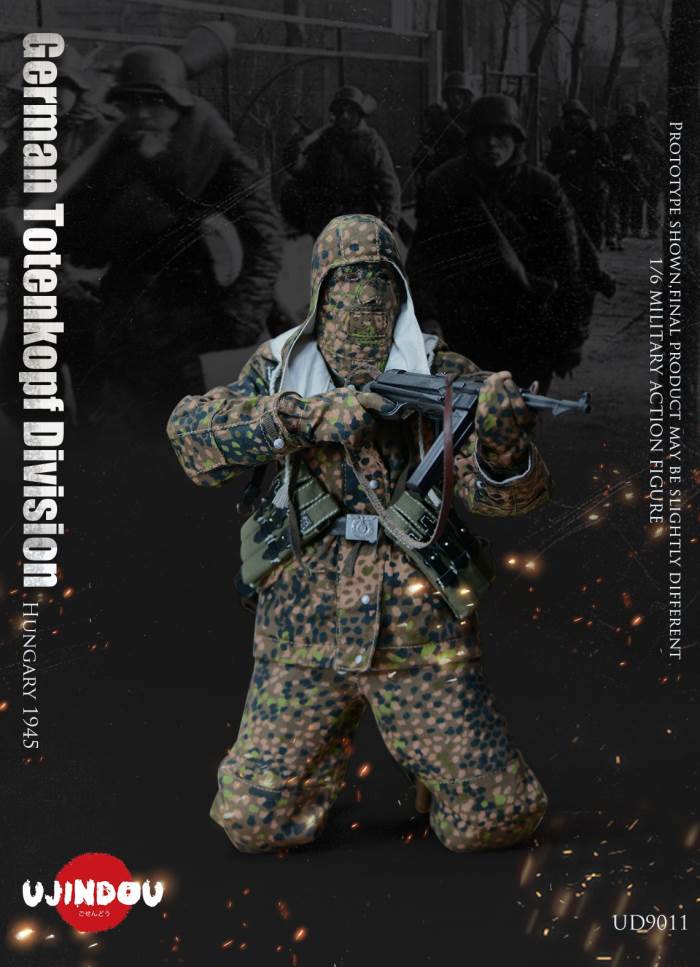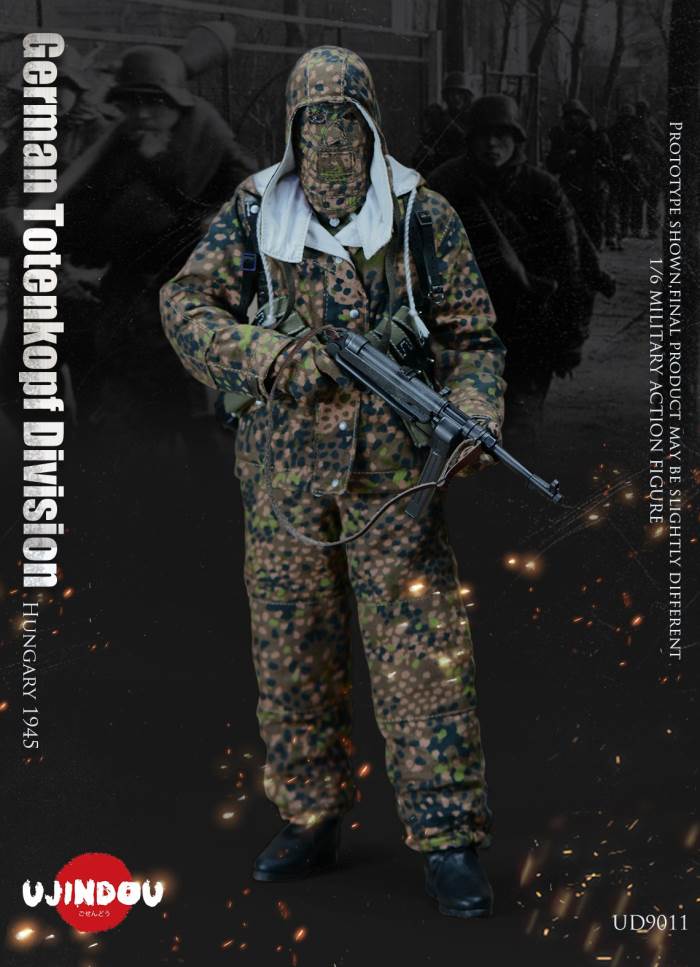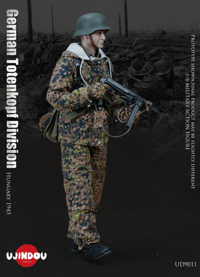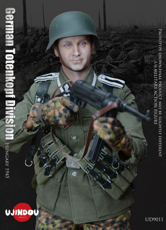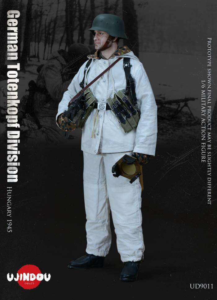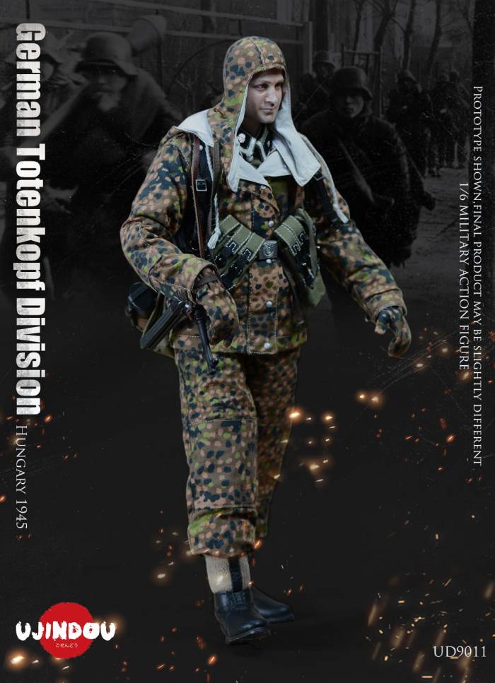 Imperial Germany in World War II Battle Road UJINDOU 1/6 Totenkopf Hungary 1945 action figureUJINDOU 1/6 WW2 German Totenkopf Division Hungary 1945 Action FigurePRODUCT ITEM NO.:UD9011the SET INCLUDES:clothing COSTUME:1. 1X helmet Helmet2. 1X peas camouflage Pea dot camouflage Winter Hood3. 1X Pea dot camouflage reversible parka4. 1X Pea dot camouflage reversible overtrousers5. 1X Non-commissioned officer M43 field uniform NCO M43 field blouse6. 1X Pea camouflage Pea dot camouflage face shield7. 1 PAIR pea camouflage gloves Pea dot camouflage tiger mittens8. 1 PAIR winter felt hat boots (leather) Felt winter marching bootssimulation head sculpture NEW BOND HEAD SCULPTURE Finebody with palm/foot BODY W/ RELAXED HANDSpalm PALMS:1. 1PAIR GUN HOLDING HANDSequipment ACCESSORIES:1. Y-belt (leather) Y-straps2. Belt (leather) Equipment Belt3. Bread Bag4. M31 Water Bottle5. MP40 Ammunition Pouch6. Straight-handled engineer shovel (leather) Straight- Handle Entrenching ToolWEAPONS:1. MP40/I: Dual-magazine MP40 submachine gun MP40/I: The Dual-Magazine Experimental MP402. Magnetic hollow charge anti-tank bomb HHL AT Grenade