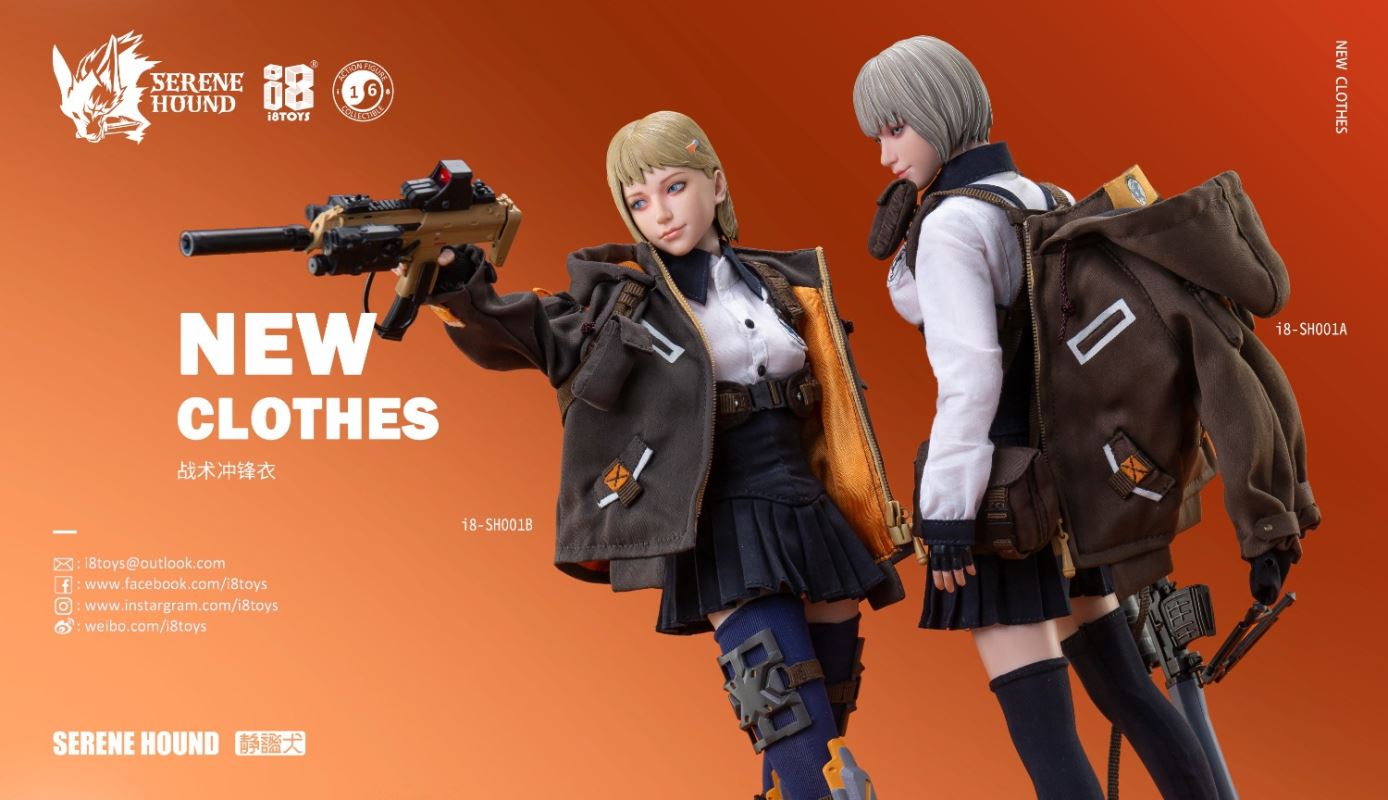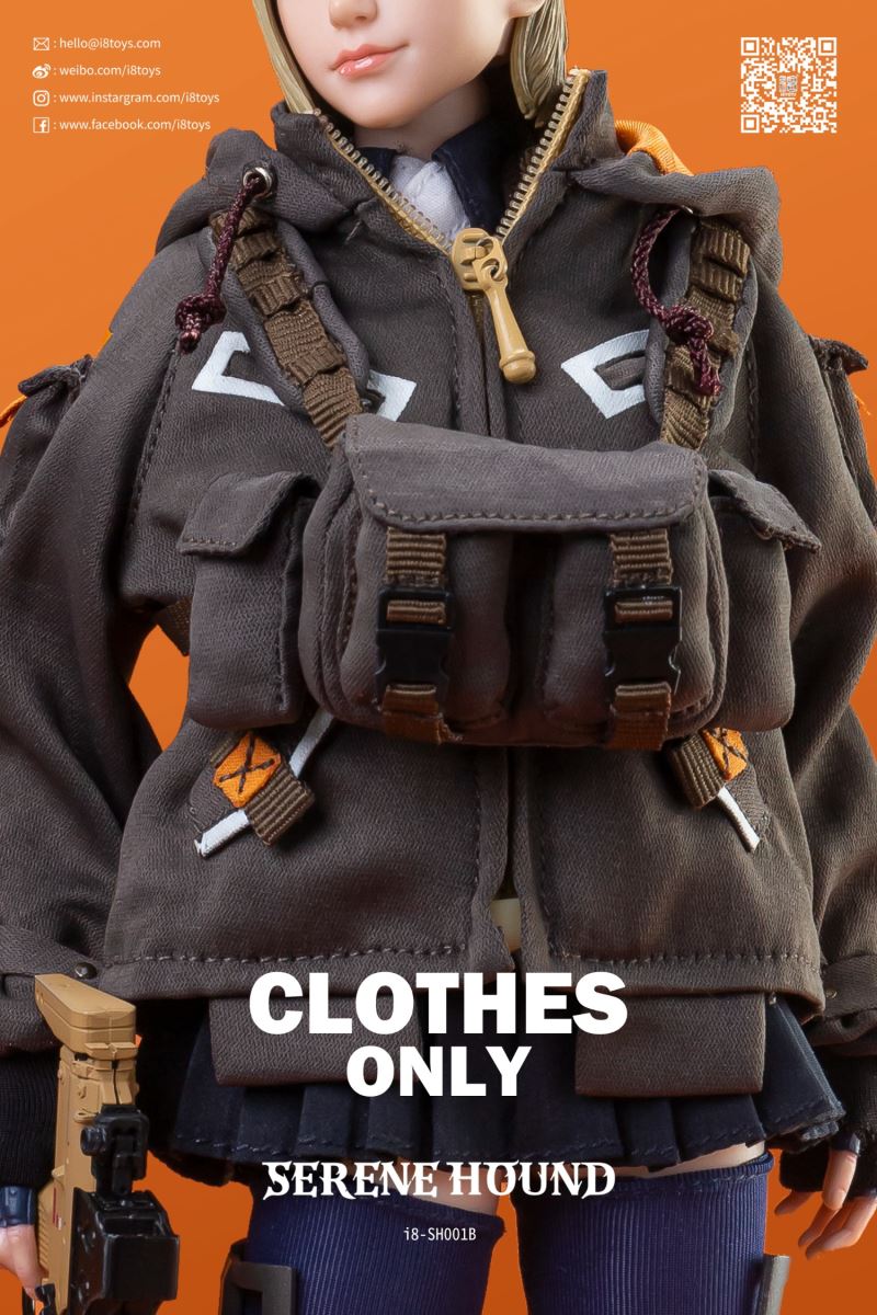 i8TOYS 1/6 Serene Hound Troop Loose parts-Combat Jacketi8TOYS 1/6 Quiet Dog Wardrobe---- Tactical JacketProduct Include product details :I8-SH001A· Brown Green combat hooded Jacket with black lining (the color similar as Katherine overcoat)· Combat Belt· Bag*1pc bag*1pc· Small bags*2pcs small bags*2pcsI8-SH001B· Steel Gray combat hooded Jacket with yellow lining· Combat Belt· Bag*1pc bag*1pc· Small bags*2pcs small bags*2pcs