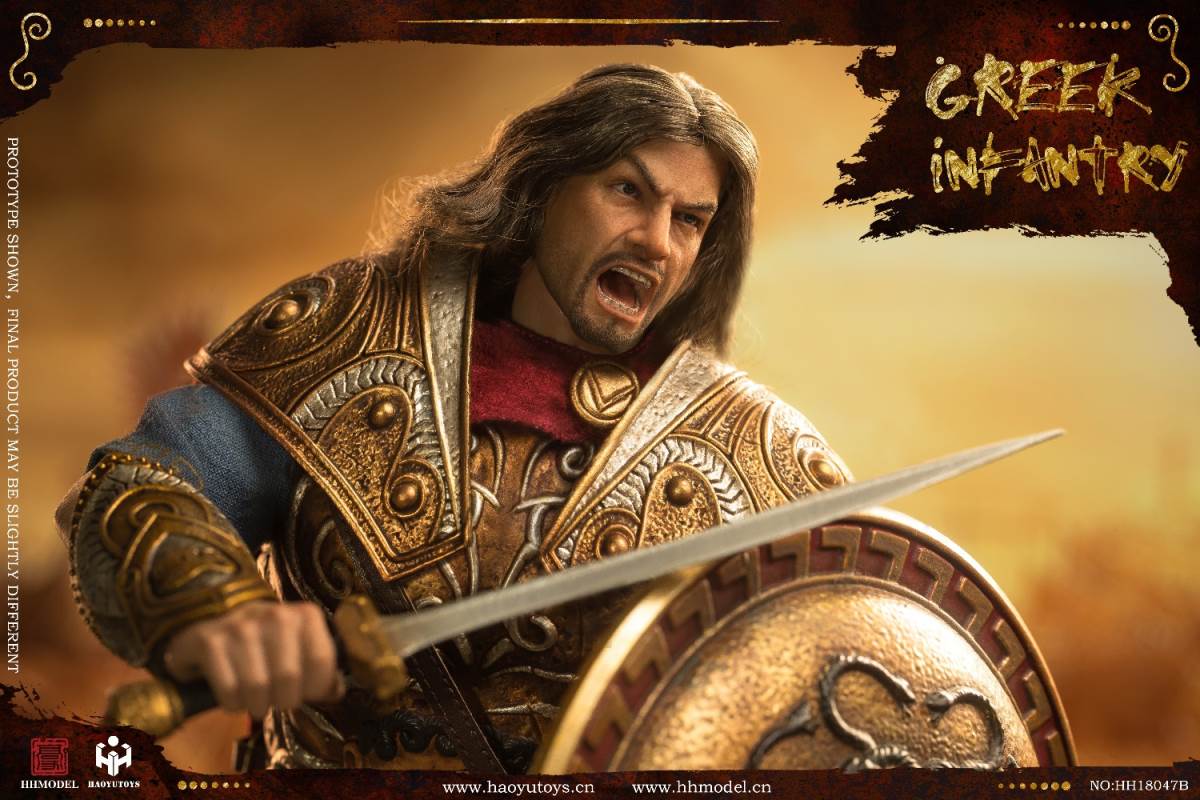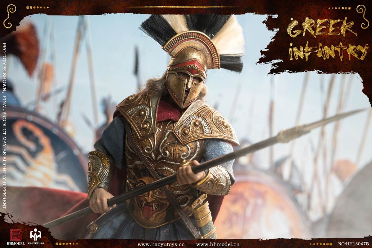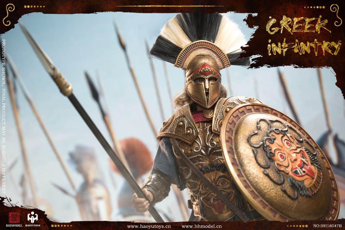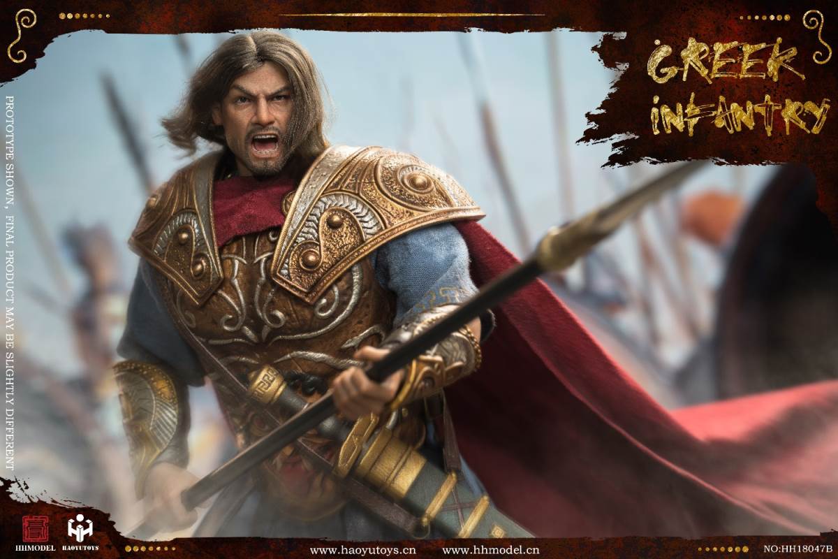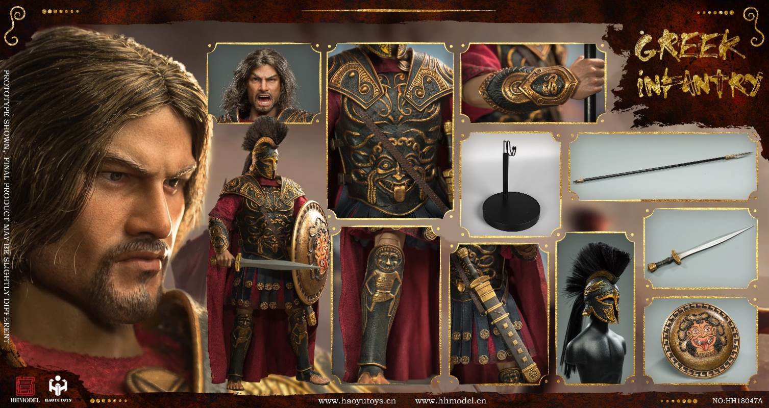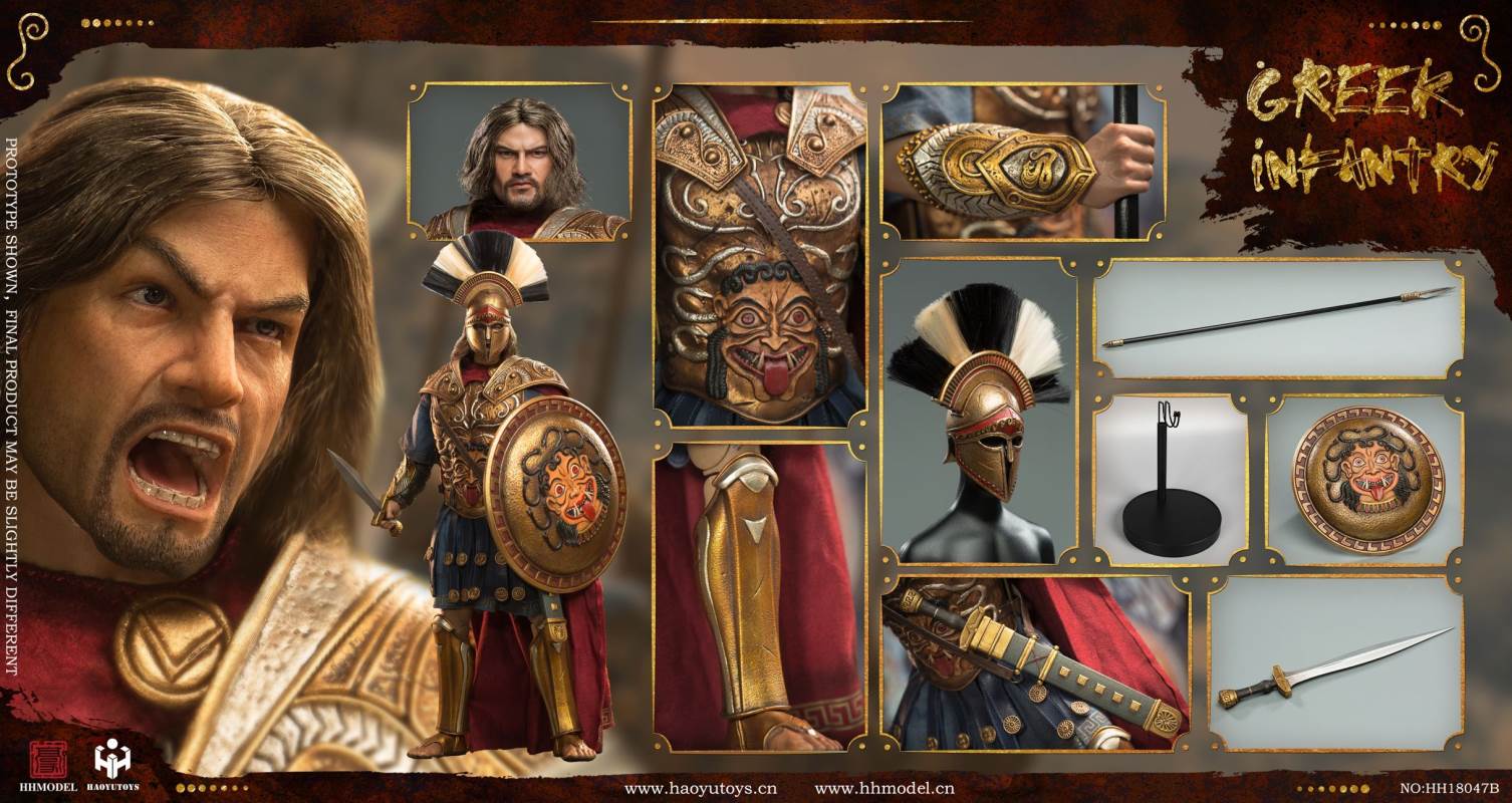 HHMODEL & HAOYUTOYS : 1/6 Imperial Army-Greek Infantry Gold EditionBarcode:6974202930257NO.HH18047Aconfiguration list: -1/6 simulation head sculpt*2 -New movable body -8 replacement handsclothing: - Jacket - Pants -Cloak -Helmet (metal) -Armor (metal) -Greaves (metal) - shoeAccessories: -Long sword (metal) -Spear (metal) -Shield -Floor================HHMODEL & HAOYUTOYS t: 1/6 Imperial Army-Greek Infantry Gold EditionBarcode:6974202930257NO.HH18047Bconfiguration list: -1/6 simulation head sculpt*2 -New movable body -8 replacement handsclothing: - Jacket - Pants -Cloak -Helmet (metal) -Armor (metal) -Greaves (metal) - shoeAccessories: -Long sword (metal) -Spear (metal) -Shield -Floor
