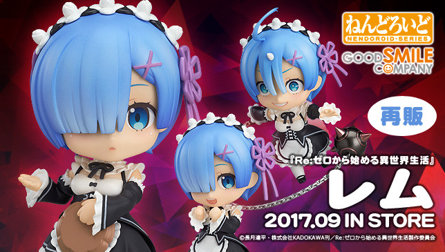 “Re:Zero kara Hajimeru Isekai Seikatsu” Rem Nendoroid by Good Smile Company up for preorder (rerelease) March 24, 2017 (Friday) 4:41 am Good Smile Company No Commentsadvertisement - advertise with usGood Smile Company has officially opened pre-orders for the second time for their “Re:Zero kara Hajimeru Isekai Seikatsu” Rem Nendoroid, which is sculpted by toytec D.T.C and Nendoron, is listed for ¥4,444 (before tax), and is scheduled for release in September 2017.