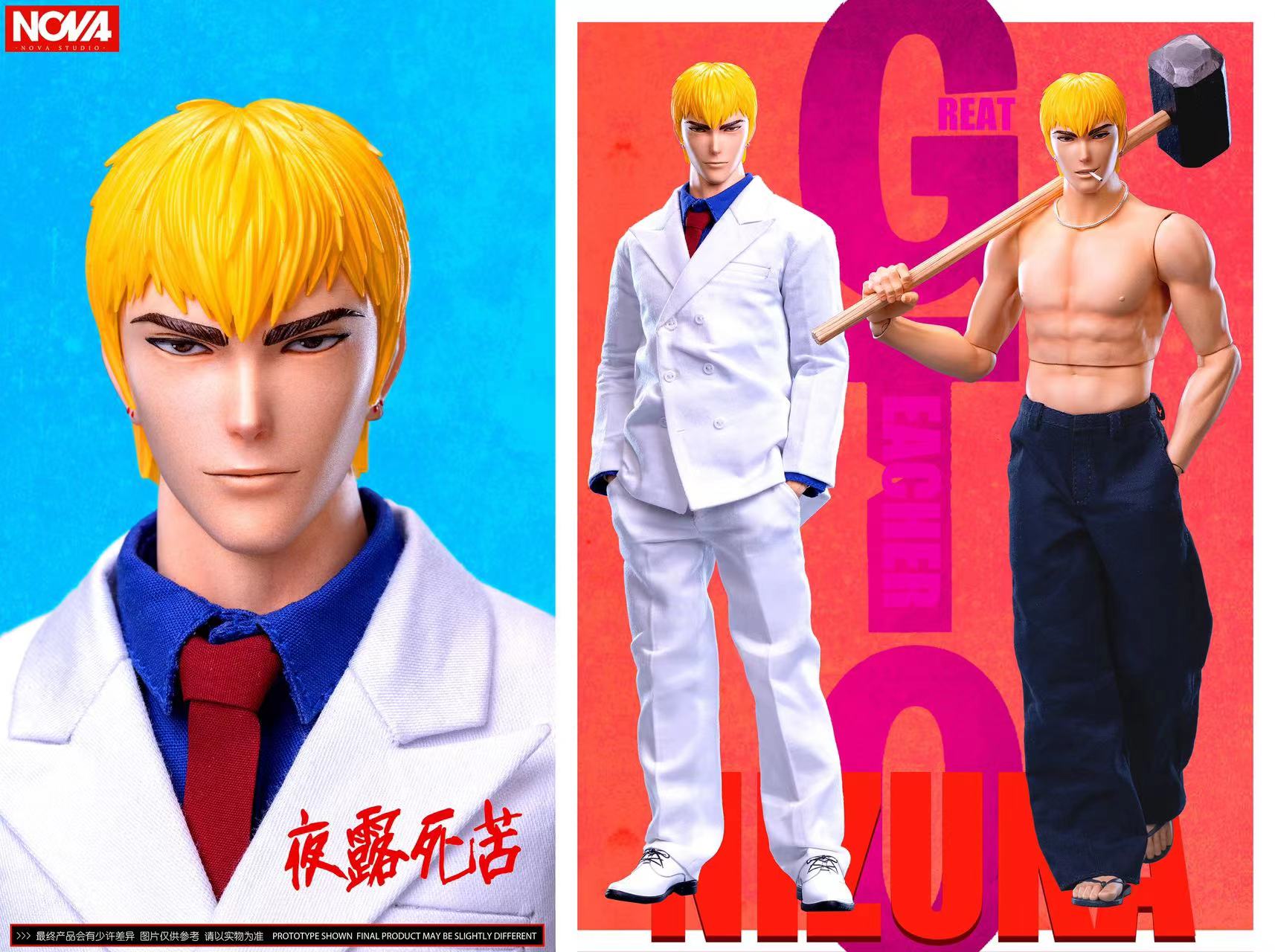 Studio Name: NOVA StudioItem Name: Eikichi OnizukaItem Material: ABS + PVCSeries: GTO - Great Teacher Onizuka Est. Product Size: cm ( L ) x cm ( D ) x cm ( H )Est. Shipping Weight: TBALED: NoExpected Released Date: Q2 2022Est. Arrival Date: Q3 2022Limited Edition: TBALast Pre-Order Date: 4 Jan 2022