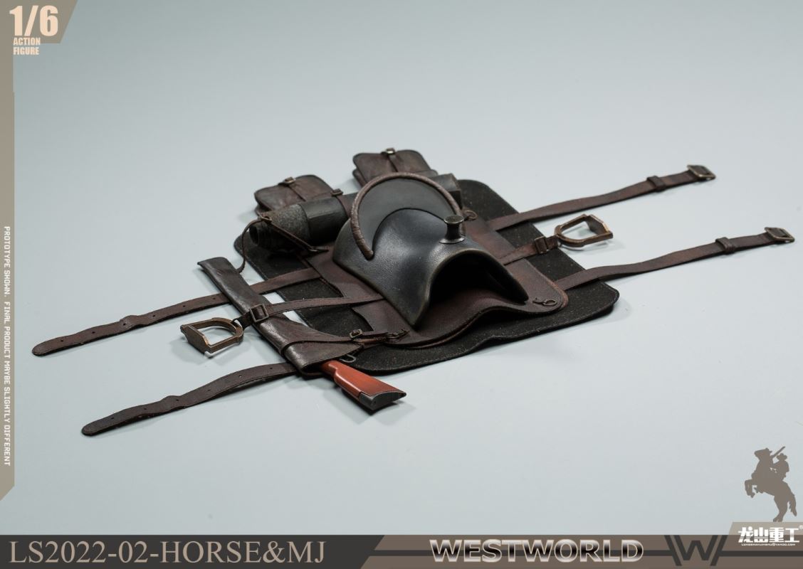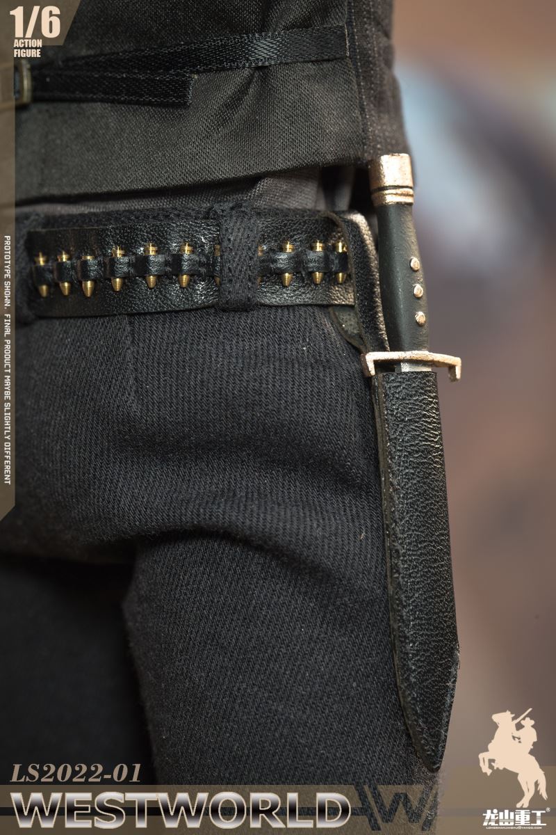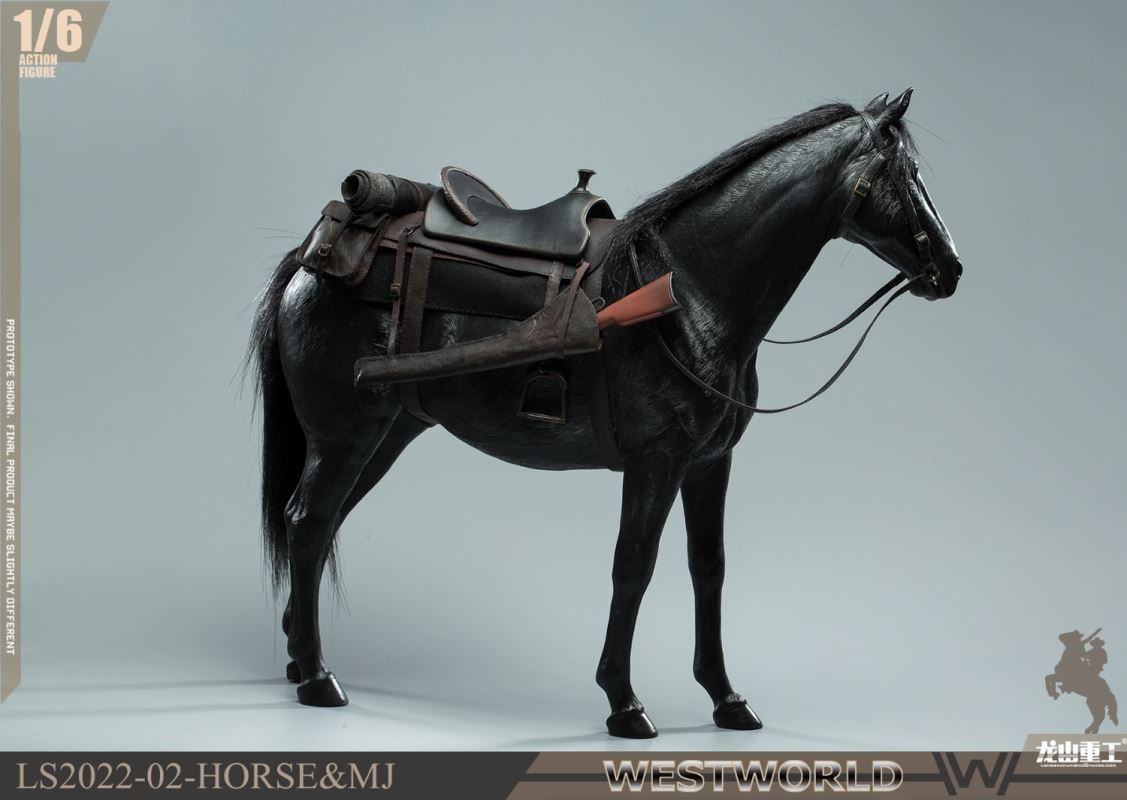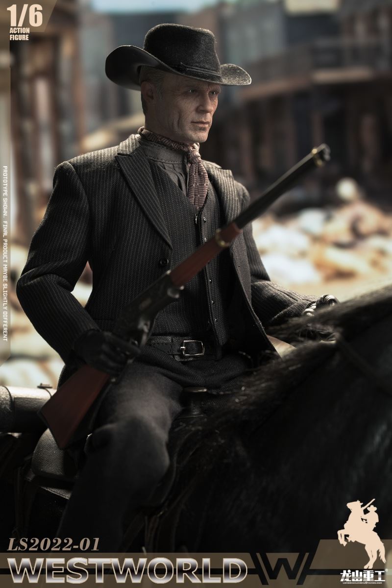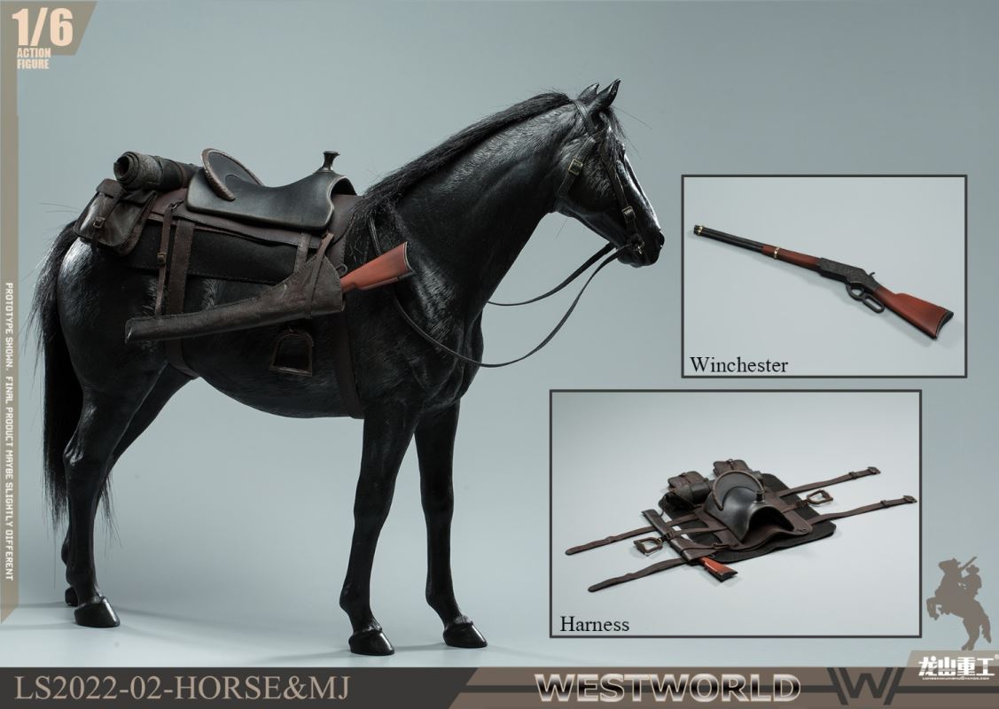 Long San heavy industries LS2022-01A 1/6 soldier, Western Paradise, man in blackNo: LS2022-01AProduct List:Head carving x 1voxel x 1suit x 1pants x 1vest x 1shirt x 1scarf x 1leather belt x 1leather revolver holster x 1leather dagger holster x 1Cowboy Hat x 1Leather Shoes (PVC) x 1hand type X 6revolver x 1Bullet (brass) X16dagger x 1bracket x 1==================Long San heavy industries LS2022-01B 1/6 soldier, Western Paradise, man in black, harness setNo: LS2022-01BProduct List:Black War horse x 1Saddle horse x 1saddle cloth x 1saddle Leather (leather) x 1saddle bag (leather) x 2saddle leather (leather)blanket x 1blanket blanket (leather) x 1blanket leather (leather)stirrup x 2Winchester Holster (leather) x 1winchester rifle (alloy) x 1