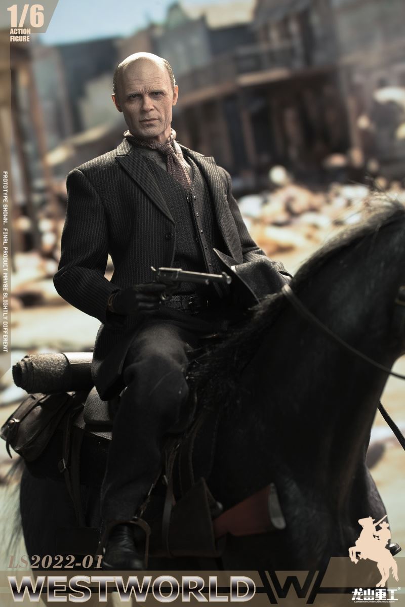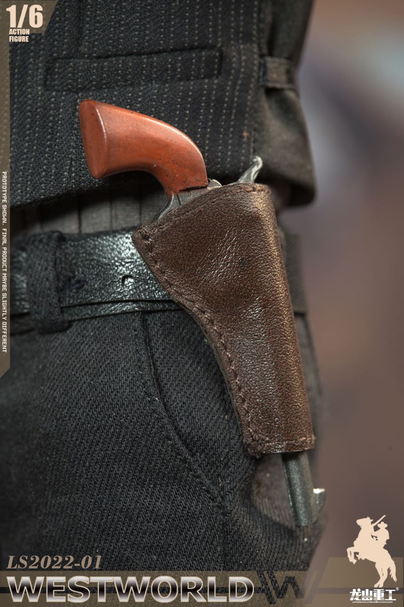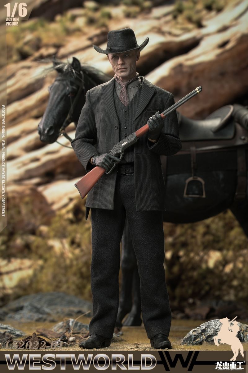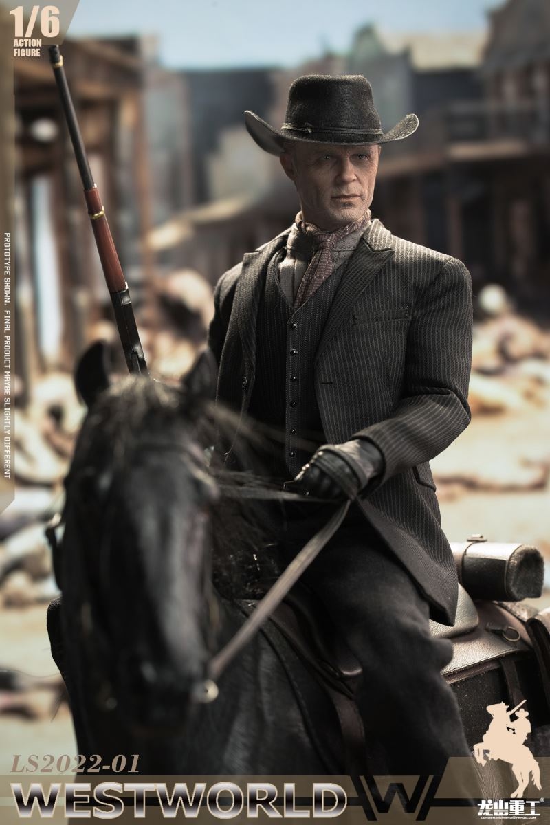 Long San heavy industries LS2022-01A 1/6 soldier, Western Paradise, man in blackNo: LS2022-01AProduct List:Head carving x 1voxel x 1suit x 1pants x 1vest x 1shirt x 1scarf x 1leather belt x 1leather revolver holster x 1leather dagger holster x 1Cowboy Hat x 1Leather Shoes (PVC) x 1hand type X 6revolver x 1Bullet (brass) X16dagger x 1bracket x 1==================Long San heavy industries LS2022-01B 1/6 soldier, Western Paradise, man in black, harness setNo: LS2022-01BProduct List:Black War horse x 1Saddle horse x 1saddle cloth x 1saddle Leather (leather) x 1saddle bag (leather) x 2saddle leather (leather)blanket x 1blanket blanket (leather) x 1blanket leather (leather)stirrup x 2Winchester Holster (leather) x 1winchester rifle (alloy) x 1