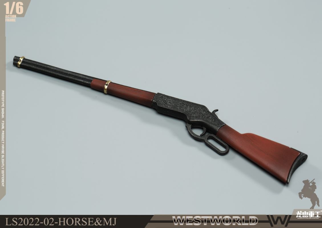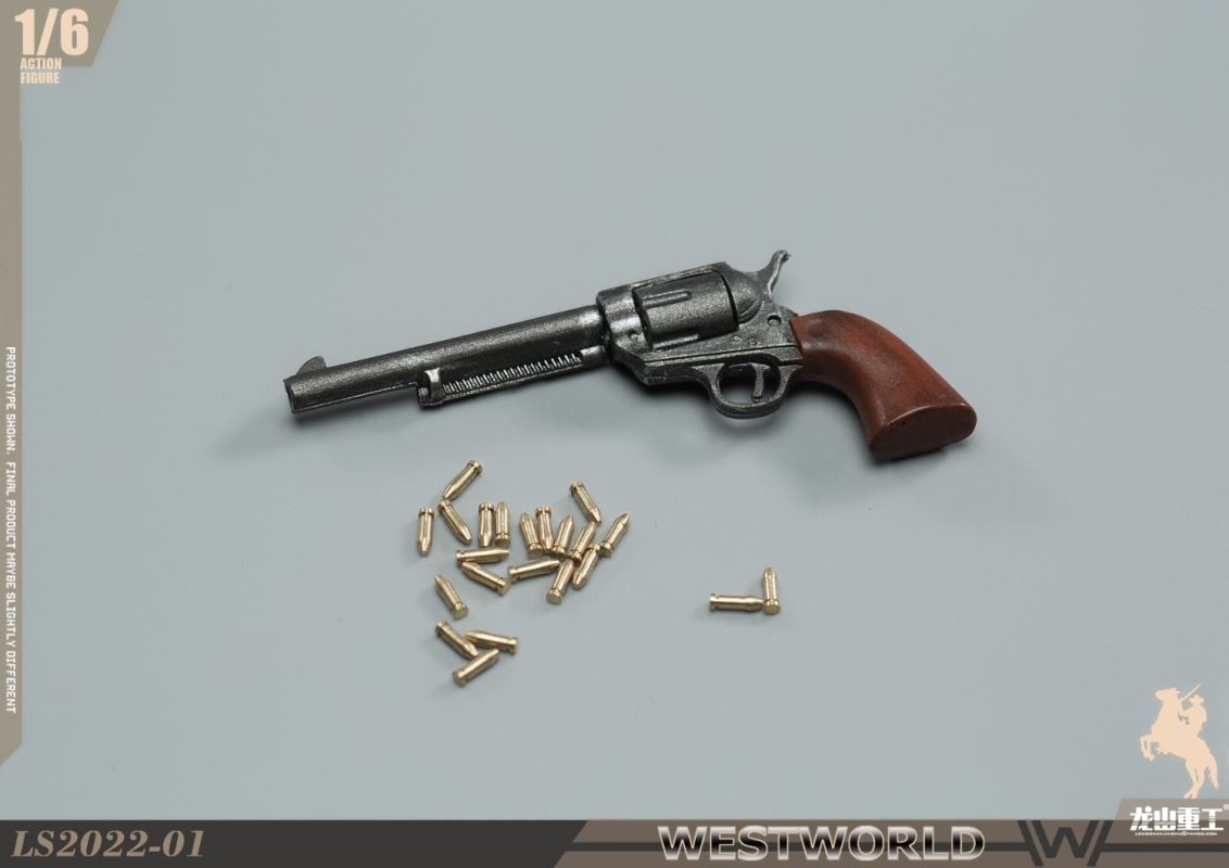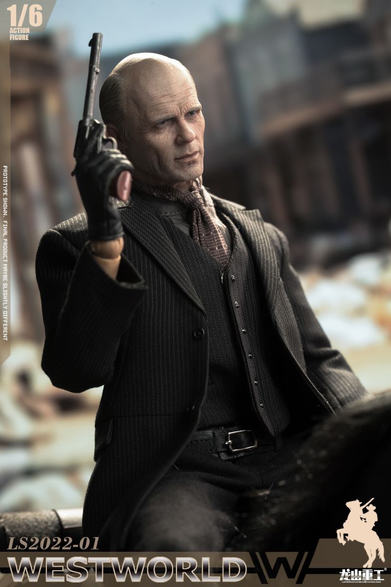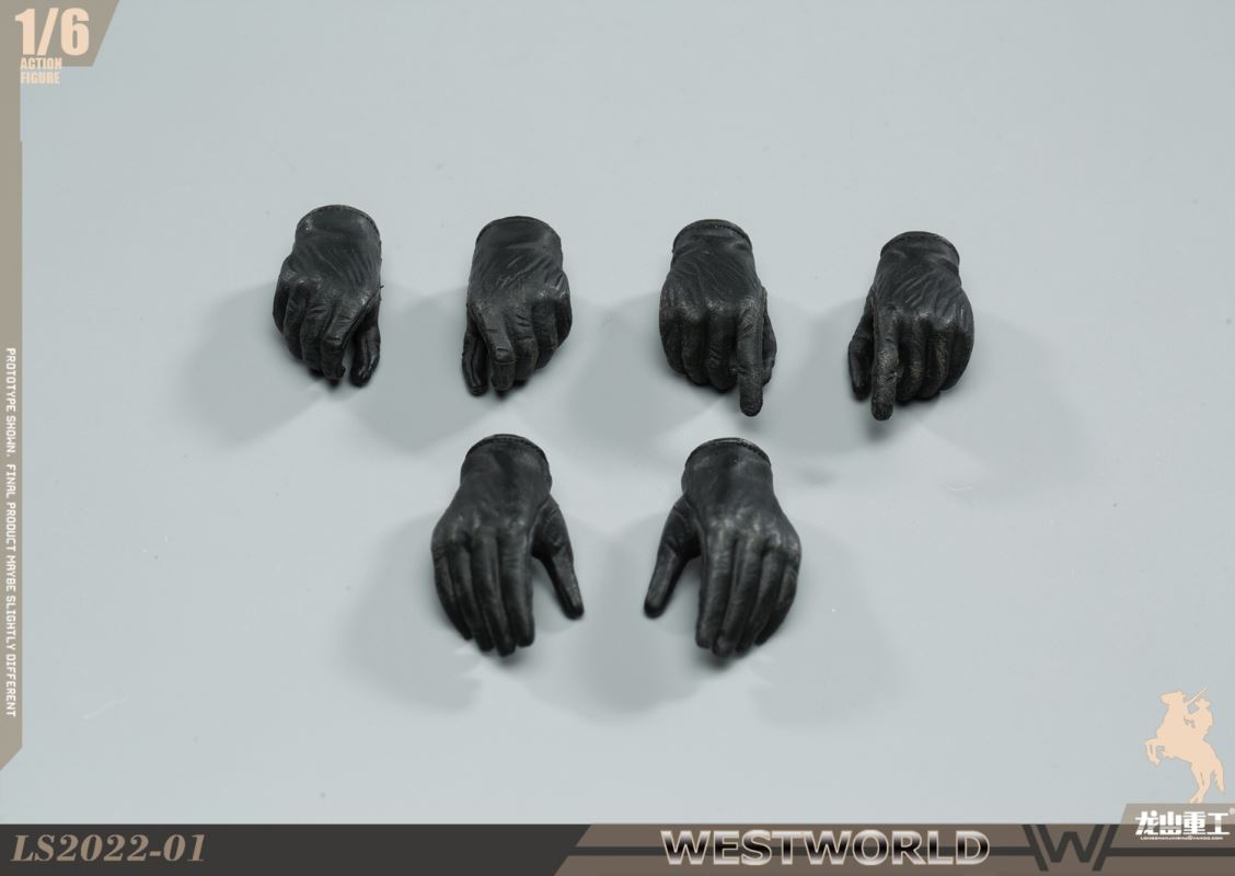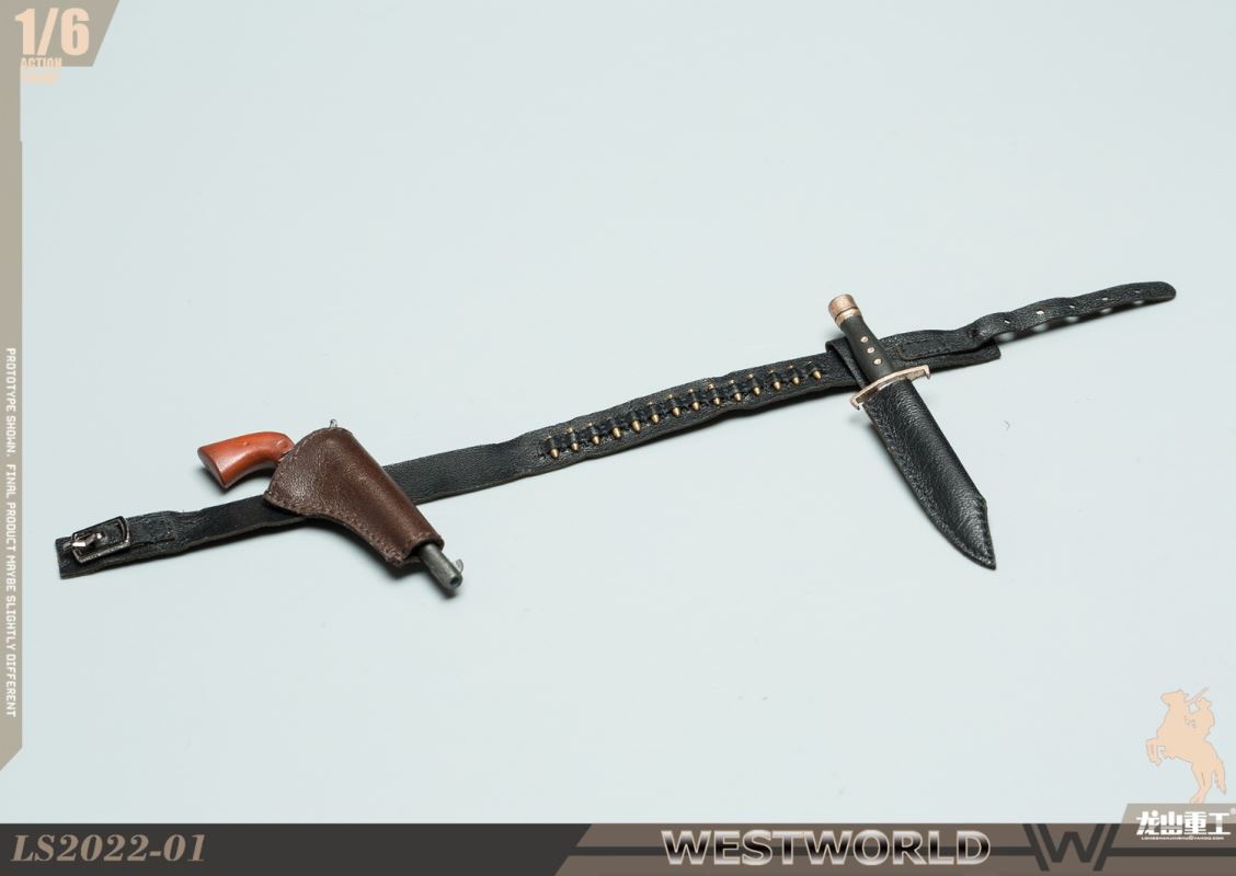 Long San heavy industries LS2022-01A 1/6 soldier, Western Paradise, man in blackNo: LS2022-01AProduct List:Head carving x 1voxel x 1suit x 1pants x 1vest x 1shirt x 1scarf x 1leather belt x 1leather revolver holster x 1leather dagger holster x 1Cowboy Hat x 1Leather Shoes (PVC) x 1hand type X 6revolver x 1Bullet (brass) X16dagger x 1bracket x 1==================Long San heavy industries LS2022-01B 1/6 soldier, Western Paradise, man in black, harness setNo: LS2022-01BProduct List:Black War horse x 1Saddle horse x 1saddle cloth x 1saddle Leather (leather) x 1saddle bag (leather) x 2saddle leather (leather)blanket x 1blanket blanket (leather) x 1blanket leather (leather)stirrup x 2Winchester Holster (leather) x 1winchester rifle (alloy) x 1