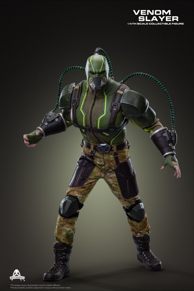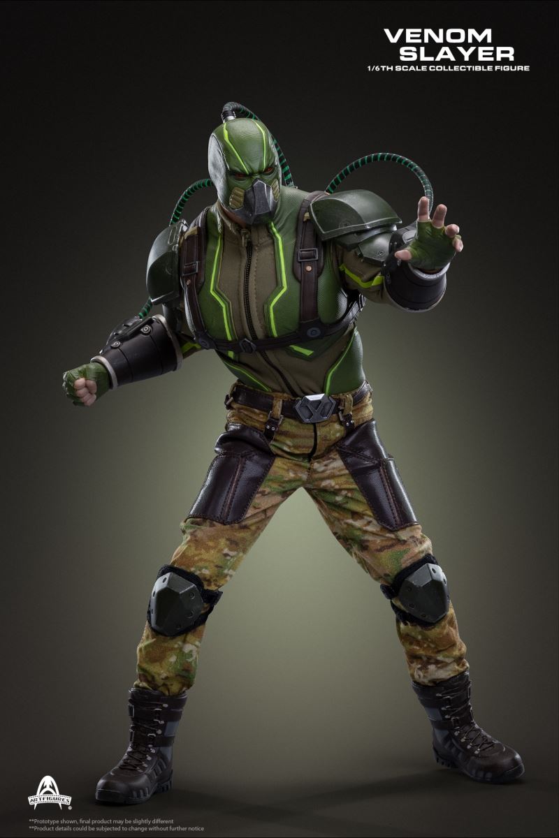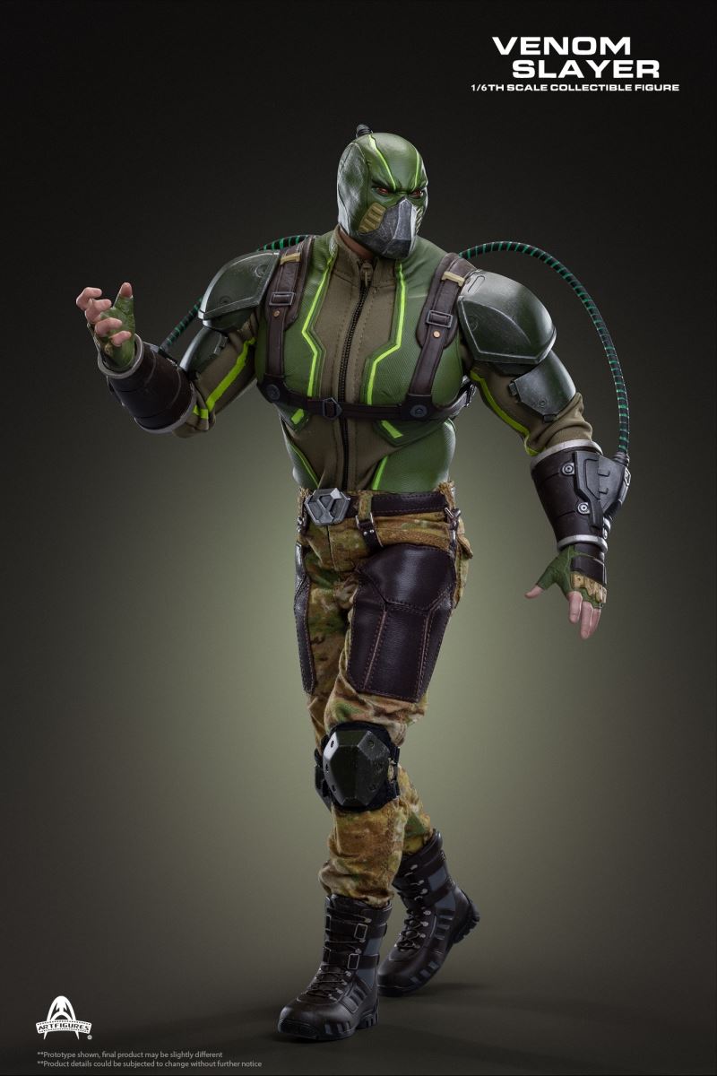Product Name: Venom KillerProduct Code: AF-028Product scale: 1/6 scaleProduct Status: For ordering1:6 Scale Venom Slayer Collectible Figure Features:1. Elaborately create a new head sculpt to fully reflect the character's facial contours and in-game modeling2. The newly designed character is an unusually strong body3. The doll is about 34cm high4. Up to 30 new movable joint bodies5. 4 pairs of replaceable palms include:a pair of fistsA pair of grab handlespair of open palmsA pair of relaxed palmsClothing style:1. A set of armor tops specially crafted with army green livery and characteristic patterns2. A pair of army green shoulder armor with aging effect3. A set of brown tactical shoulder straps with aged effect4. A pair of Mc camouflage military pants and belt with aging effect5. A pair of army green knee armor with aging effect6. A pair of brown tactical boots with weathered effectsarms:1. A pair of forearm reinforcements2. Venom Storage Backpack with Supply TubeAccessories:1. A set of exclusive character basesRelease Date: Around March 2021**The picture shown is only the prototype of the product, there may be a little difference from the final product **Product details are subject to change without notice2022 Art Figures Ltd. all rights reserved.