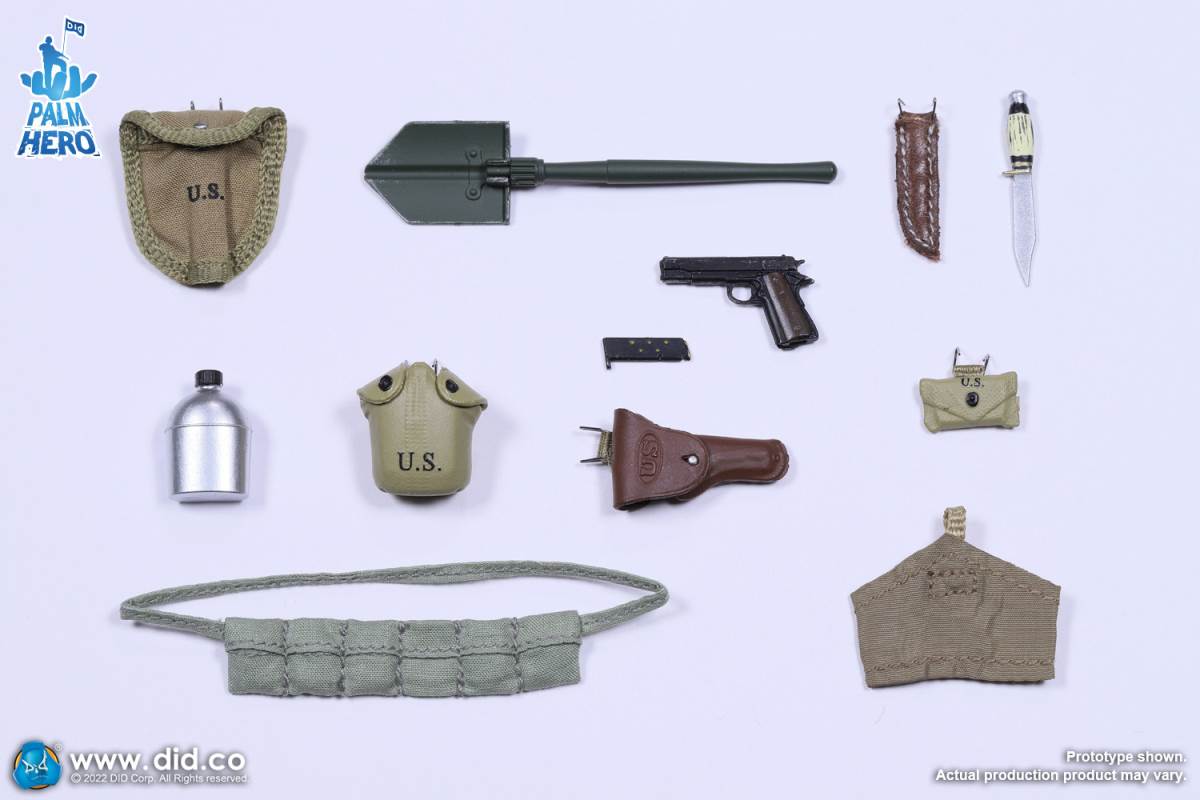 XA80009 Accessories List Basic1 Head Carving2 Body3 Palm X4 Pair of Clothing4 MI Helmet + Inner Support5 Green Round Neck T- Shirt6M41 Jacket7HBT Combat Uniform8HBT Combat Pants9Assault Vest10 GasDetection Sleeve11Belt12Leggings13 Bootsaccessories14 M1942 first aid kit15 Water bottle + water bottle cover16 M1943 shovel + shovel cover (can be opened)17 Six-space bullet bag18 Ten-space bullet bag19 Sniper scope X 2 + sniper barrel weapon20 M1903A4 sniper rifle21 Dagger + Dagger Set22 M1911 Pistol + Pistol Holster Badge23 WWII Ranger Armband X124 World War II US Army Private Armband X2