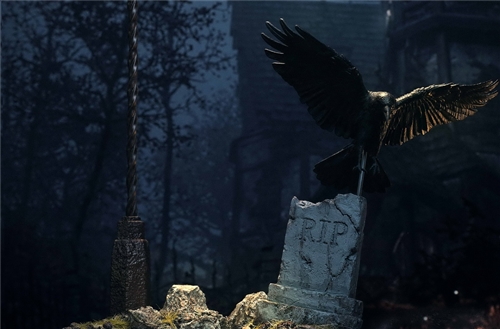 Diorama display base with crow, gravestone, and lamp w/ light-up function (SA0113)