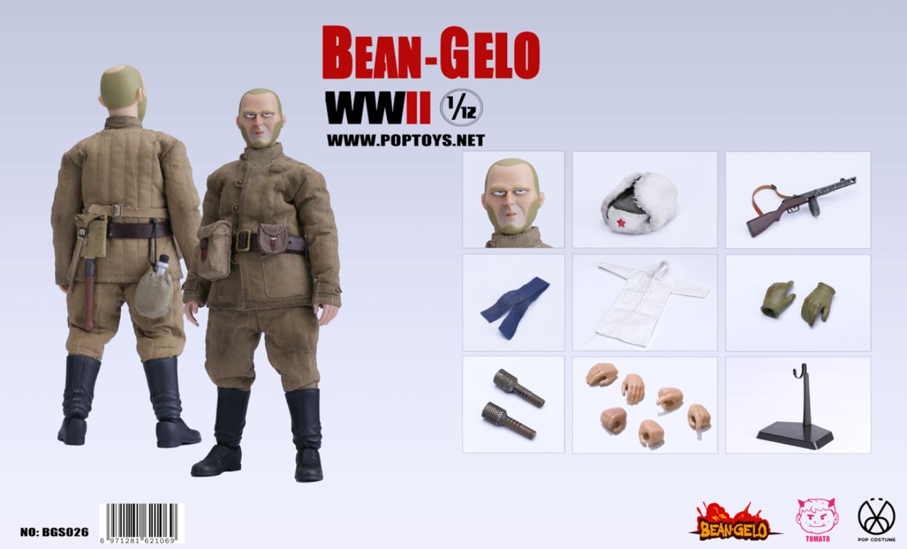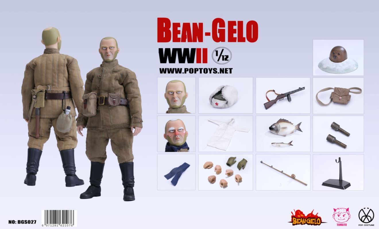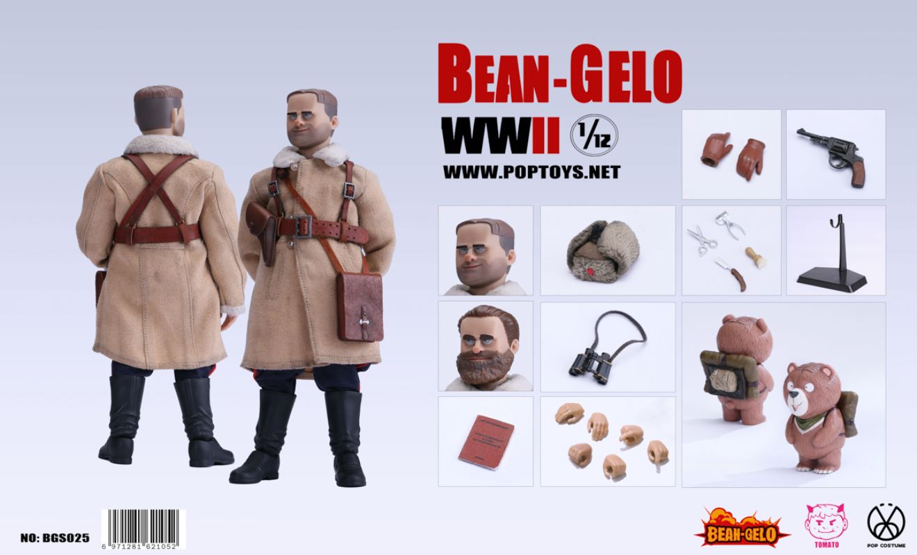 POP COSTUME BGS024 Captain Bezov Standard Ver .BAR CODE: 6971281621045List:1. Smiling head*12. 1/12 body*13. Bare hands*64. Gloved hands*1 pair5. Overcoat * 16. Breeches * 17. Boots * 1 pair8. Hat * 19. Belt * 110. Satchel * 111. Pistol * 112. Holster * 113. Telescope * 114. Book * 115. Figure stand*1-----------------------POP COSTUME BGS025 Captain Bezov Deluxe Ver.BAR CODE: 6971281621052List:1. Smiling head*12. Bearded head*13. 1/12 body*14. Bare hands*65. Gloved hands*1 pair6. Overcoat * 17. Breeches * 18. Boots * 1 pair9. Hat * 110. Belt * 111. Satchel * 112. Pistol * 113. Holster * 114. Telescope * 115. Book * 116. Little bear*117. Hair clipper set*118. Figure stand*1-----------------------POP COSTUME BGS026 fisherman Lim Yefu Standard Ver.BAR CODE: 6971281621069List:1. Head*12. 1/12 body*13. Bare hands*64. Gloved hands*1 pair5. Shirt*16. Cotton-padded clothes * 17. Breeches * 18. Boots * 1 pair9. Belt * 110. Waist bag * 111. Hat * 112. Scarf * 113. Kettle * 114. Grenade * 215. Bobosha submachine gun * 116. Figure stand*1-----------------------POP COSTUME BGS027 fisherman Lim Yefu Deluxe Ver .BAR CODE: 6971281621076List:1. Head*12. Snowy head*13. 1/12 body*14. Bare hands*65. Gloved hands*1 pair6. Shirt*17. Cotton-padded clothes * 18. Breeches * 19. Boots * 1 pair10. Belt * 111. Waist bag * 112. Hat * 113. Scarf * 114. Kettle * 115. Grenade * 216. Bobosha submachine gun * 117. Satchel* 118. Diglett*119. Fish*220. Fishing pole*121. Figure stand*1-----------------------POP COSTUME BGS028 Soldier Andre Standard Ver.BAR CODE: 6971281621083List:1. Head*12. 1/12 body*13. Bare hands*64. Gloved hands*1 pair5. Overcoat * 16. Breeches * 17. Boots * 1 pair8. Helmet * 19. The red Army Cap * 110. Belt*111. Ammunition bag * 212. Satchel * 113. Backpack*114. Neckerchief*115. Mosin-Nagant*116. Figure stand*1-----------------------POP COSTUME BGS027 fisherman Lim Yefu Deluxe Ver.BAR CODE: 6971281621076List:1. Head*12. Snowy head*13. 1/12 body*14. Bare hands*65. Gloved hands*1 pair6. Shirt*17. Cotton-padded clothes * 18. Breeches * 19. Boots * 1 pair10. Belt * 111. Waist bag * 112. Hat * 113. Scarf * 114. Kettle * 115. Grenade * 216. Bobosha submachine gun * 117. Satchel*118. Diglett*119. Fish*220. Fishing pole*121. Figure stand*1