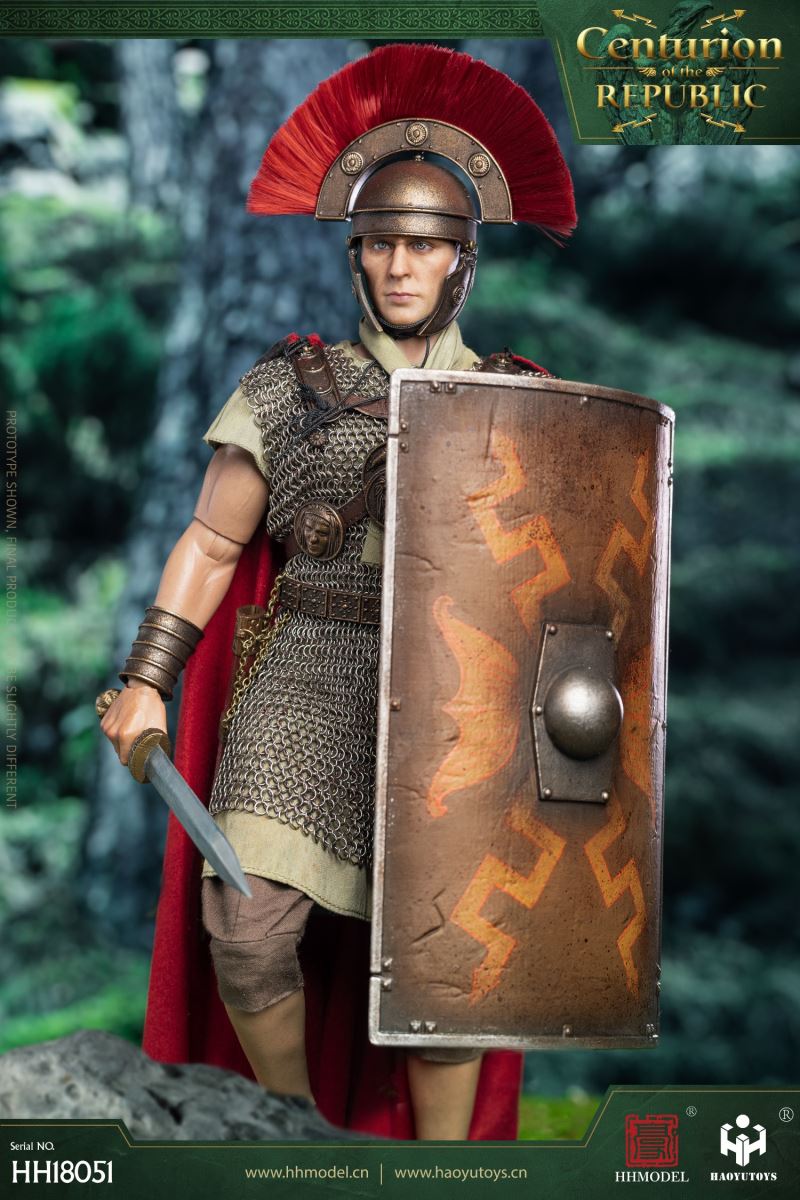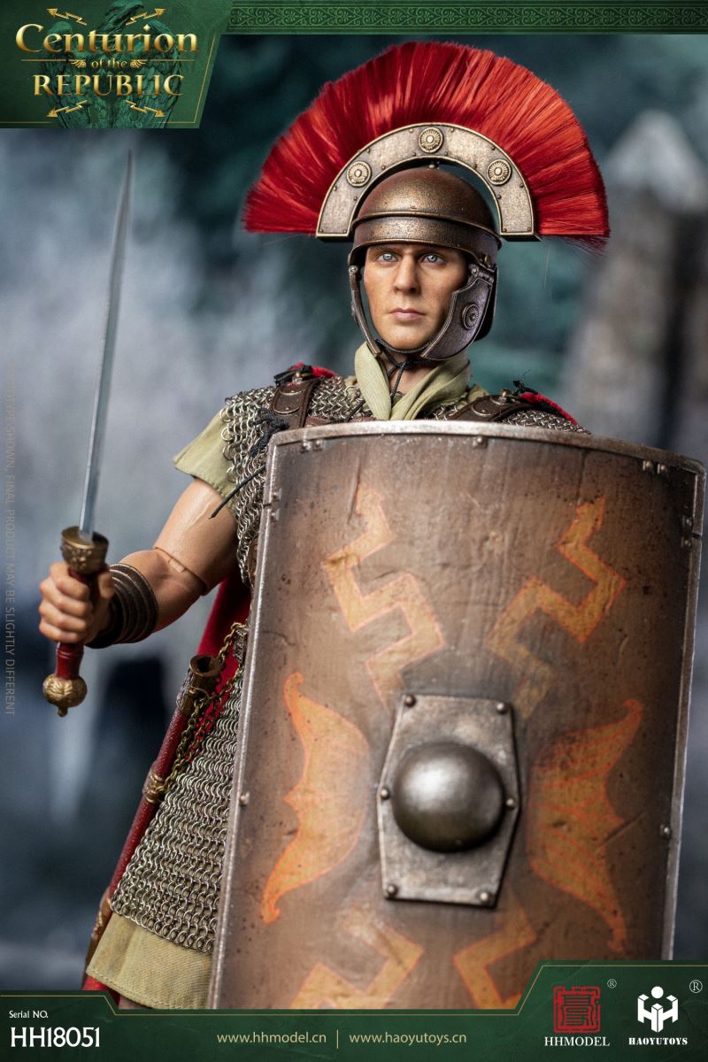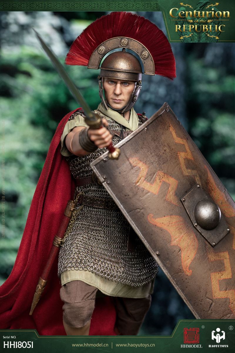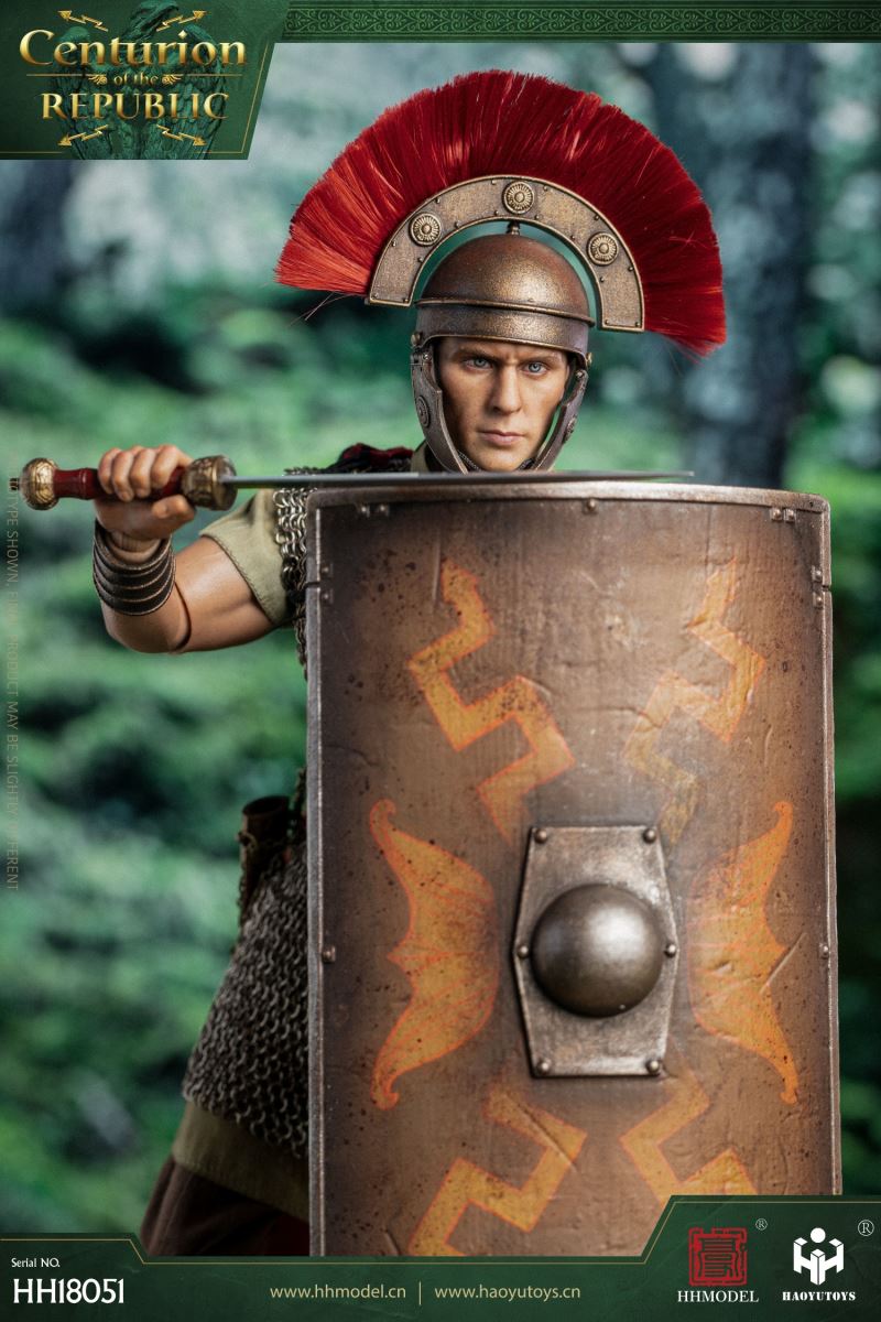 HHMODEL & HAOYUTOYS : 1/6 Imperial Legion - Thirteen Legion Centurion (HH18051)Barcode:6974202930363configuration list: - 1/6 artificial head carving - New movable body - 8 replacement handsclothing: - Helmet (Metal) - True Ring Chainmail - Jacket - Pants - cape - Medallion (Metal) - shoeAccessories: - Long Sword (Metal) - shield - Round platform