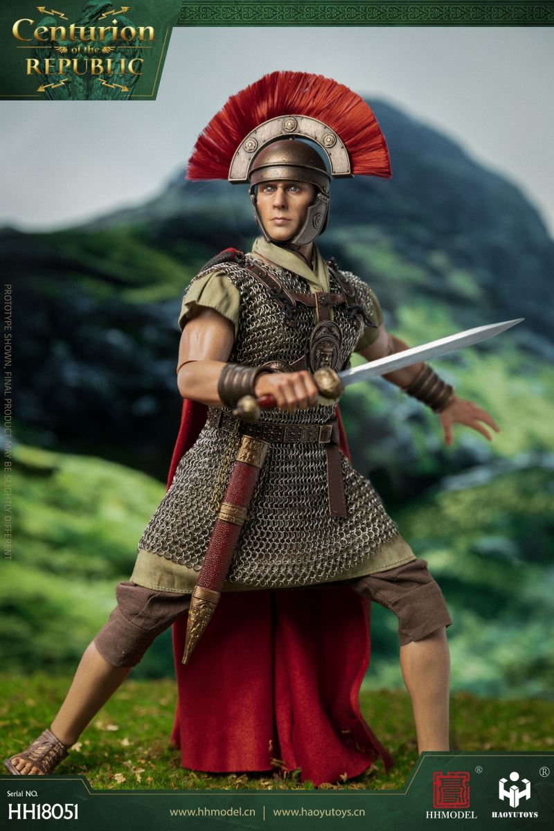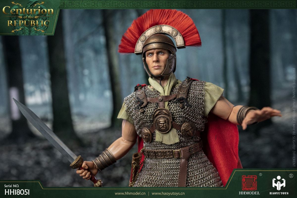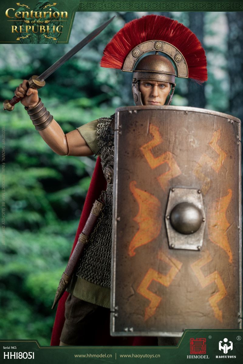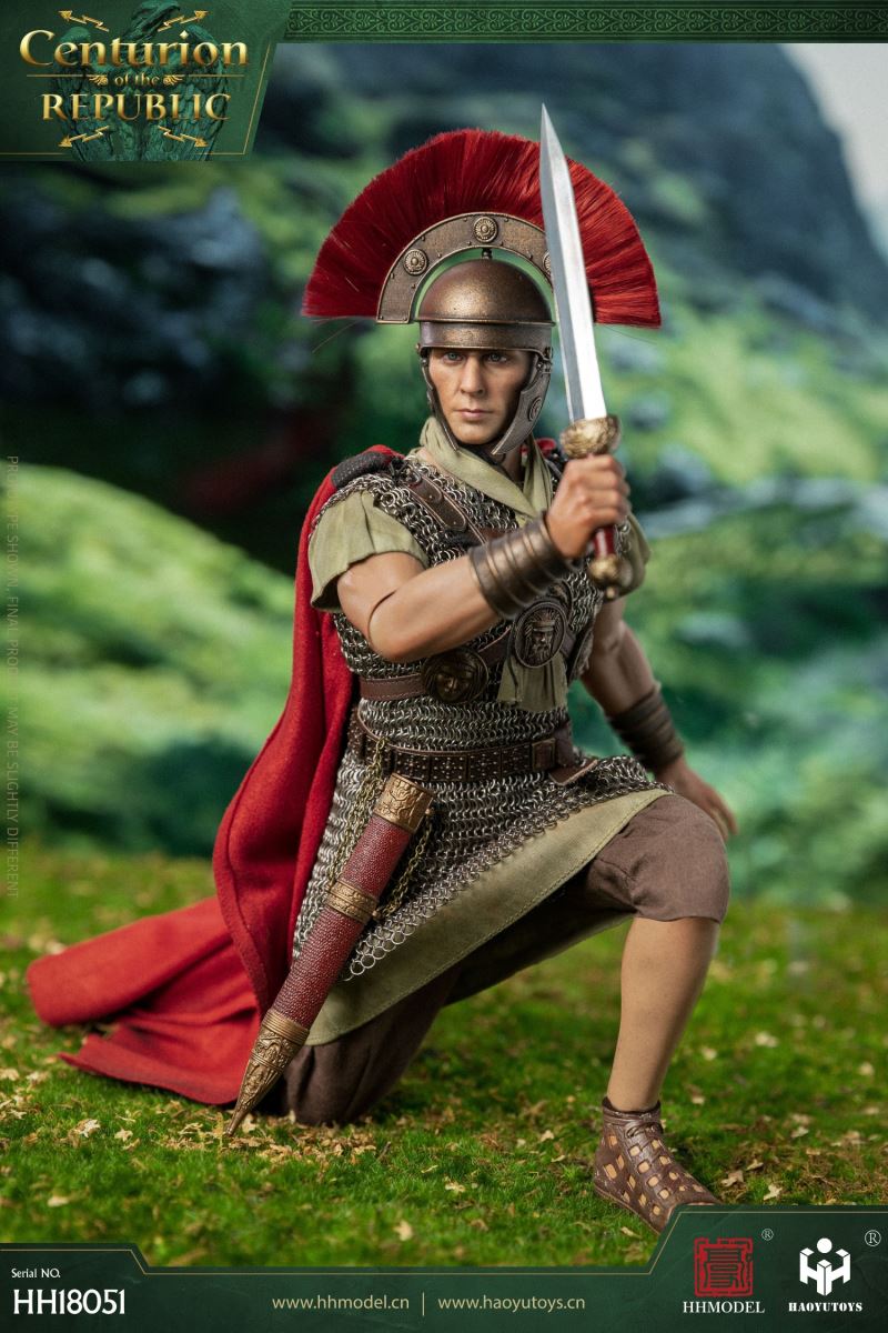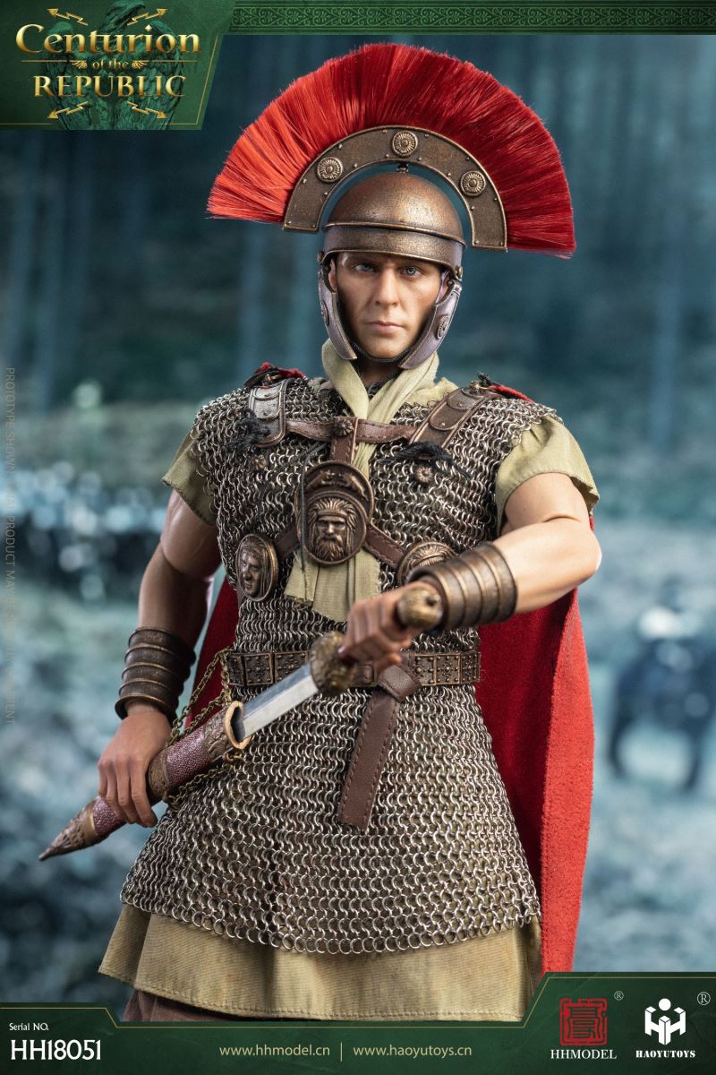 HHMODEL & HAOYUTOYS : 1/6 Imperial Legion - Thirteen Legion Centurion (HH18051)Barcode:6974202930363configuration list: - 1/6 artificial head carving - New movable body - 8 replacement handsclothing: - Helmet (Metal) - True Ring Chainmail - Jacket - Pants - cape - Medallion (Metal) - shoeAccessories: - Long Sword (Metal) - shield - Round platform