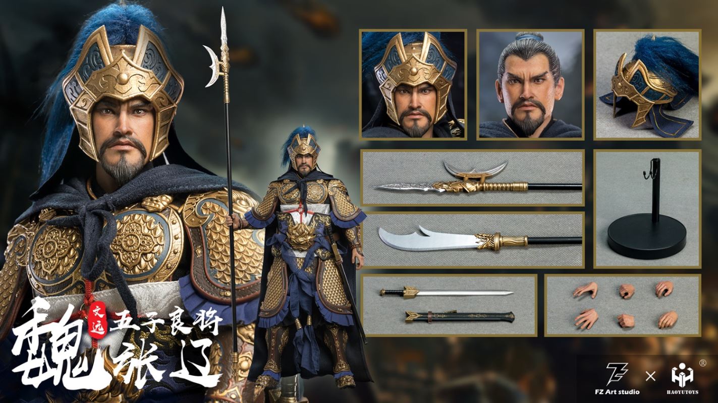 FZ Art Studio × HAOYUTOYS 1/6 The Legend of Heroes - Five Great Generals Zhang Liao Zhang WenyuanNO.FZ-002Accessories list:- A head- One movable body- Six replacement handsApparel:- One set of full body armor- One black top- One pair of black trousers- One off-white corset- One leather belt (two sections)- Belt accessories (cloth belt)- One girdle- One capeArms:- One halberd- One long knife- One sword- One scabbardOther Accessories:- A bracket- A desk cardProduct height is about 33 cmShipment Date: Q2 2022*Pictures are samples, for reference only, large quantities may be slightly different.*If the product is adjusted or changed during production, we will issue a notification in time.