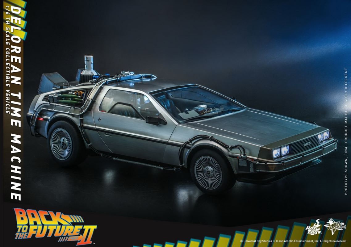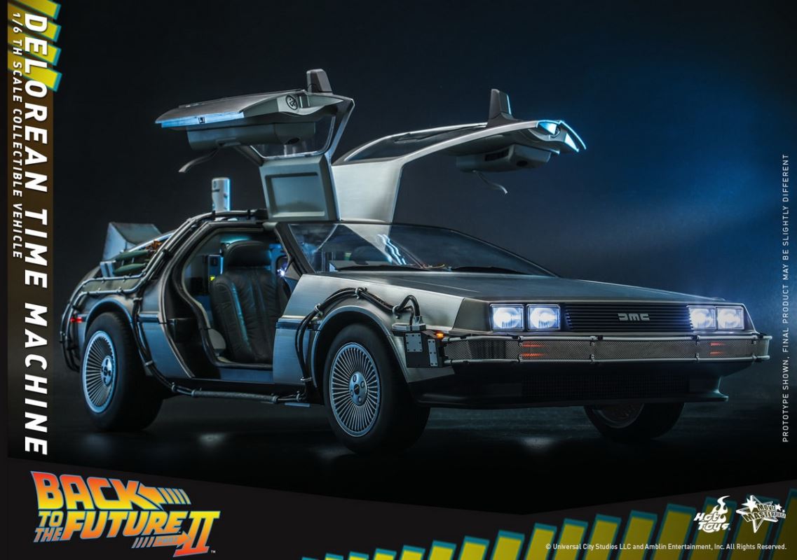 ยานยนต์ของสะสม DeLorean Time Machine ที่สร้างขึ้นด้วยฝีมืออันน่าประทับใจ มีความยาว 72 ซม. แสดงรายละเอียดที่น่าประทับใจรวมถึงจุดไฟ LED หลายจุดในการออกแบบภายนอกและระบบควบคุมภายใน ประตูปีกนกนางนวลอันเป็นเอกลักษณ์ ล้อพับได้สำหรับโฮเวอร์ โหมด สายไฟที่เหมือนจริงทั่วโครงสร้างภายนอก การสร้างรายละเอียดของส่วนควบคุมเครื่องยนต์และห้องโดยสารของไทม์แมชชีน และฐานที่ออกแบบมาเป็นพิเศษสำหรับ DeLorean Time Machine ที่ลอยอยู่