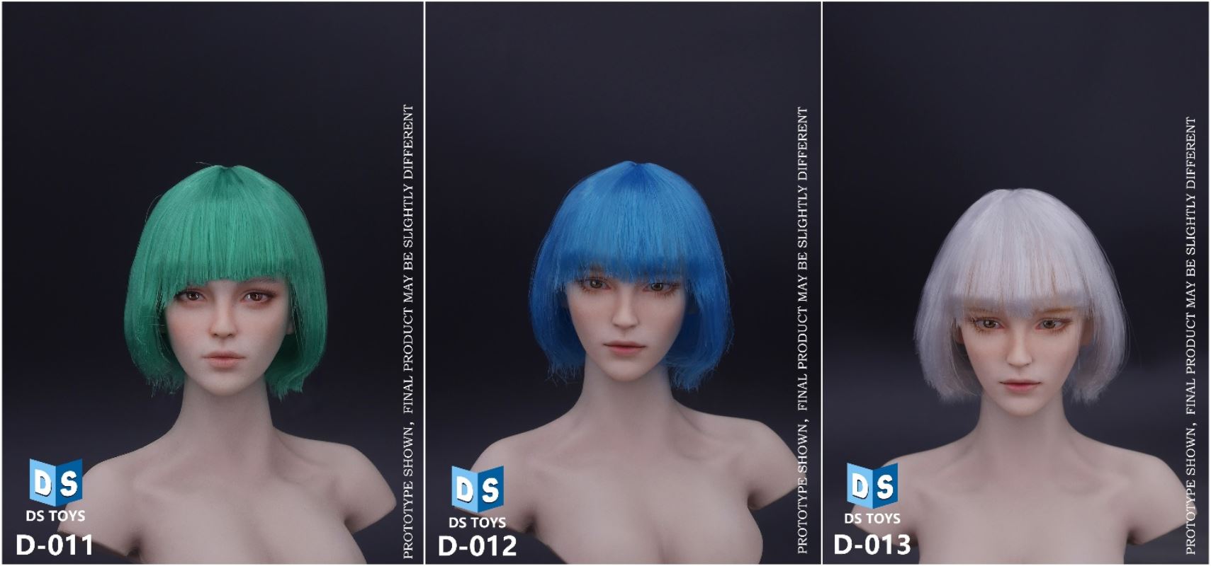 DS TOYS: 1/6 COSPALY short hair female head carving has three hair colorsProduct code: D-011 / D-012 /D-013 Suitablefor European and American white-skinned female bodyonly Selling head carving, no other accessoriesOnlysold head, noaccessories are included.