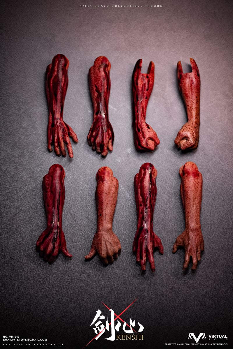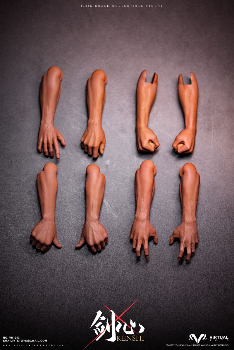- มือที่สวมถุงมือแบบเปลี่ยนได้เจ็ด (7) ชิ้น ได้แก่ :