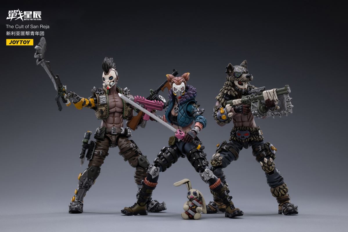 UPC No. 6973130372283JT2283Product NameBattle for the Stars The Cult of San Reja - AilieSpecifications Scale: 1/18 Height: 10.5cmPacking Size/mm 150*110*50Weight 0.22kgDomestic Retail Price 168 Remarks MayUPC No. 6973130372290JT2290Product Name Zhanxing Xinlia Gang Youth League - TomahawkEnglish name Battle for the Stars The Cult of San Reja - NeilSpecifications Scale: 1/18 Height: 10.5cm PackingSize/mm 150*110*50Weight 0.22kgDomestic Retail Price 168 Remarks MayUPC No. 6973130372306JT2306Product NameBattle for the Stars The Cult of San Reja - JackSpecifications Scale: 1/18 Height: 10.5cmPacking Size/mm 150*110* 50weight 0.22kgdomestic retail price 168 remarks in May------------------------UPC No. 6973130372313JT2313Product Name Battle for the Stars The Cult of San Reja - Harvey B19English name Battle for the Stars The Cult of San Reja - Harvey B19Specifications Scale: 1/18 Length: 16cm Height: 9cmPacking Size/mm Weight 0.3 kgdomestic retail price 219remarks in May------------------------UPC No. 6973130372320JT2320Product Name Battle for the Stars The Cult of San Reja - Luyster C30English name Battle for the Stars The Cult of San Reja - Luyster C30Specifications Scale: 1/18 Length: 7.6cm Height: 9cmPacking Size/mm Weight 0.5kgDomestic retail price 259Remarks May