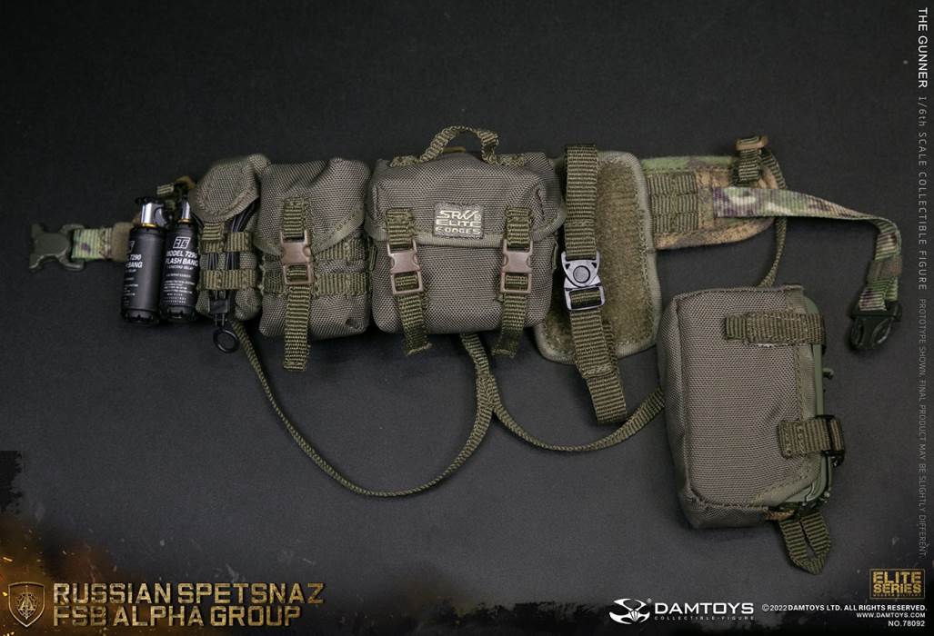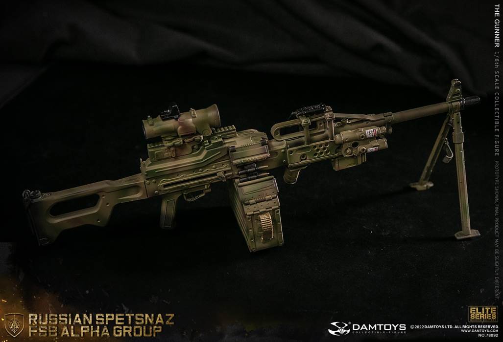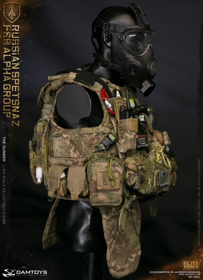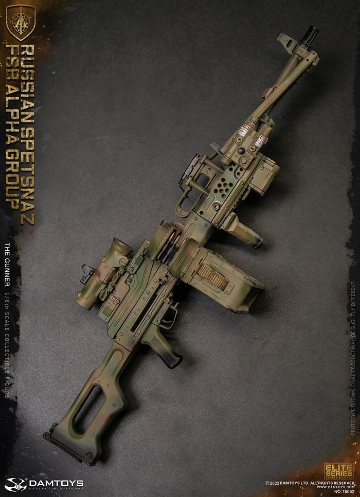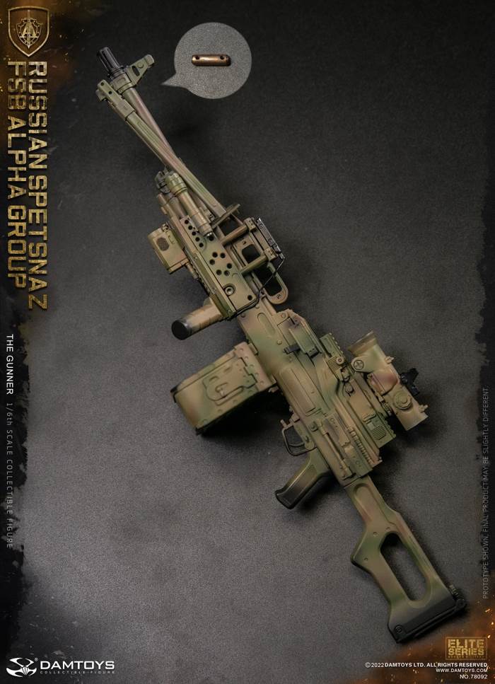 DAMTOYS: 1/6 RUSSIAN SPETSNAZ FSB ALPHA GROUP GUNNERNO.78092Barcode: 6970569621050List:Exquisite simulation head carvingprotective gogglesgoggle coverDAM 3.5 movable bodyO Tactical Gloves x3pullover maskGLADIATOR Tactical VestModular Tactical Belt (FG Camo)Square Hip BagSundries Bag Asundries bag Bsundries bag C5.56 camouflage magazine bag5.56 Green Magazine BagExecutive Board BagWater bag + strawcamouflage combat topcamouflage combat pantsBDU beltT-shirtPMK-S Gas MaskPMK-S Gas Mask Protective LensPMK-S Gas Mask Filter Canister x2PMK-S Gas Mask Connection HosePMK-S Gas Mask Filter CarrierFAST helmetHelmet cover (MultiCam camouflage)GTX bootsPKP Pecheneg general purpose machine gunZENTICO STYLED B-50 RAIL PKP Pecheneg Universal Machine Gun Tactical Rail SystemMNT-PKM01 sight bracketPKP Pecheneg general-purpose machine gun camouflage boxPKP Pecheneg general-purpose machine gun green ammo boxPKP Pecheneg general purpose machine gun 7.62 ammo chainPKP Pecheneg general purpose machine gun beltQuick Release Webbing Machine Gun Magazine Carrying BagZENIT Tilt GripZENIT Laser Lights and Remote Switchestactical lightFSB PEQ laser pointerSPECTER DR 1.5-6X Zoom Scope and Red Dot ScopeG17 pistolG17 Pistol Magazine MAG X3G17 Tactical LED LightsPistol Magazine Quick Release Sleeve x25.56 magazine quick release sleeveALS OPTIC Tactical Pistol HolsterCamouflage grenade pack x3Double Grenade PackSignal stick pack x1Signal bar (red)Flash Shock Grenade x2RGO Defensive GrenadeRGN Offensive GrenadeAN/PVS-14 Night VisionNight Vision Helmet Mount AssemblyHelmet HD CameraMPLS LED lightingVX RadioTPH700 Handheld RadioCamo Handheld Radio BagCOMTAC III Headphone and Helmet Rail ConnectorPTT switchChest Medical Kit (MultiCam Camo)SUUNTO watchVIP beaconHELSTAR 640 Strobe LightsBadge x 6St. George Ribbon Chapter x4Russian flag badge x3Three-way tightening handcuffsBallpoint pen x2Multifunctional survival forcepsG2 NITROLON FlashlightG2 NITROLON Flashlight Quick Release SleeveFightingFighting scabbardtourniquetred carabiner
