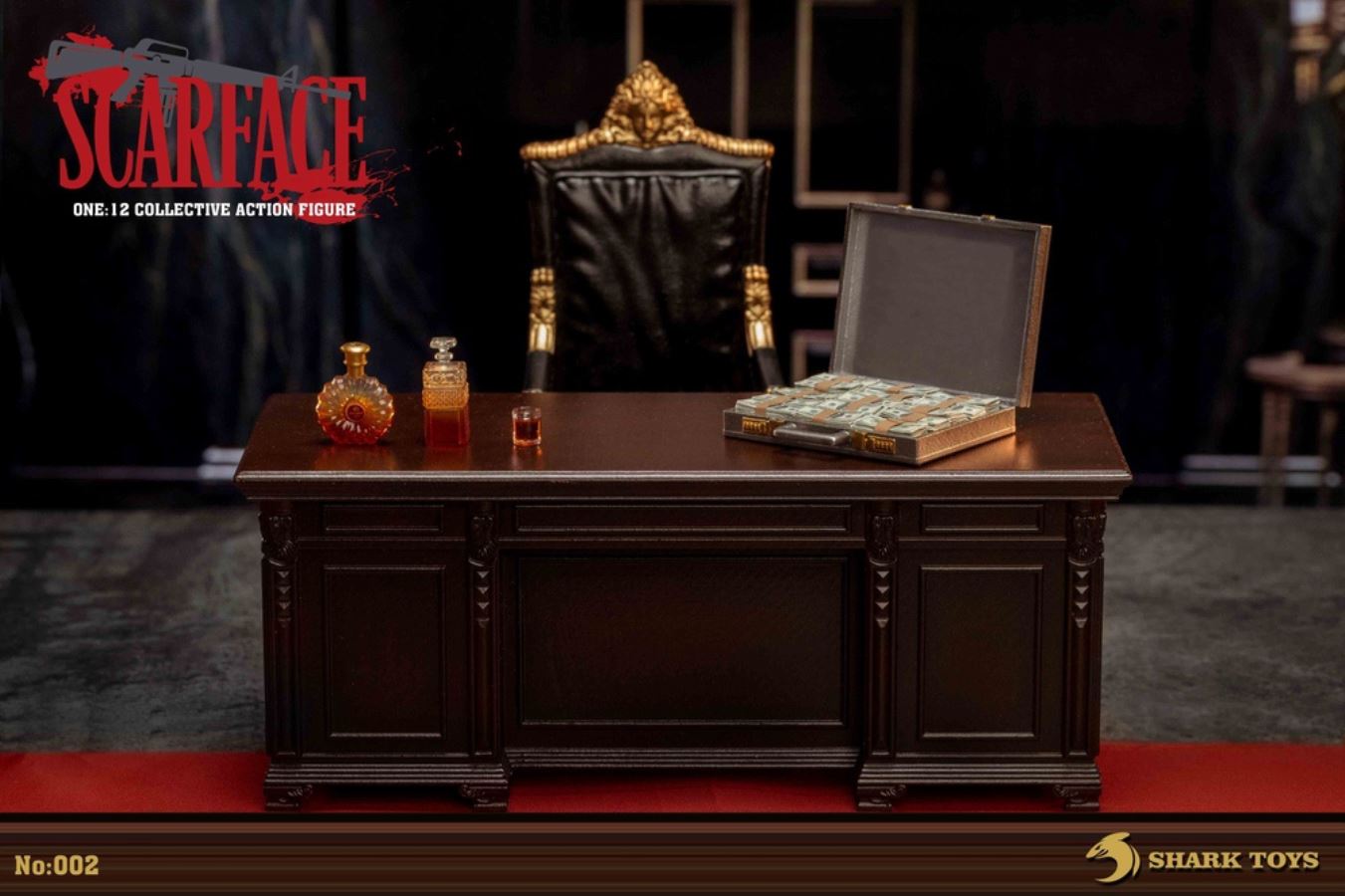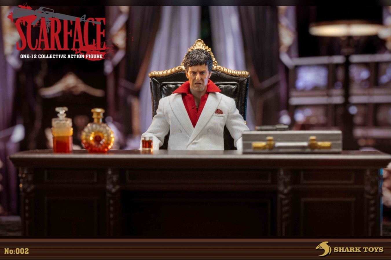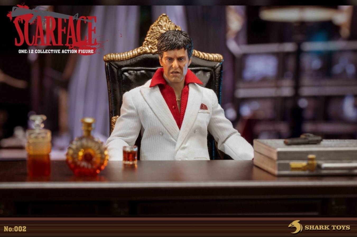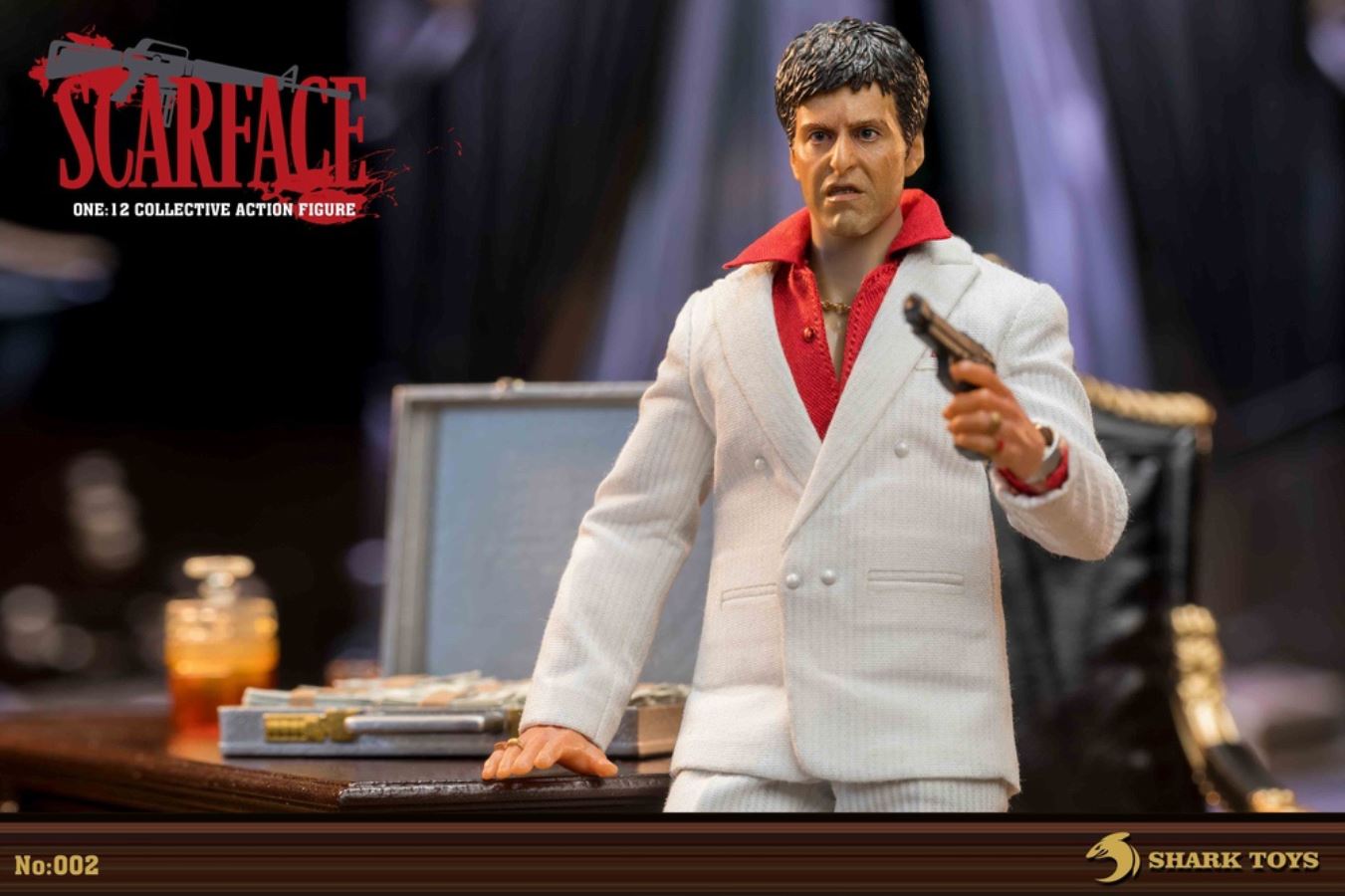 List:– Normal head carving*1– Emoji head carving*1– Replacement hand *8– 1/12 body*1clothing:– White top*1– red shirt*1– white pants*1– Leather shoes*1Accessories:– Necklace*2– Bracelet*1– USD*1– Pistol*1– Wine bottle*2– Wine glass*1– Table*1– Chair*1– Suitcase*1– Assault Rifle*1